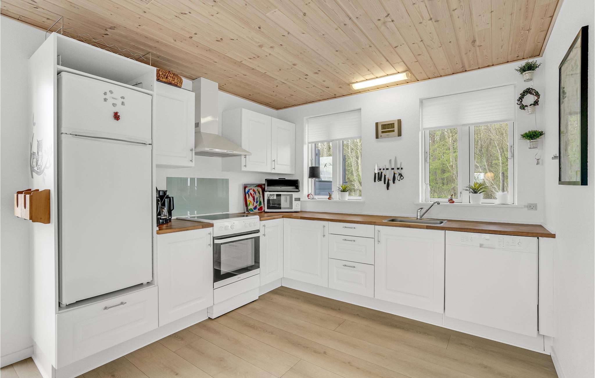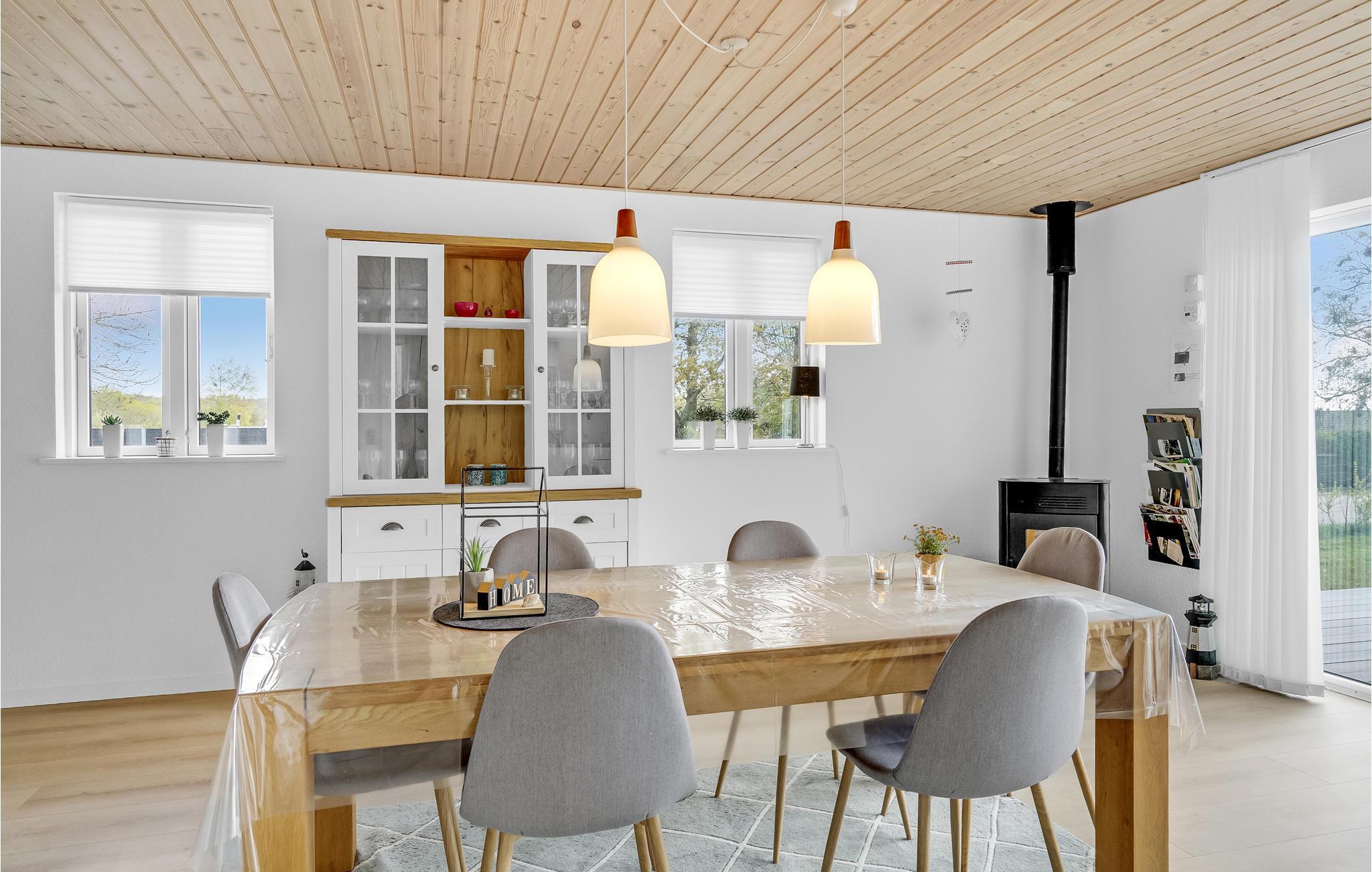 Im Ferienhausgebiet bei Keldstrup liegt dieses gemütliche Ferienhaus, das 2019 komplett renoviert wurde. Das Haus liegt auf einen großen Grundstück und bietet viel Platz für Spiel und Spaß. Von der Terasse aus können Sie den Kleinen Belt sehen. Das Haus ist hell eingerichtet und einladend mit einer schönen Küche, die in Verbindung mit dem Wohnzimmer liegt. Schöne Schlafzimmer und ein großes Bad mit Fußbodenheizung. Als Heizquelle dient eine Wärmepumpe und ein Pelletofen.