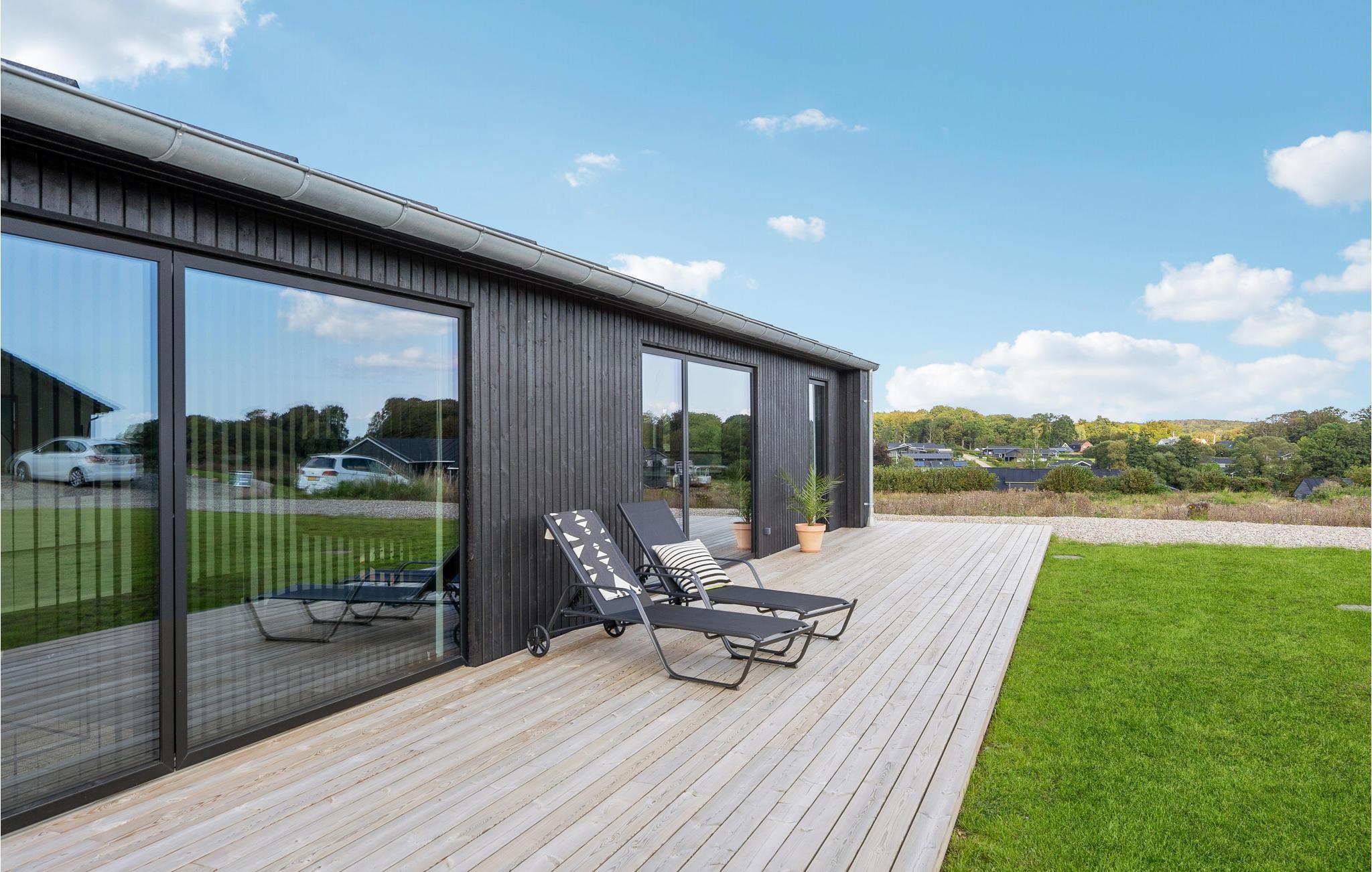 Modernes Ferienhaus am Kelstrup Strand mit Sauna, Whirlpool und großem Garten für entspannte Urlaubstage.