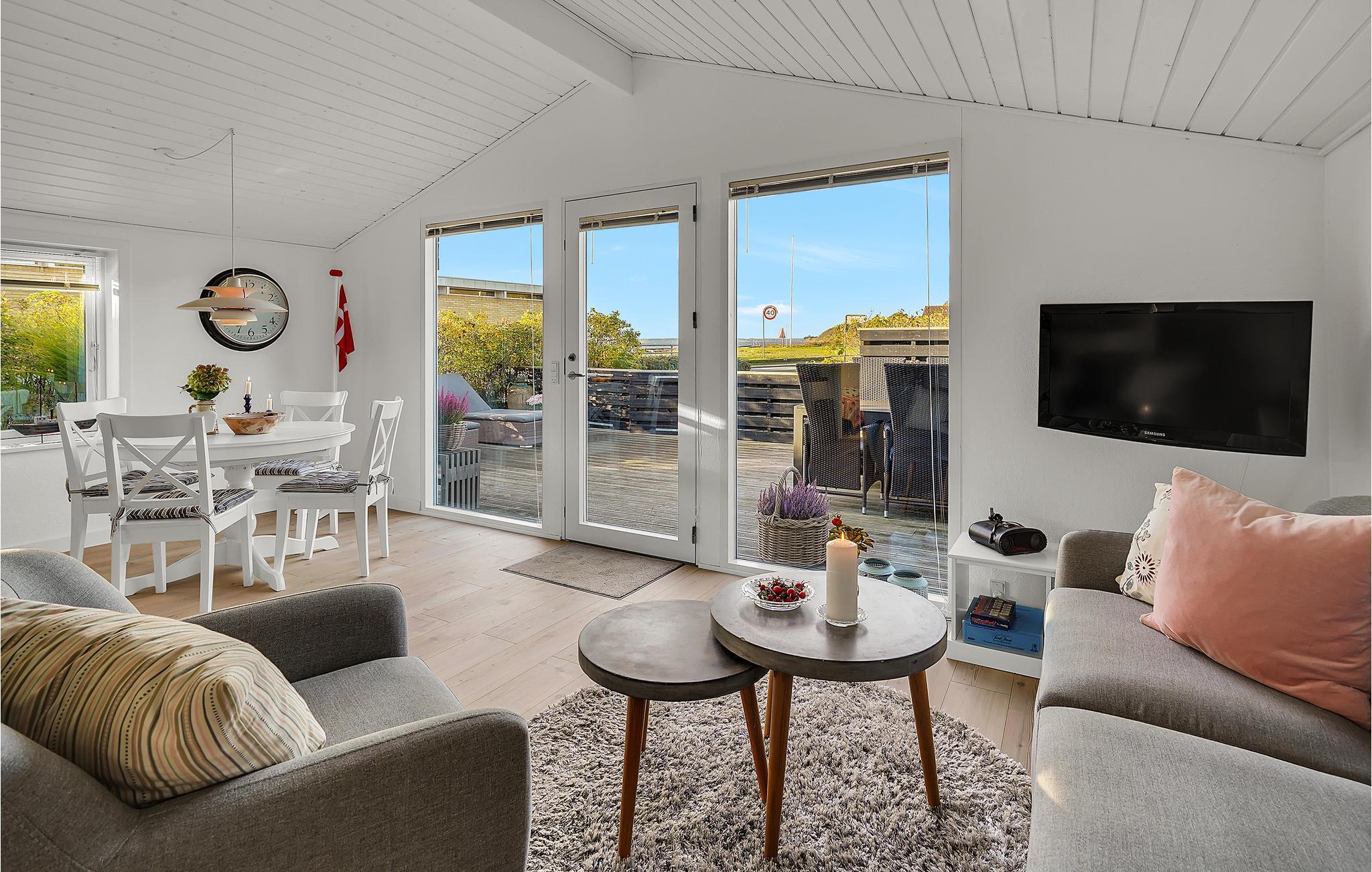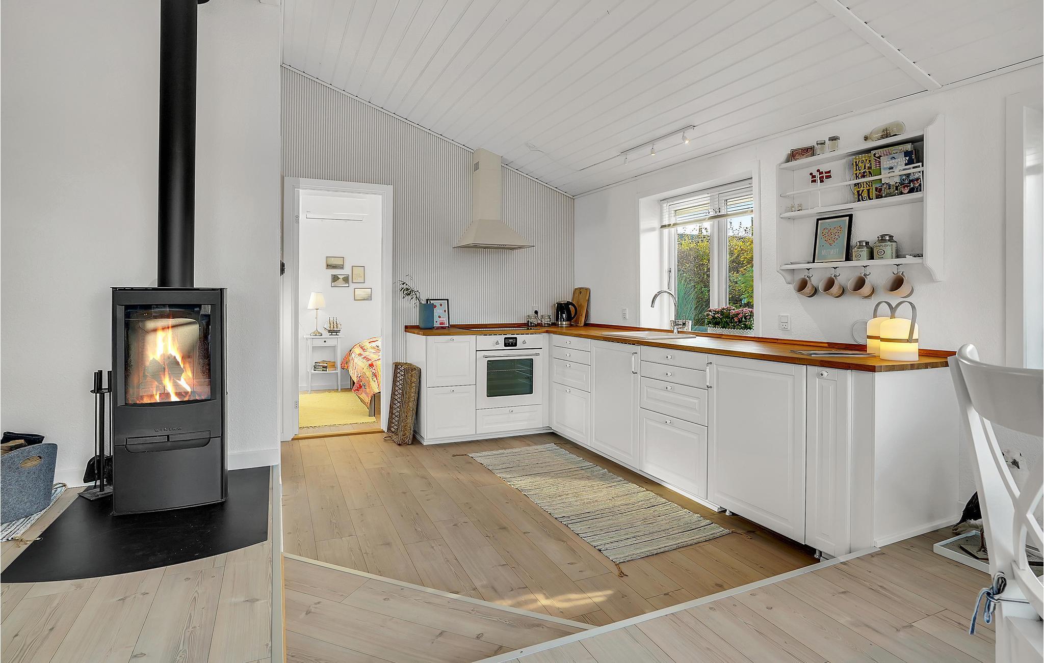 In attraktiver Lage nur 100 Meter vom Wasser entfernt finden Sie dieses Ferienhaus. Das liebevoll dekorierte Interieur macht einen warmen, freundlichen Eindruck und lädt zu entspannten Urlaubstagen mit Ihren Lieben ein. Im hellen Wohnraum werden Sie gemütliche Stunden beim Brettspielen oder Ihrem Lieblingsbuch verbringen und können sich in der kühlen Jahreszeit vorm Kaminofen wärmen, während Sie den knisternden Geräuschen der Flammen lauschen. Verbringen Sie sonnige Stunden auf der geschützten Terrasse und lassen Sie später einen schönen Tag beim Blick auf das Wasser und den Sonnenuntergang ausklingen.