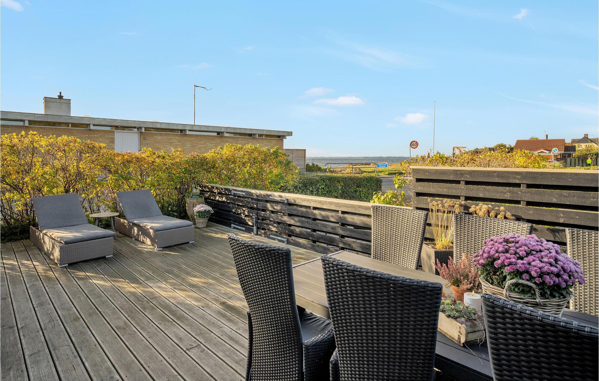 Gemütliches Ferienhaus nahe Kelstrup Strand mit Meerblick und Kaminofen für erholsame Urlaubstage.