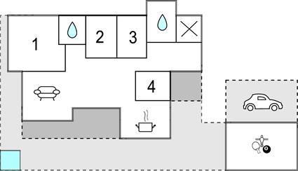 Badezimmer (nr. 1) - WC. Warmes und kaltes Wasser. Dusche