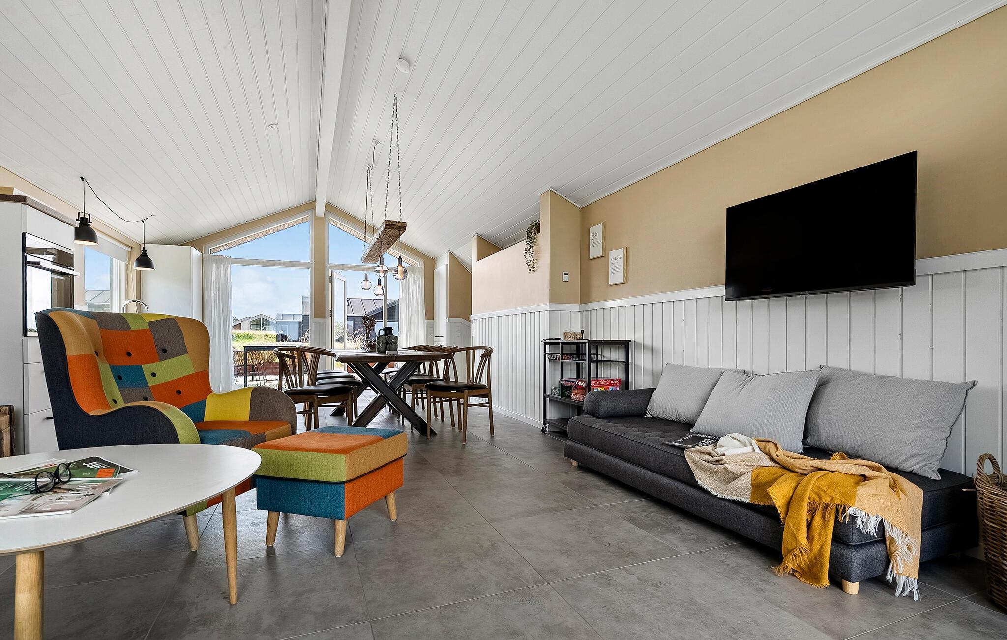 Dieses helle und großzügige Ferienhaus heißt Sie mit einem gemütlichen Interieur und zahlreichen reizvollen Extras willkommen, die Ihren Familienurlaub zu einem unvergesslichen Erlebnis machen. Freuen Sie sich auf gesellige Stunden im offenen Wohnbereich, wo Sie bei harmonischen Mahlzeiten Ihre Unternehmungen planen, köstliche Gerichte zubereiten, fröhliche Spieleabende veranstalten oder abends Ihre Lieblingsserie streamen können.