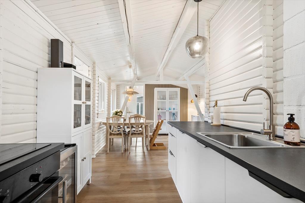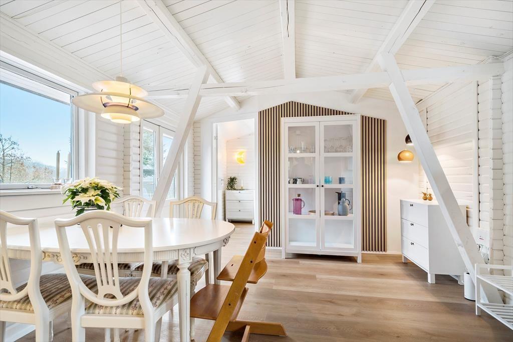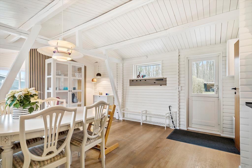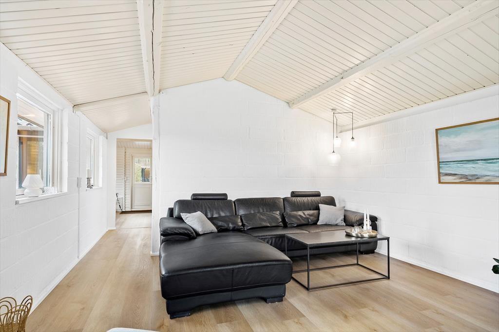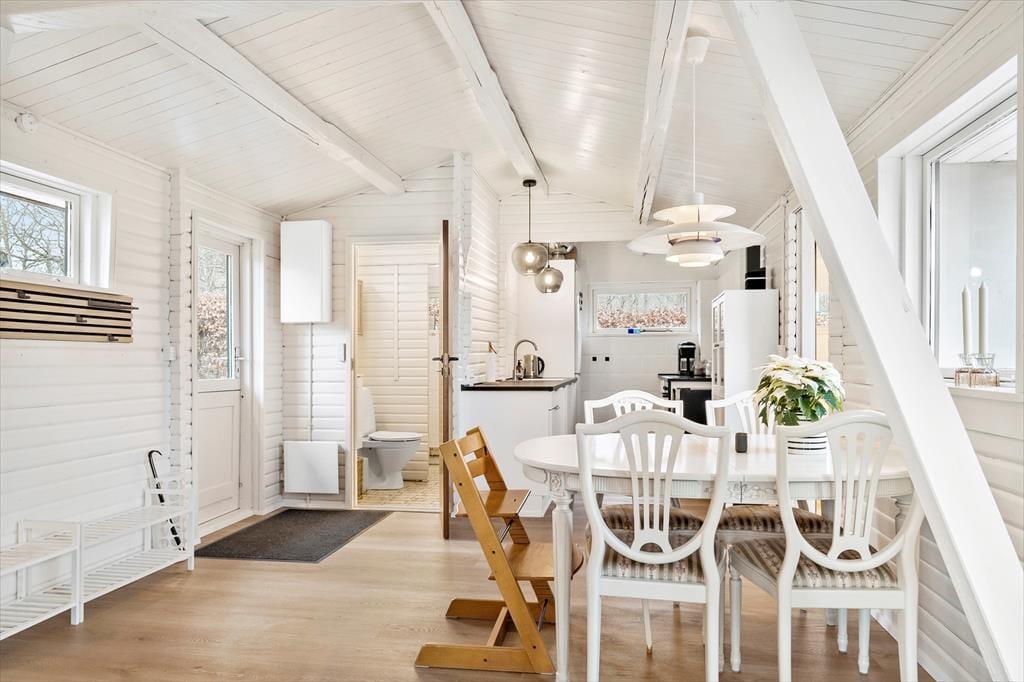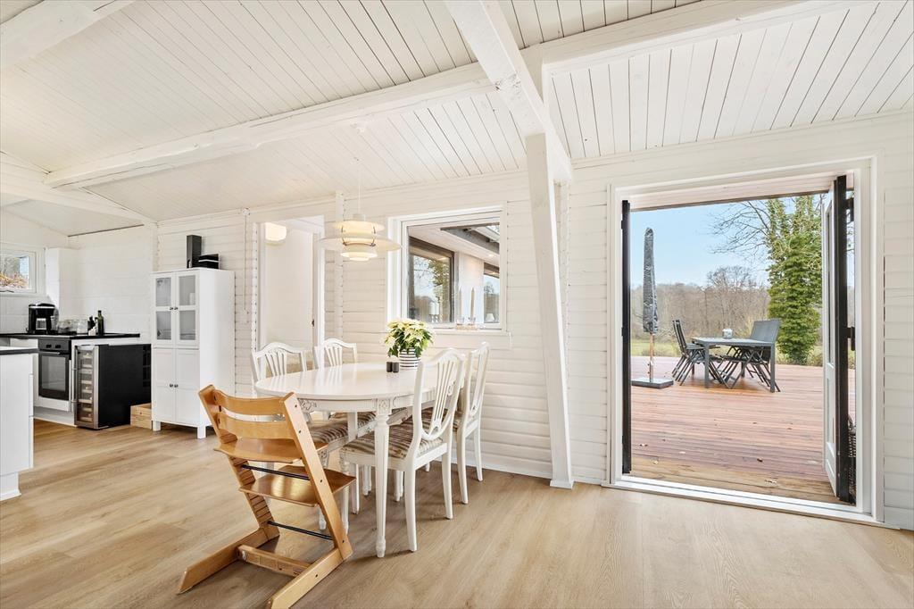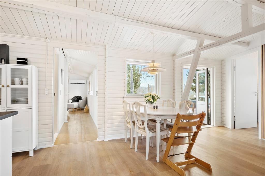 Sommerhuset byder dig velkommen i et lyst og indbydende interiør, hvor moderne komfort møder klassisk sommerhushygge. Det nyistandsatte køkken-alrum danner hjertet af huset – et naturligt samlingspunkt for gode måltider, hyggelige samtaler og brætspil, mens duften af frisk kaffe eller aftensmad breder sig i rummet. Den hyggelige opholdsstue er indrettet med bløde sofaer og store vinduer, der lukker dagslyset og naturen helt ind. Her kan du læne dig tilbage med en god bog, streame en film eller bare nyde roen, mens du kigger ud på det grønne landskab.