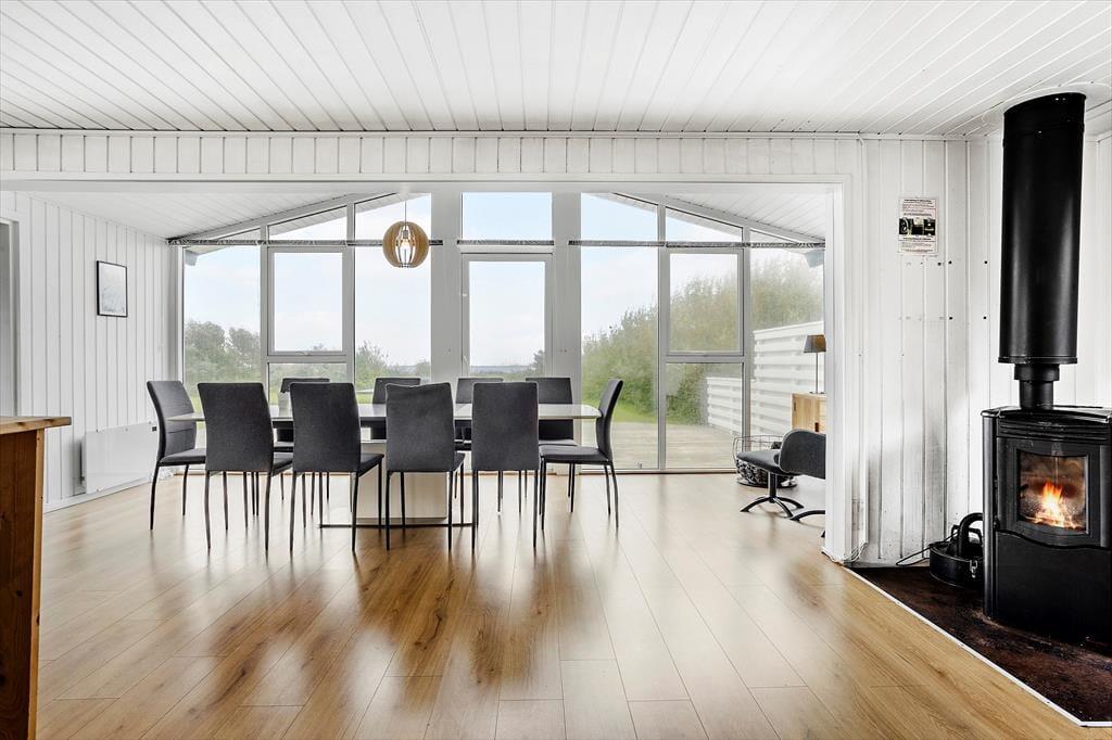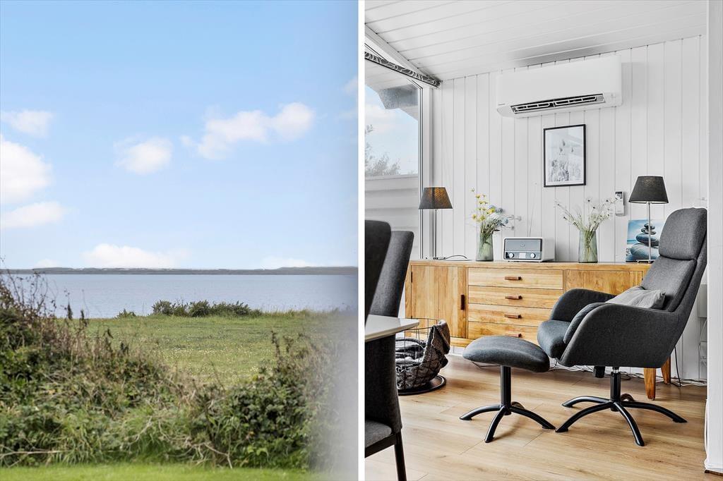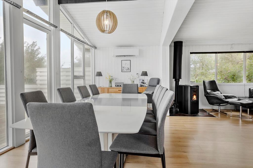 Dein Ferienhaus befindet sich in der ersten Häuserreihe vor der Küste, sodass du durch die großen Giebelfenster bis auf das blaue Wasser des Limfjords blickst. Der große Esstisch im Wohnraum bietet Platz für alle Mitreisenden - selbst dann, wenn ihr mit insgesamt zehn Personen anreist. Die vier Schlafräume des Urlaubsdomizils werden durch lose Matratzen auf dem eingezogenen Hängeboden ergänzt. Die Küche fügt sich schön in den Wohnraum ein. Die beiden Badezimmer sind gut im Haus verteilt. Das Highlight des Mietobjekts ist der Poolraum, in dem du nach Herzenslust im Swimmingpool baden kannst. Ein Maximum an Entspannung und Wellnessflair versprechen die hauseigene Sauna und der Whirlpool, die beide Teil des Poolraumes sind.