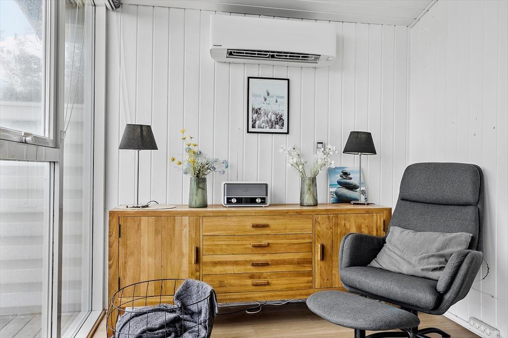 Wenn du davon träumst, dich in vollen Zügen in grüner, friedvoller Umgebung zu entspannen, dann wirst du es lieben, sonnige Tage auf dem großen Grundstück dieses Hauses zu verbringen. Untermalt wird dein Aufenthalt im Freien von der Aussicht auf den Fjord und die am blauen Himmel dahinziehenden Wolken. Deine kleineren Kinder werden garantiert ausgelassen auf der Rasenfläche spielen und umhertollen oder vergnügt schaukeln. Zusammen mit deinen Lieben genießt du an sonnigen und warmen Tagen die Mahlzeiten auf den ansprechenden Terrassen - vom ausgedehnten Frühstück bis zum geselligen Abendessen vom Grill. Wenn ihr nach dem Abendessen zusammen den Sonnenuntergang bewundern möchtet, überquert ihr einfach die Strandwiesen und begebt euch am nächsten Abgang hinunter an den Wasserkante.