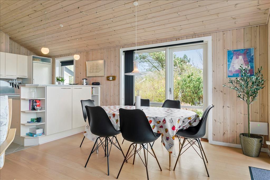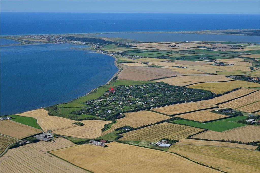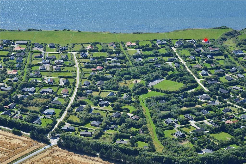Das moderne Ferienhaus liegt in dem beliebten Ferienhausgebiet Kjærgaarden am Limfjord in Thy. In dem benachbarten Dorf Vestervig gibt es ein ganzjährig geöffnetes Lebensmittelgeschäft sowie ein gutes Gasthaus - Tinghuskroen - das ebenfalls in allen Jahreszeiten einen Besuch wert ist. Im Osten - etwas weiter im Hinterland - liegt die Handelsstadt Hurup mit Sydthy Svømmebad und mit guten Geschäften. Westlich vom Ferienhaus - ungefähr fünf Kilometer - befindet sich die Nordsee mit dem gemütlichen Küstenort Agger.