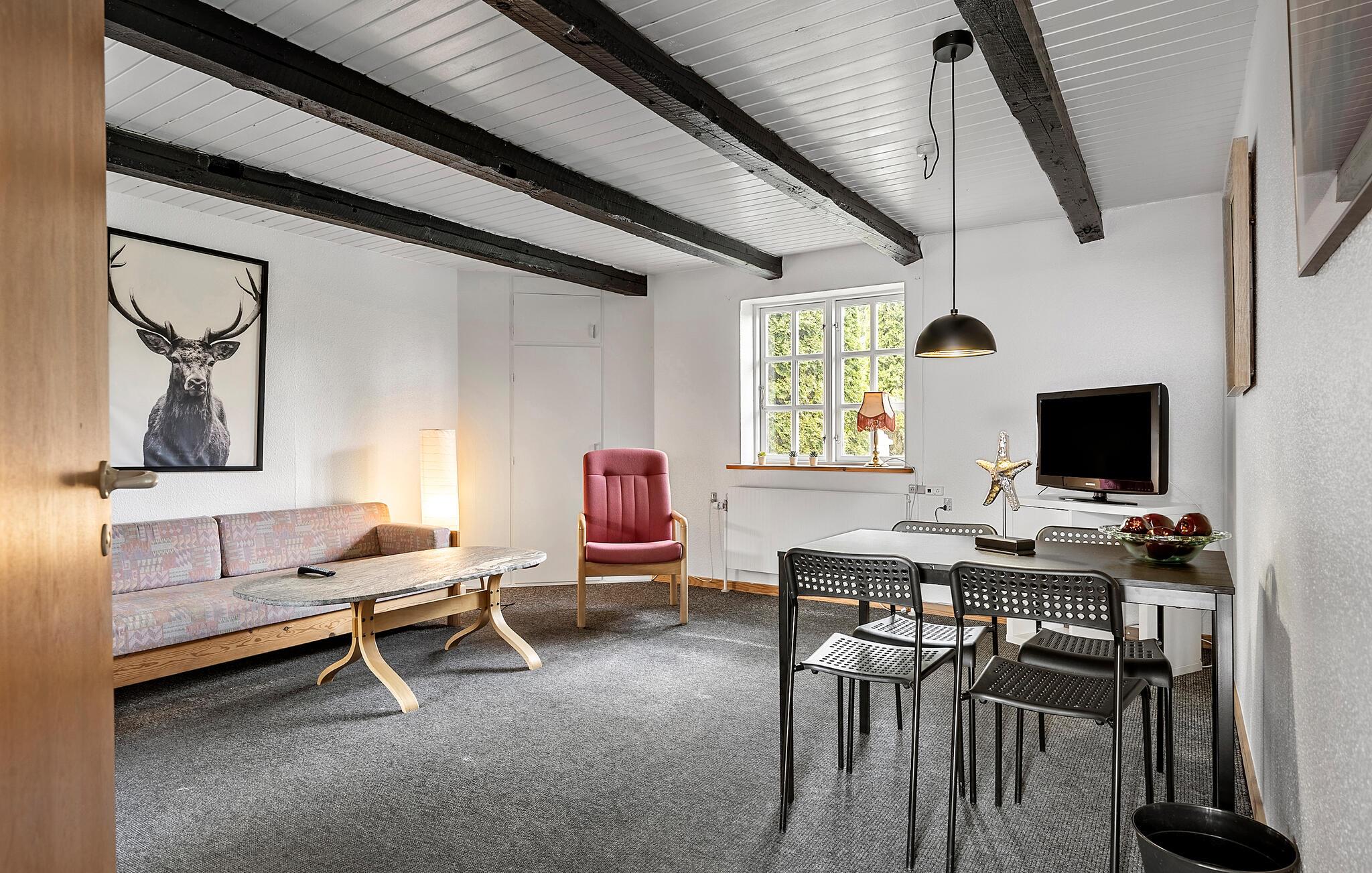 Ihr großzügig ausgestattetes und charmantes Reetdachhaus bietet den idealen Rahmen für einen Urlaub mit einer großen Reisegruppe. Das Anwesen in der Nähe von Kjellerup kombiniert traditionelle Bauweise mit modernen Freizeitmöglichkeiten und ist der ideale Ort für gemeinsame Erlebnisse und entspannte Stunden. Erleben Sie großzügige Wohnbereiche mit viel Platz zum Zusammensein. Entspannen Sie sich auf den bequemen Sofas, spielen Sie eine Runde Billard oder genießen Sie gesellige Abende in einem der großzügigen Speisezimmer. Kochen Sie gemeinsam in der schönen Küche mit direktem Zugang zum Innenhof. Erholen Sie sich in der Sauna, ziehen Sie Ihre Bahnen im Innenpool oder trainieren Sie im gut ausgestatteten Fitnessraum.