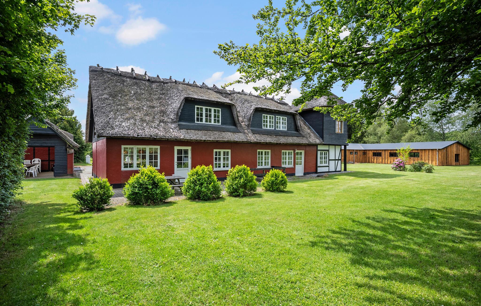 Charmantes Reetdachhaus in Kjellerup für großen Gruppenurlaub mit Pool und Sauna.