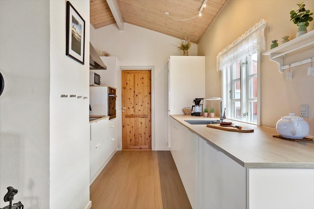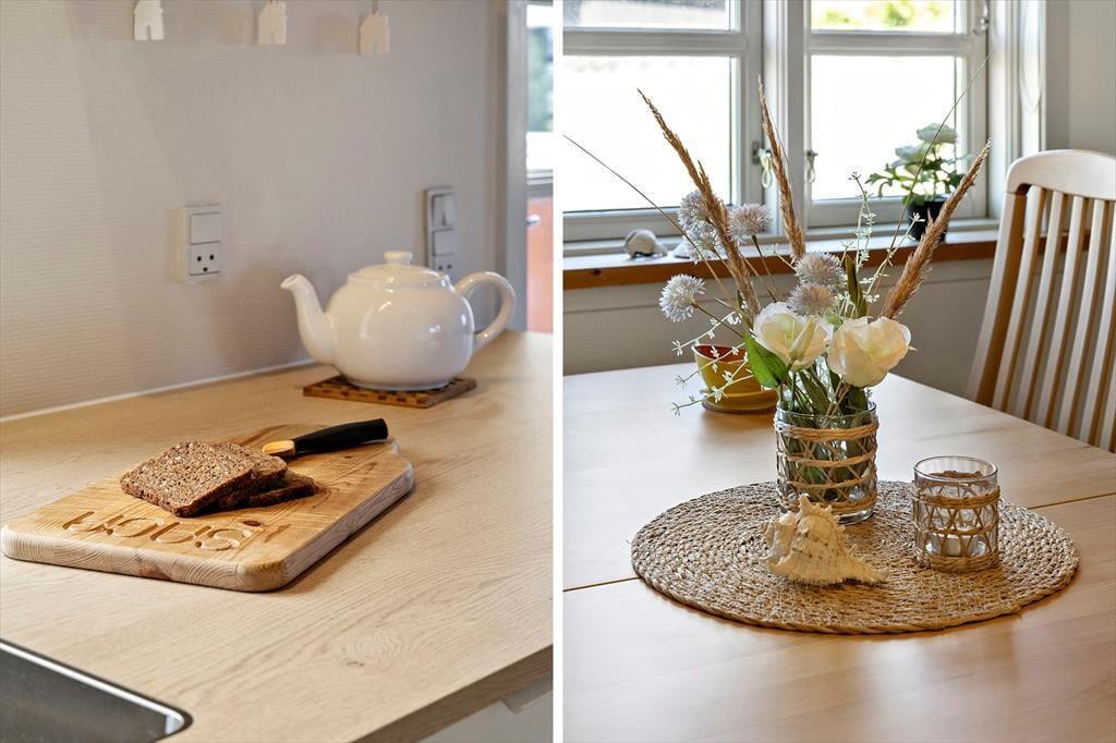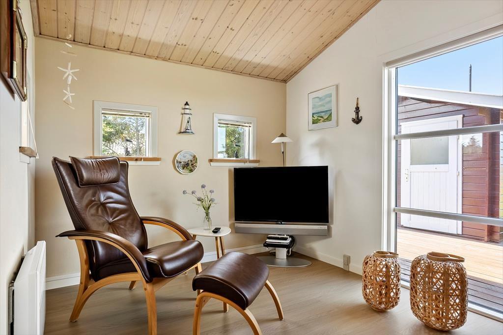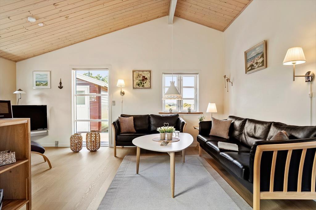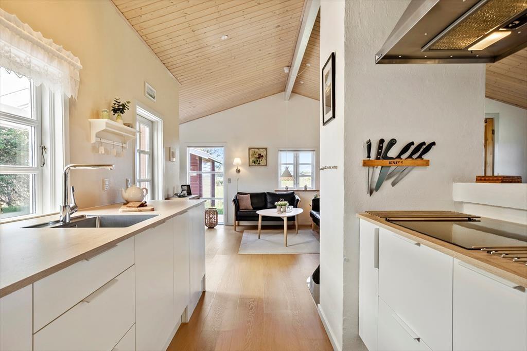Innen wirst du von einem hellen und luftigen Ferienhaus empfangen, dessen Räume mit Fokus auf Gemütlichkeit und Funktionalität gestaltet sind. Das geräumige Wohnzimmer verfügt über große Fensterpartien, die die Natur näher bringen und eine fantastische Verbindung zwischen Innen- und Außenleben schaffen. Der Kaminofen in der Ecke sorgt für Wärme und Stimmung an Abenden, an denen du und deine Lieben gute Gespräche oder einen Film genießen könnt. Die offene Küche ist praktisch und modern, sodass es einfach ist, eine leckere Mahlzeit zuzubereiten, während Familie und Freunde sich im Wohnzimmer entspannen. Die Schlafzimmer laden zu Entspannung und Ruhe ein, und mit einem schönen Badezimmer habt ihr alles, was ihr für einen komfortablen Urlaub braucht.