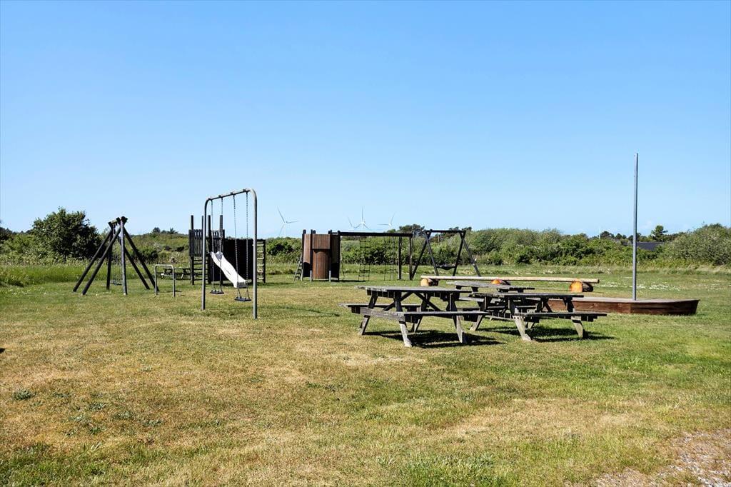 Die Außenbereiche des Ferienhauses sind ebenso einladend wie das Innere. Die große Terrasse lädt zu langen Tagen unter freiem Himmel ein, wo du deinen Morgenkaffee genießen, das Abendessen grillen oder einfach in einem Liegestuhl die Sonne auf deinem Gesicht spüren kannst. Das Haus liegt auf einem naturschönen Grundstück mit viel Platz für freie Spiele und Aktivitäten, während die umliegenden Bäume eine friedliche und private Atmosphäre schaffen. Die Natur ist immer in der Nähe, und ein kurzer Spaziergang führt dich direkt zu den schönen Dünen und dem breiten Sandstrand an der Nordsee.