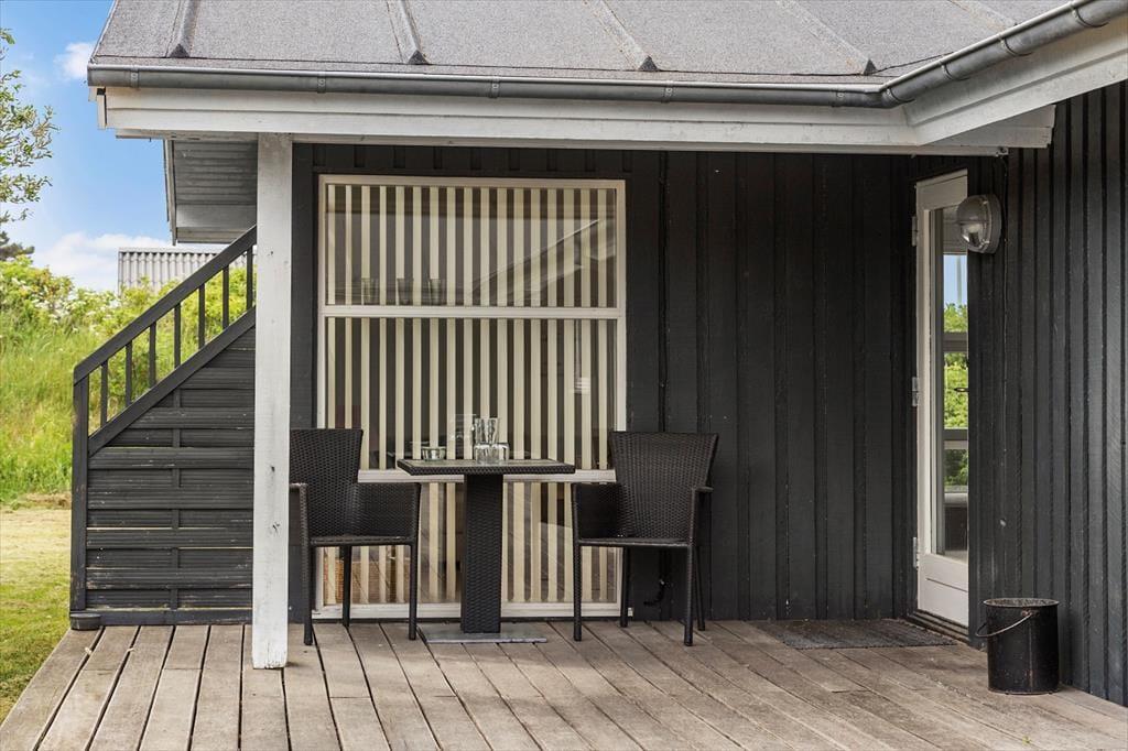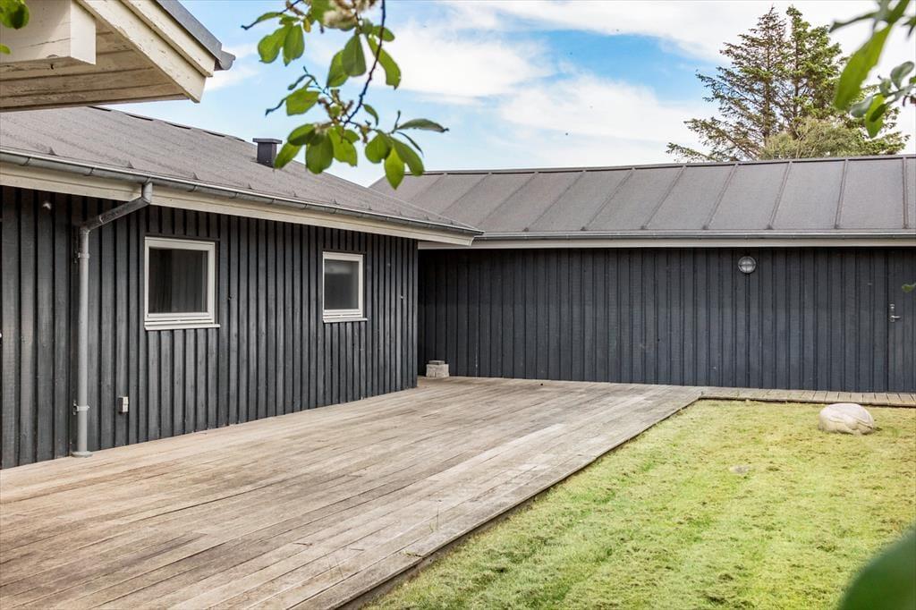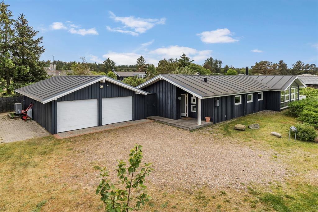 Das große Naturgrundstück wird von Wildrosen und anderen schönen Pflanzen abgeschirmt, und über das ganze Grün kannst du auf die blaue Nordsee schauen. Es gibt mehrere schöne Terrassen zur Auswahl, und je nachdem, ob du deinen Kaffee in der Sonne trinken oder eine Siesta im Schatten des Sonnenschirms machen möchtest, kannst du den Platz finden, der am besten passt. Am Abend wird die westlich ausgerichtete Holzterrasse sicherlich der bevorzugte Ort sein, denn während du grillst und dich mit der Familie vergnügst, hast du einen guten Überblick über den Himmel, wenn die Sonne untergeht und beginnt, die Wolken in den schönsten Farben zu färben. Für das Auto gibt es eine Garage, und wenn der Rasen nicht ausreicht für die Aktivitäten der Kinder, gibt es direkt auf der anderen Straßenseite einen Spielplatz.