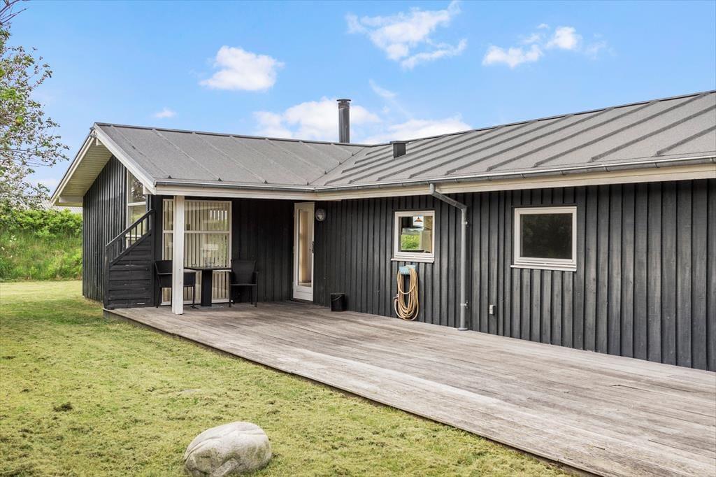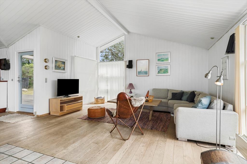 Bist du auf der Suche nach einer gemütlichen und ruhigen Basis, wo du mit deinen Lieben völlig abschalten kannst? Dann solltest du unbedingt einen genaueren Blick auf dieses gut eingerichtete Ferienhaus werfen, das auf einem großen Naturgrundstück mit schöner Meeresblick liegt – nur 500 Meter vom Kjul Strand entfernt.