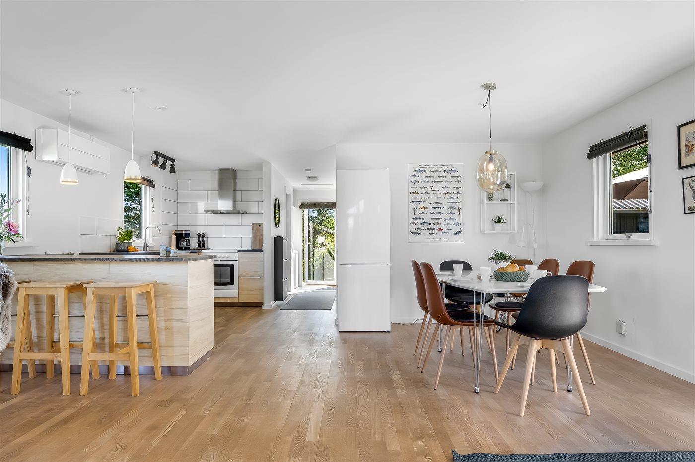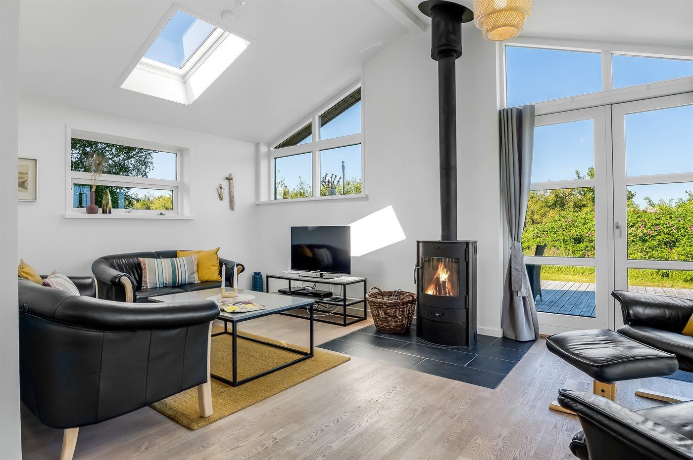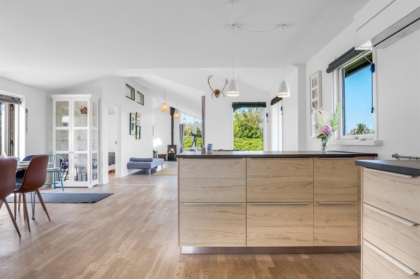 Modernes Ferienhaus in Kjul mit Meerblick und Naturgrundstück, ideal für Familien und Haustiere.