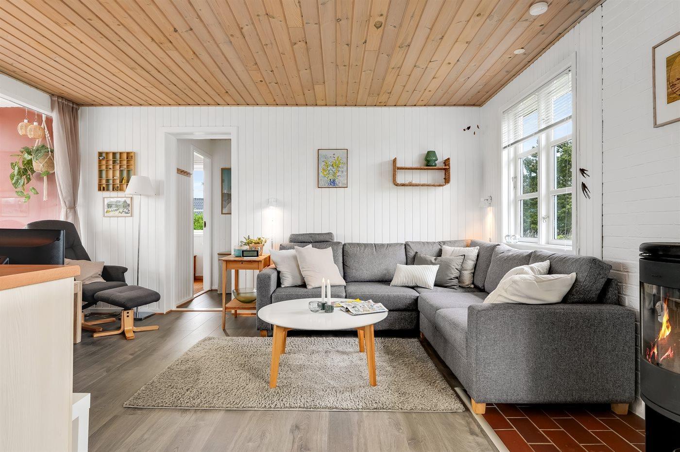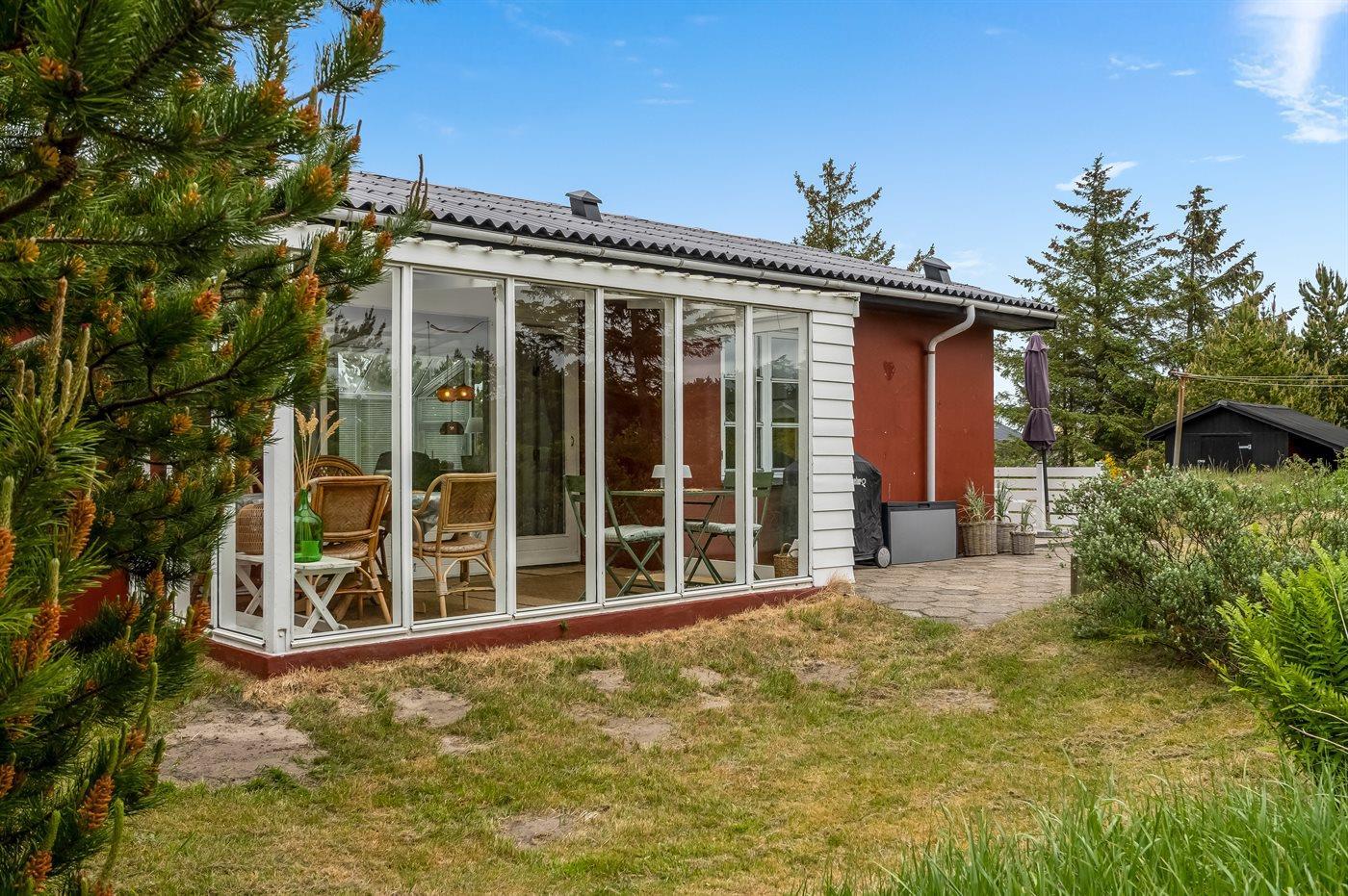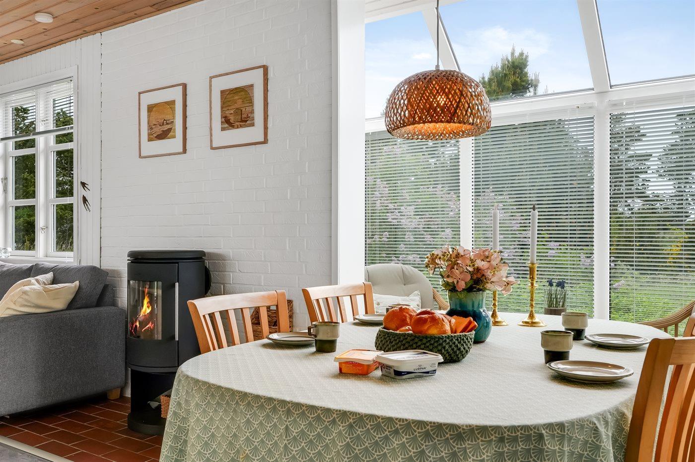 Gemütliches Ferienhaus in Kjul, 250 m vom Meer, mit Kamin, WLAN und Wintergarten – ideal für Familien und Paare.