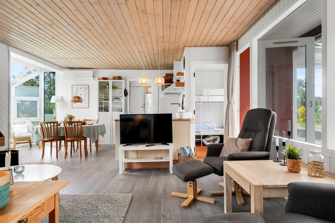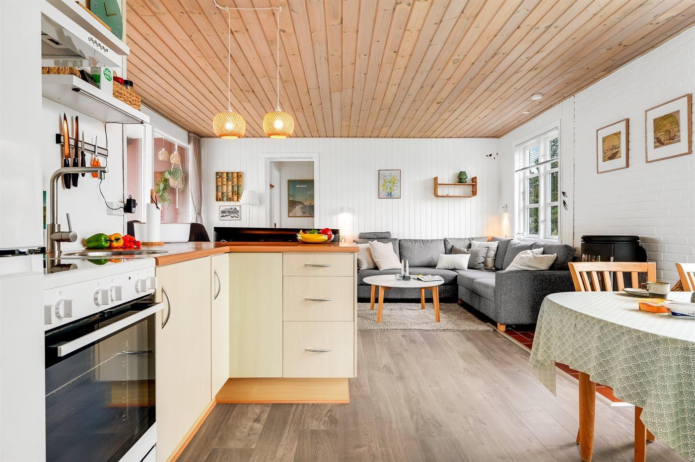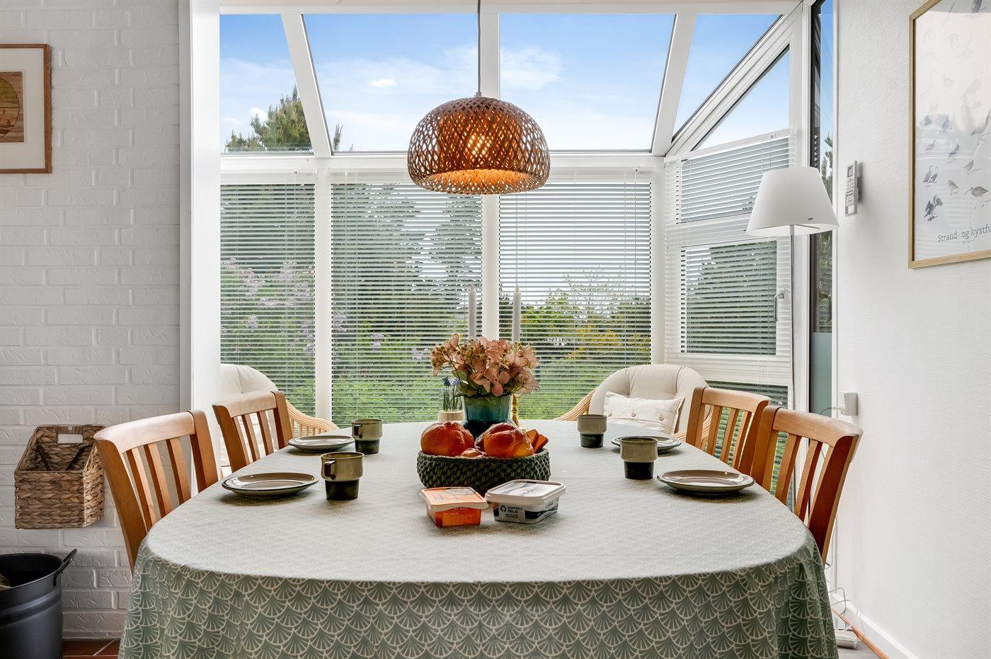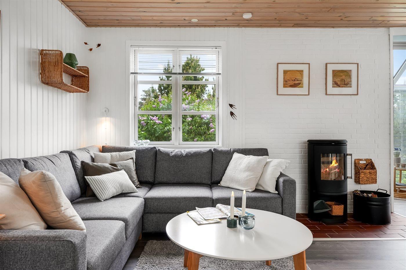 Gemütliches Ferienhaus in Kjul, 250 m vom Meer, mit Kamin, WLAN und Wintergarten – ideal für Familien und Paare.