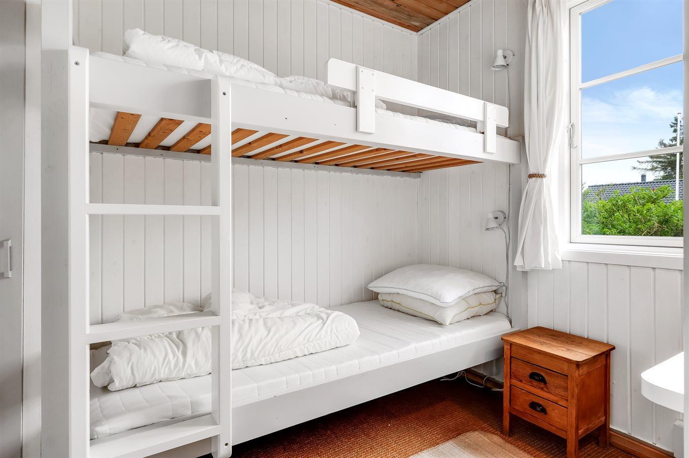 Die Schlafplätze verteilen sich auf 3 Schlafräume. 2 Schlafplätze in einem Doppelbett. 4 Schlafplätze in Etagenbetten. Ferner steht ein Kinderbett zur Verfügung.