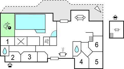 Am Ende einer Sackgasse in Kjul Strand liegt das große Ferienhaus, dass Sie aktiv sein lässt. Neben Swimmingpool und Whirlpool sind hier ein Pool-Tisch und Tischtennis vorhanden. Jeweils 3 Schlafzimmer und 1 Bad liegen in einem der Flügel und in der Mitte liegt der gemütliche Wohn- und Küchenraum, ideal für große Familien. Auch auf dem Hems geht es gemütlich zu, Ihren Kindern stehen 2 Matratzen zur Verfügung. Die Terrasse ist wie geschaffen für warme Sommertage. Praktisch vor der Tür liegt der herrlich weiße Sandstrand zum Dösen und Spazieren. Nur 4 km Fahrt und man ist im betriebsamen Fischerei- und Fährhafen von Hirtshals mit einem unverfälschten Fischerambiente, wo Sie mitunter frischen Fisch direkt von einem Kutter kaufen können und es gute Geschäfte und Restaurants gibt. Der Sportangler findet an der Mole ein gutes Fischgewässer oder kann an Bord eines der Fischkutter auf eine Hochsee-Angeltour z.B. zum Gelben Riff kommen. Dem Golfspieler stehen ein 18-Loch und ein 9-Loch Golfplatz in naturschöner Lage nahe bei Hirtshals zur Verfügung. Gönnen Sie sich hier auch einen Besuch im Nordseemuseum, welches in beeindruckenden Aquarien und einem Seehundbecken die Tier- und Pflanzenwelt in der Nordsee veranschaulicht. Gegen Süden dürfte Ihnen das malerische Fischerdorf Lønstrup zusagen, wo heute wie damals Küstenfischerei betrieben wird und die Boote mittels eines Spills an den Strand gezogen werden. In Lønstrup finden Sie viele nette Cafés und Speiselokale und viele Galerien und Kunstwerkstätten, die in ihren Arbeiten das Farbenspiel des Meeres und des Sandes im blendenden Licht widerspiegeln, welches typische für dieses Landstrich ist. Zu den sehenswerte Naturphänomenen in dieser Gegend zählt die riesige Wanderdüne Råbjerg Mile, die auf ihrer Wanderung bis zu 15 m pro Jahr in östlicher Richtung alles unter sich begräbt.