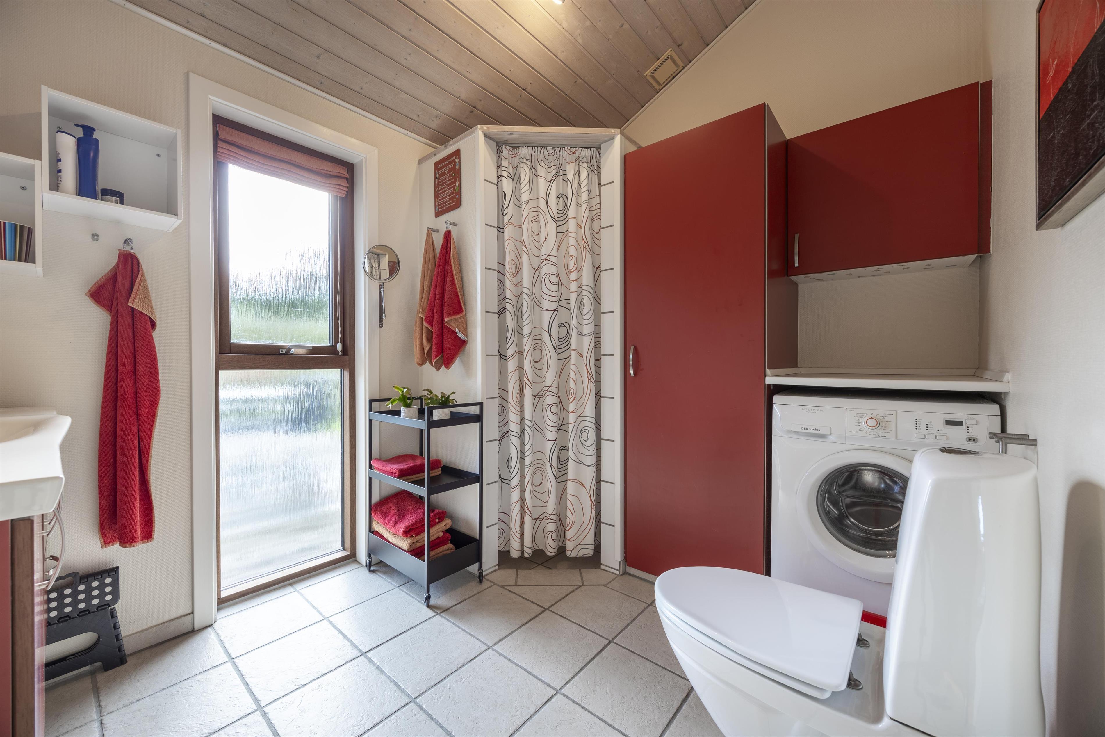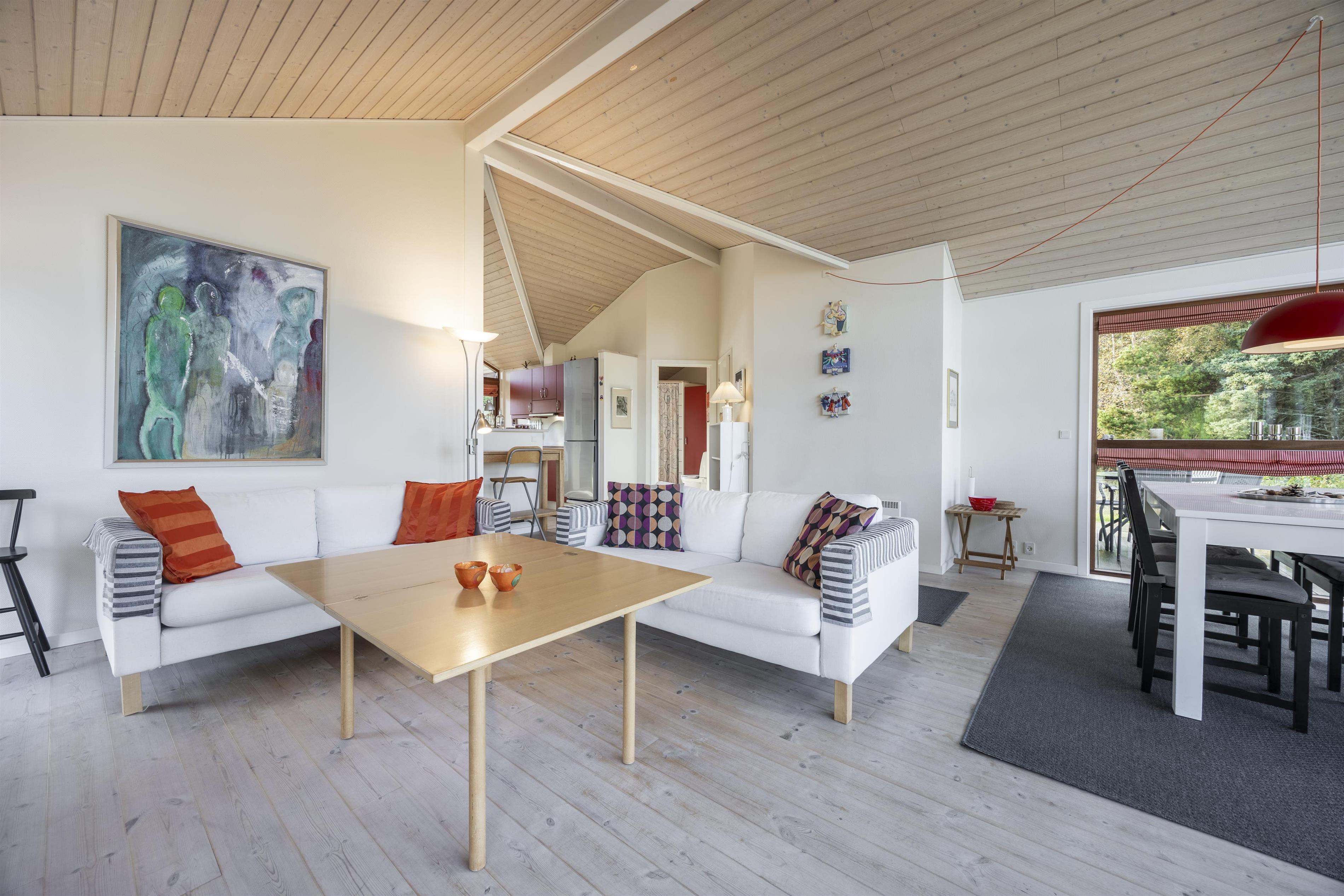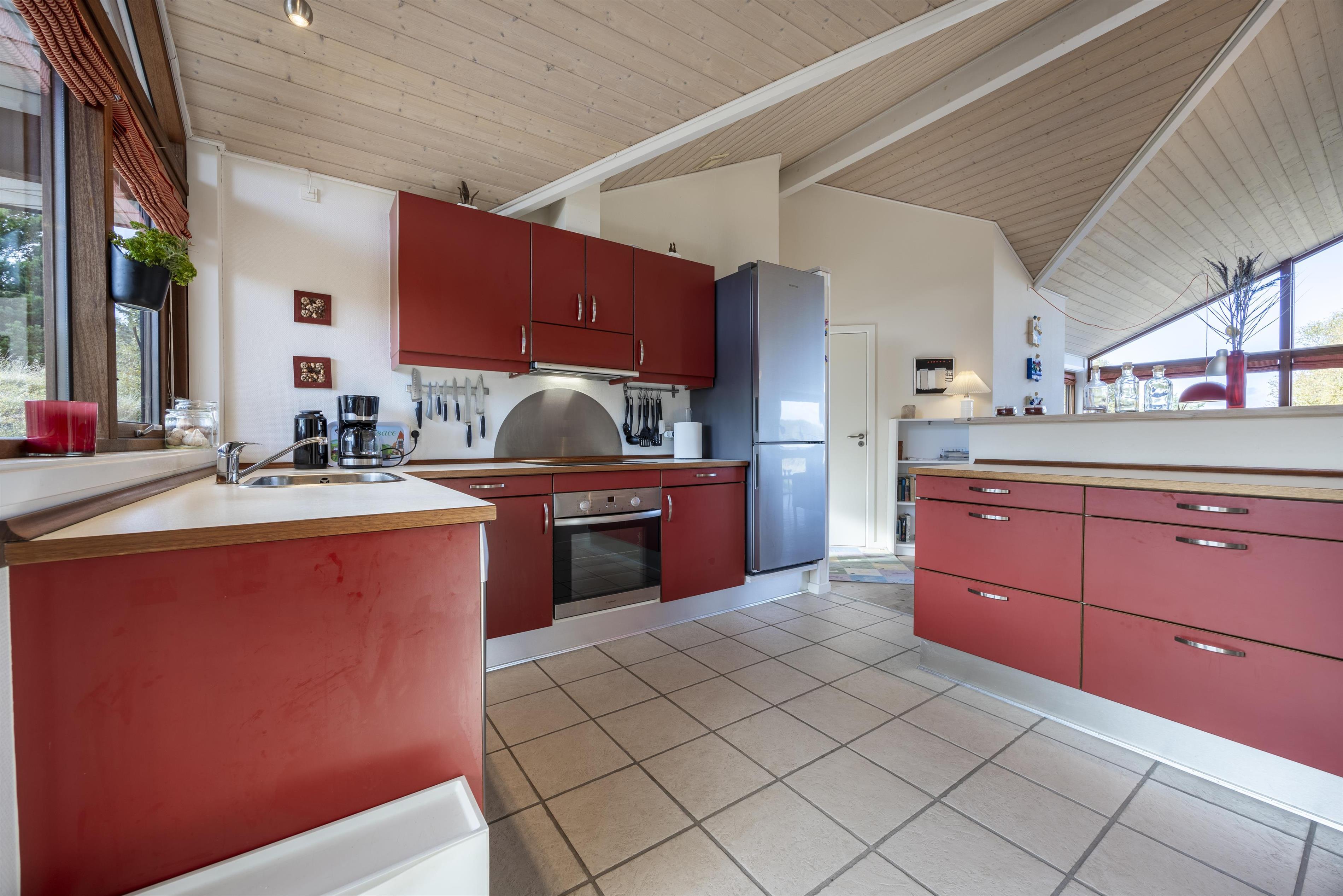 Dieses charmante und helle Ferienhaus bietet eine fantastische Lage mit Ausblick auf die raue Natur von Kjul. Es ist ausgestattet mit einem großzügigen und geräumigen Wohnbereich, der durch seine hohe Decke und Fußbodenheizung in der Küche eine besondere Wohlfühlatmosphäre schafft. Der Essbereich ist von großen Fensterpartien umgeben, die herrliches Licht auf den Esstisch strahlen lassen. Im Wohnbereich finden Sie auch eine gemütliche Fernsehecke mit Sofa, ideal zum Entspannen nach einem erlebnisreichen Tag. Vom Wohnbereich aus gelangen Sie zu den drei schönen Schlafzimmern sowie zu einem großzügigen, modernen Badezimmer.