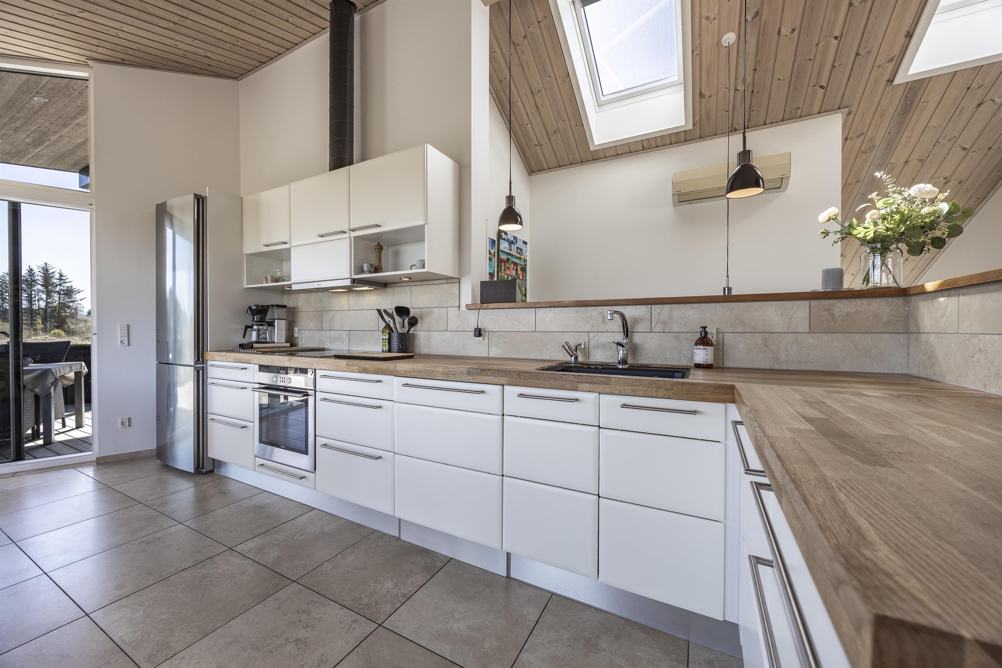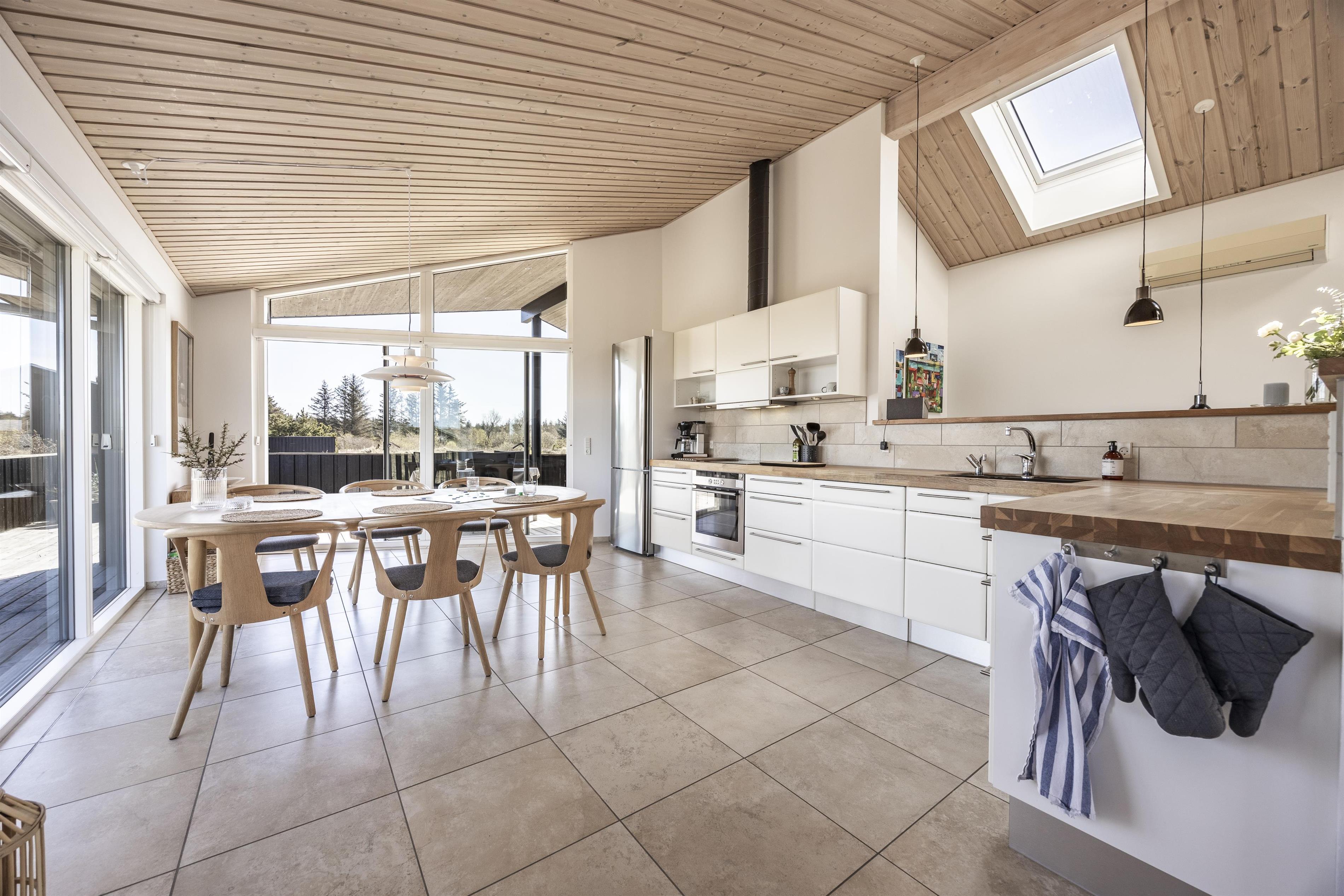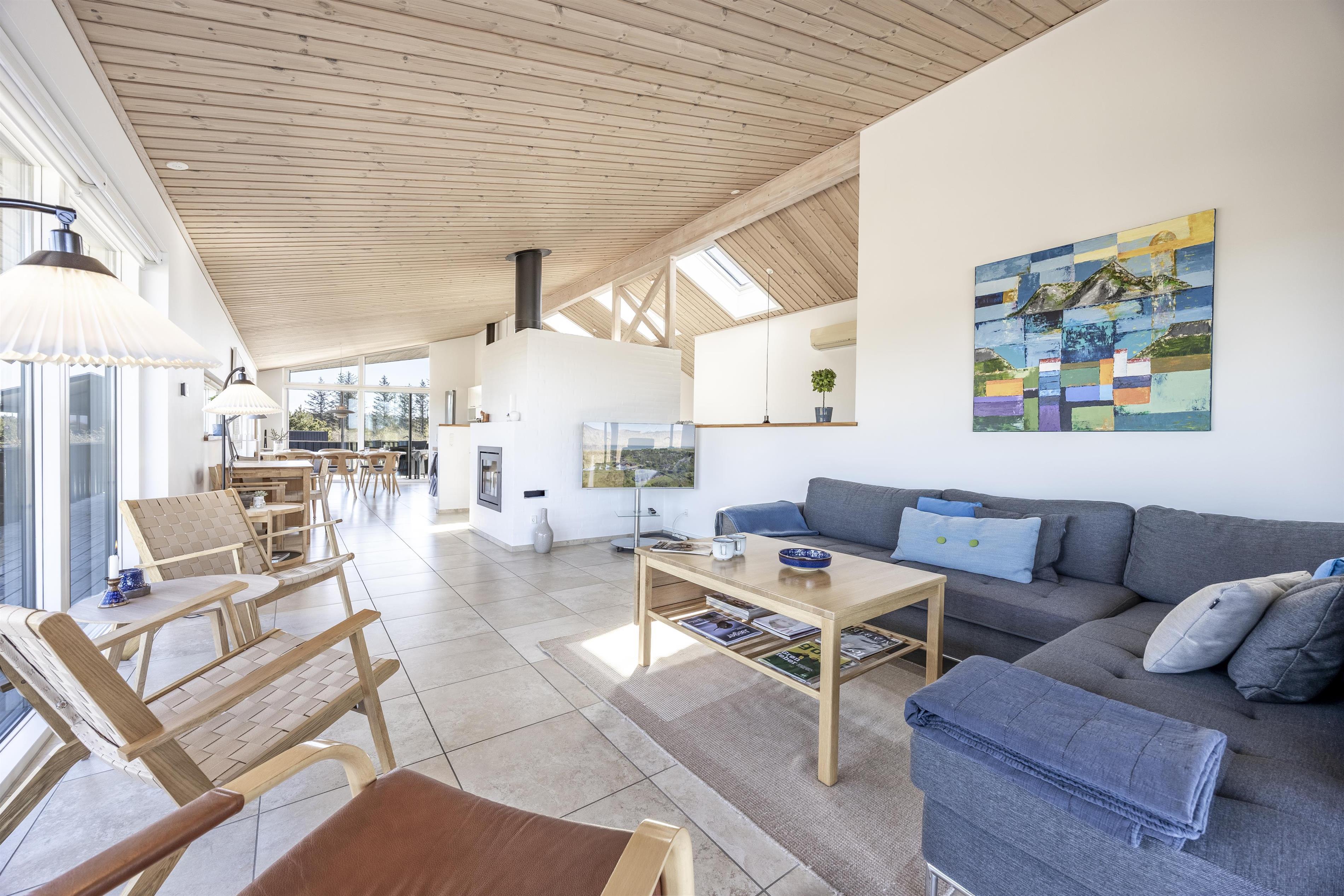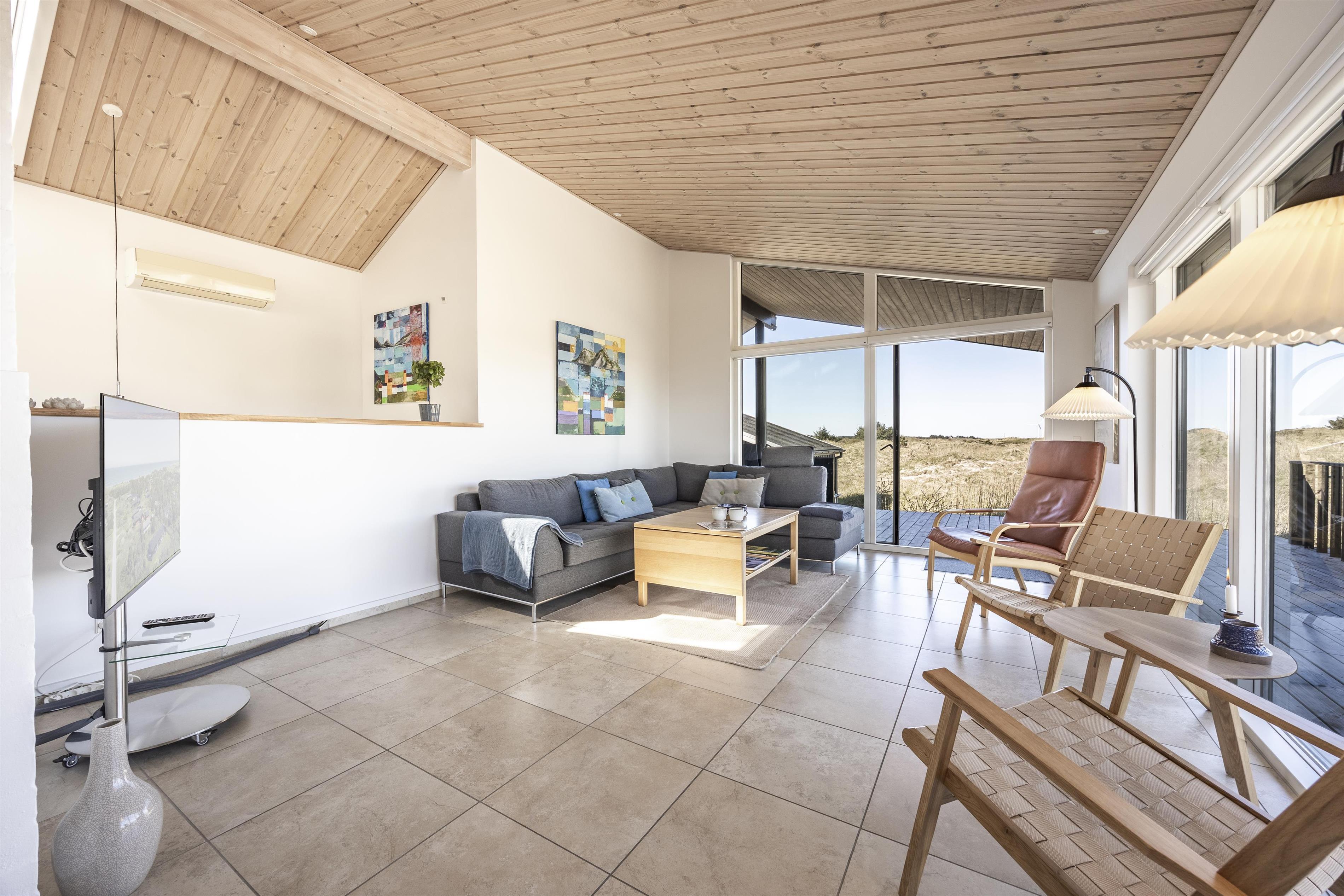 Träumen Sie von einem Ferienhaus von hoher Qualität, Frieden und Ruhe sowie dem schönsten Meerblick während Ihres nächsten Urlaubs? Dann ist dieses wunderschöne Ferienhaus die perfekte Wahl. Hier finden Sie alles, was Sie für einen besonders erfolgreichen Urlaub benötigen. Das Haus liegt in einer schönen Naturlandschaft in Kjul – hier ist es ruhig, und von überall haben Sie einen fantastischen Blick auf die tosende Nordsee und die hügelige Dünenlandschaft. Hier haben Sie viel Himmel und eine herrliche, entspannende Atmosphäre.