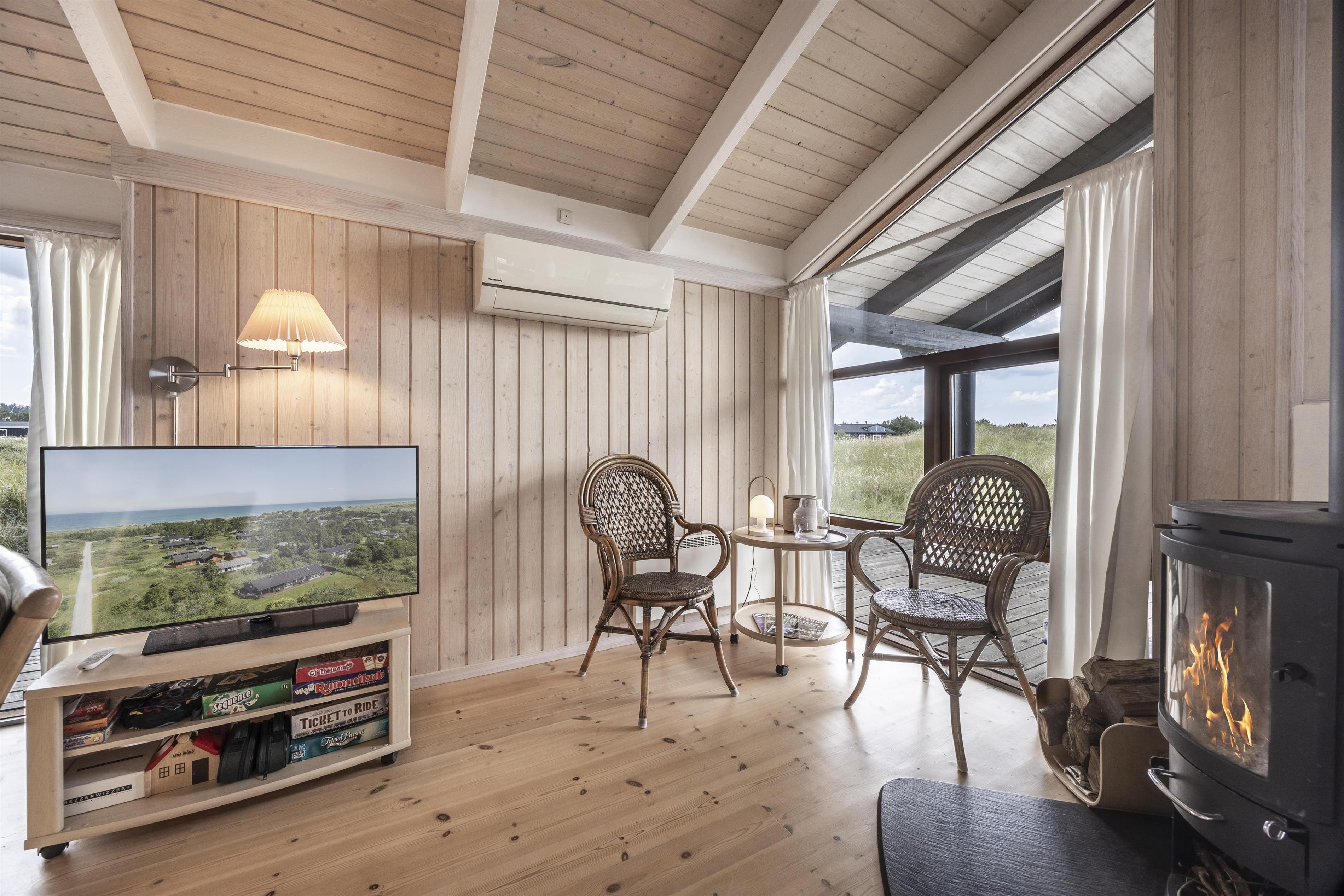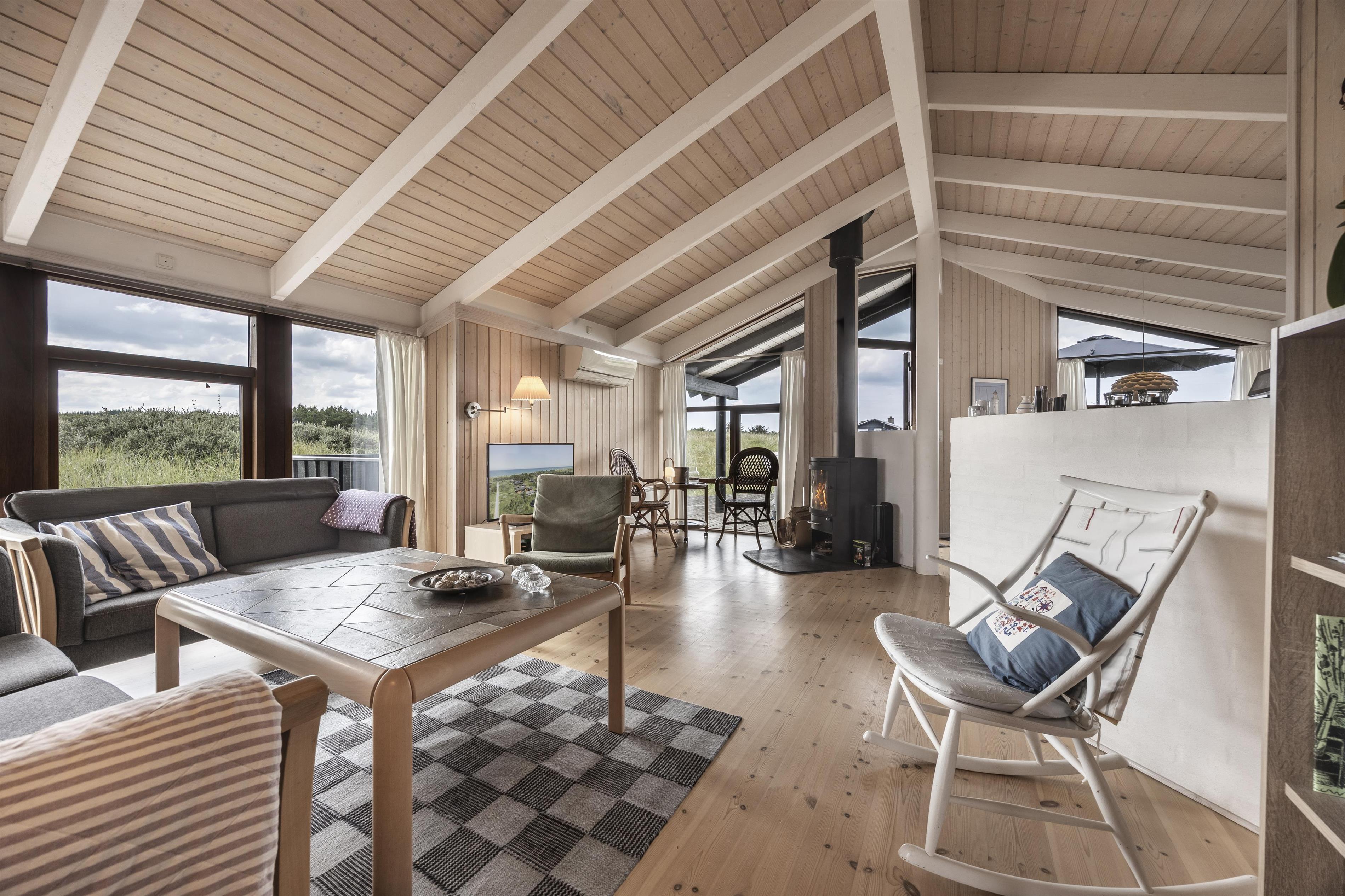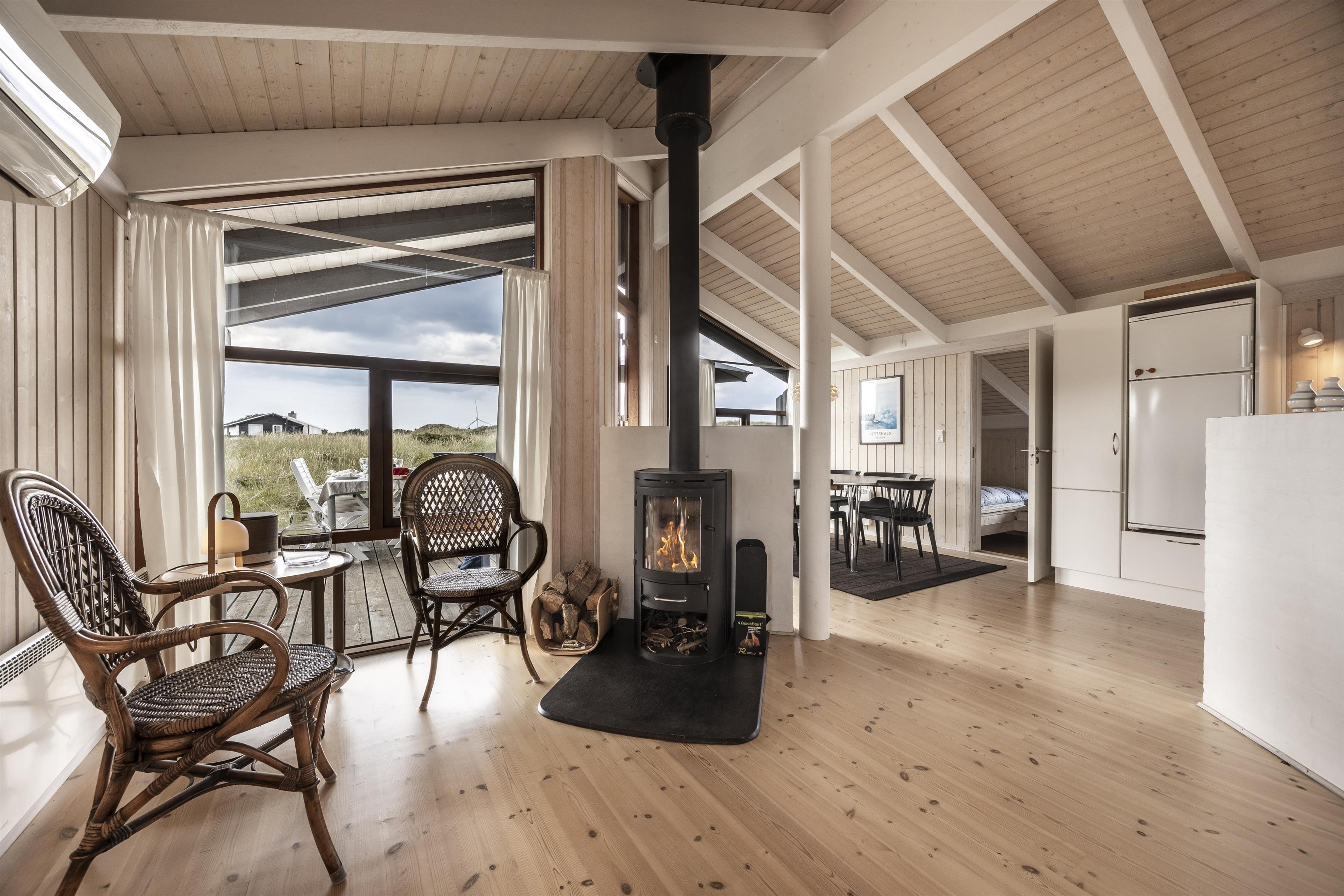 Willkommen in einem einladenden und gepflegten Ferienhaus an der dänischen Westküste, ideal für Familien oder Freundesgruppen, die Erholung und gemeinsame Zeit in naturnaher Umgebung suchen. Das Haus bietet Platz für bis zu 8 Personen und ist mit Fokus auf Gemütlichkeit und Funktionalität eingerichtet. Im Wohnzimmer sorgt ein Kaminofen für eine warme und entspannte Atmosphäre – perfekt für kühlere Abende. Der offene Wohnbereich ist mit komfortablen Sitzgelegenheiten ausgestattet und mit der vollständig eingerichteten Küche verbunden, die alles bietet, was Sie für einen angenehmen Aufenthalt benötigen. Große Fensterflächen lassen das herrliche Licht Nordjütlands ins Innere strömen und verstärken das Gefühl, der Natur ganz nah zu sein – zu jeder Jahreszeit.