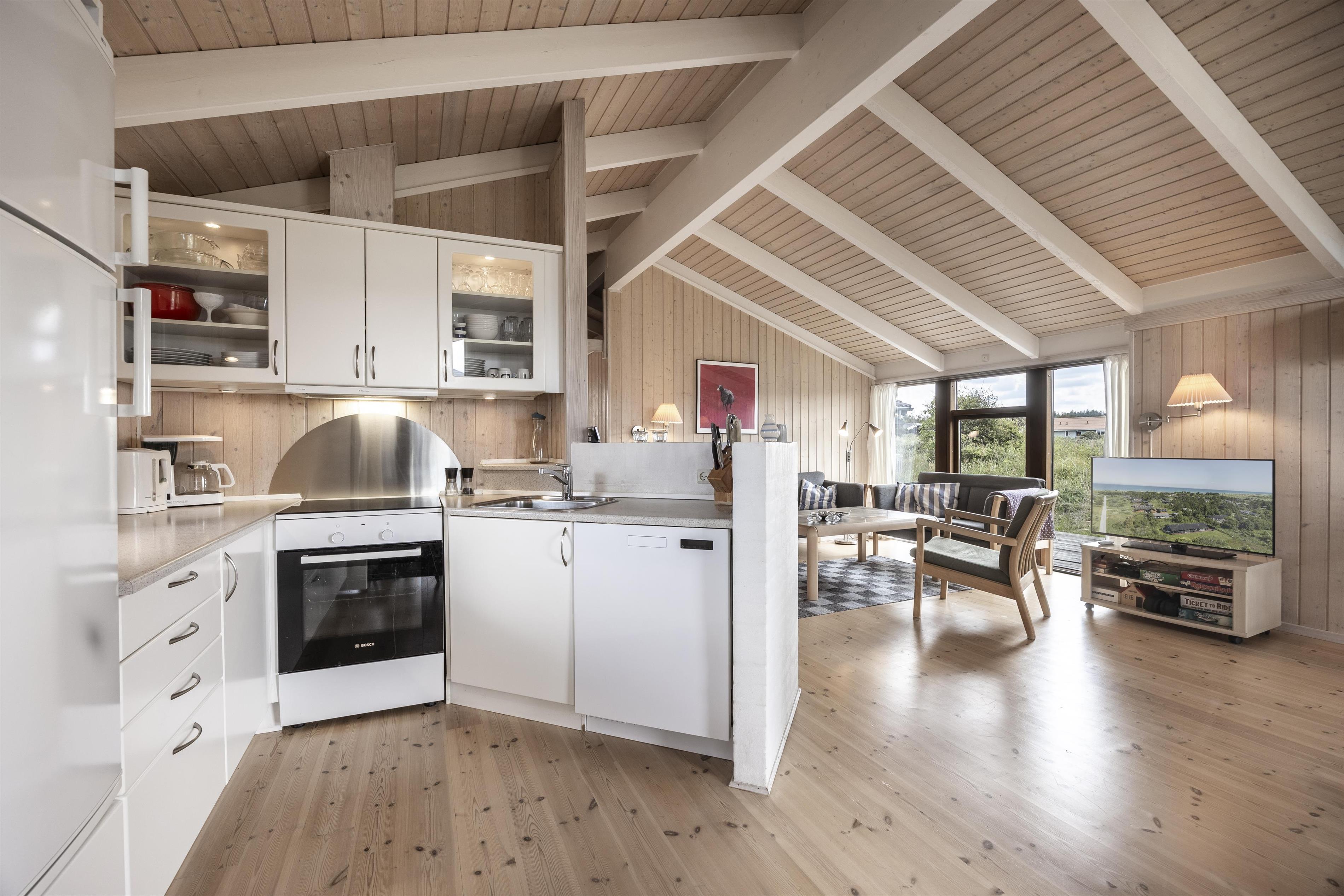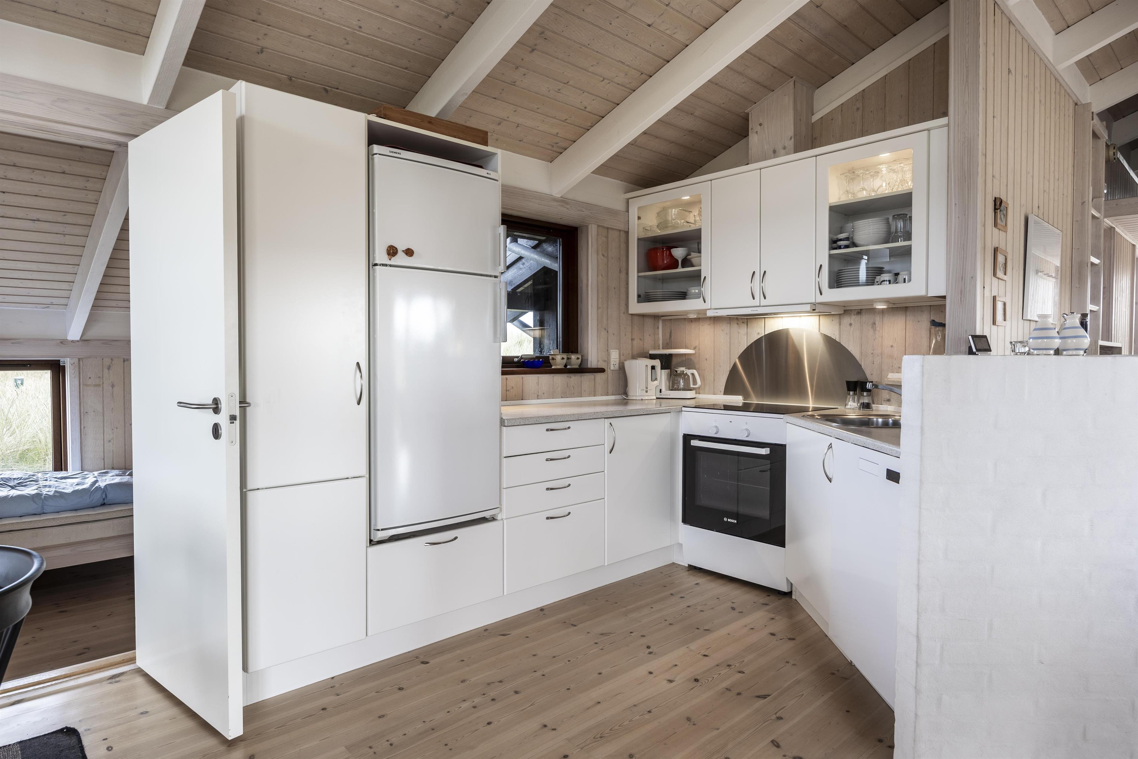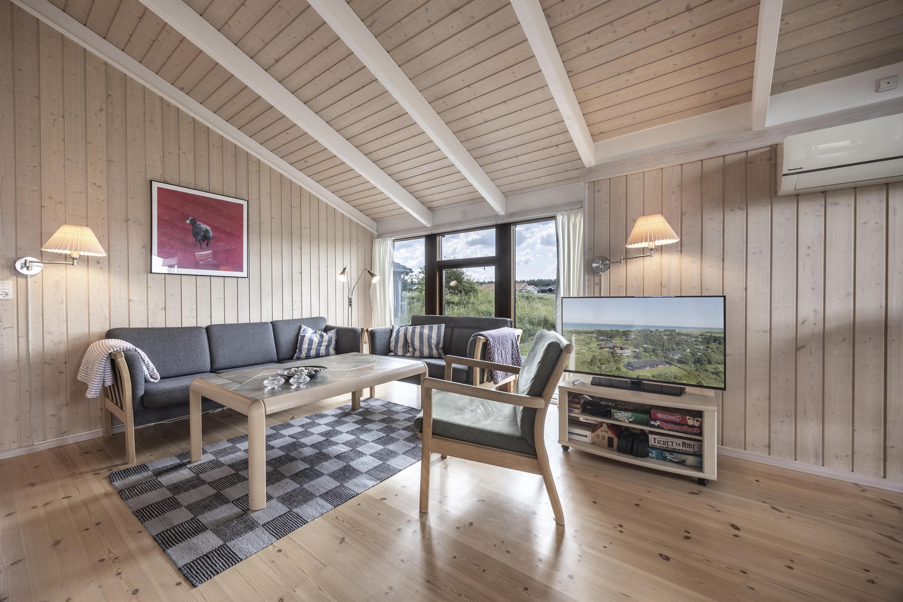 Willkommen in einem einladenden und gepflegten Ferienhaus an der dänischen Westküste, ideal für Familien oder Freundesgruppen, die Erholung und gemeinsame Zeit in naturnaher Umgebung suchen. Das Haus bietet Platz für bis zu 8 Personen und ist mit Fokus auf Gemütlichkeit und Funktionalität eingerichtet. Im Wohnzimmer sorgt ein Kaminofen für eine warme und entspannte Atmosphäre – perfekt für kühlere Abende. Der offene Wohnbereich ist mit komfortablen Sitzgelegenheiten ausgestattet und mit der vollständig eingerichteten Küche verbunden, die alles bietet, was Sie für einen angenehmen Aufenthalt benötigen. Große Fensterflächen lassen das herrliche Licht Nordjütlands ins Innere strömen und verstärken das Gefühl, der Natur ganz nah zu sein – zu jeder Jahreszeit.