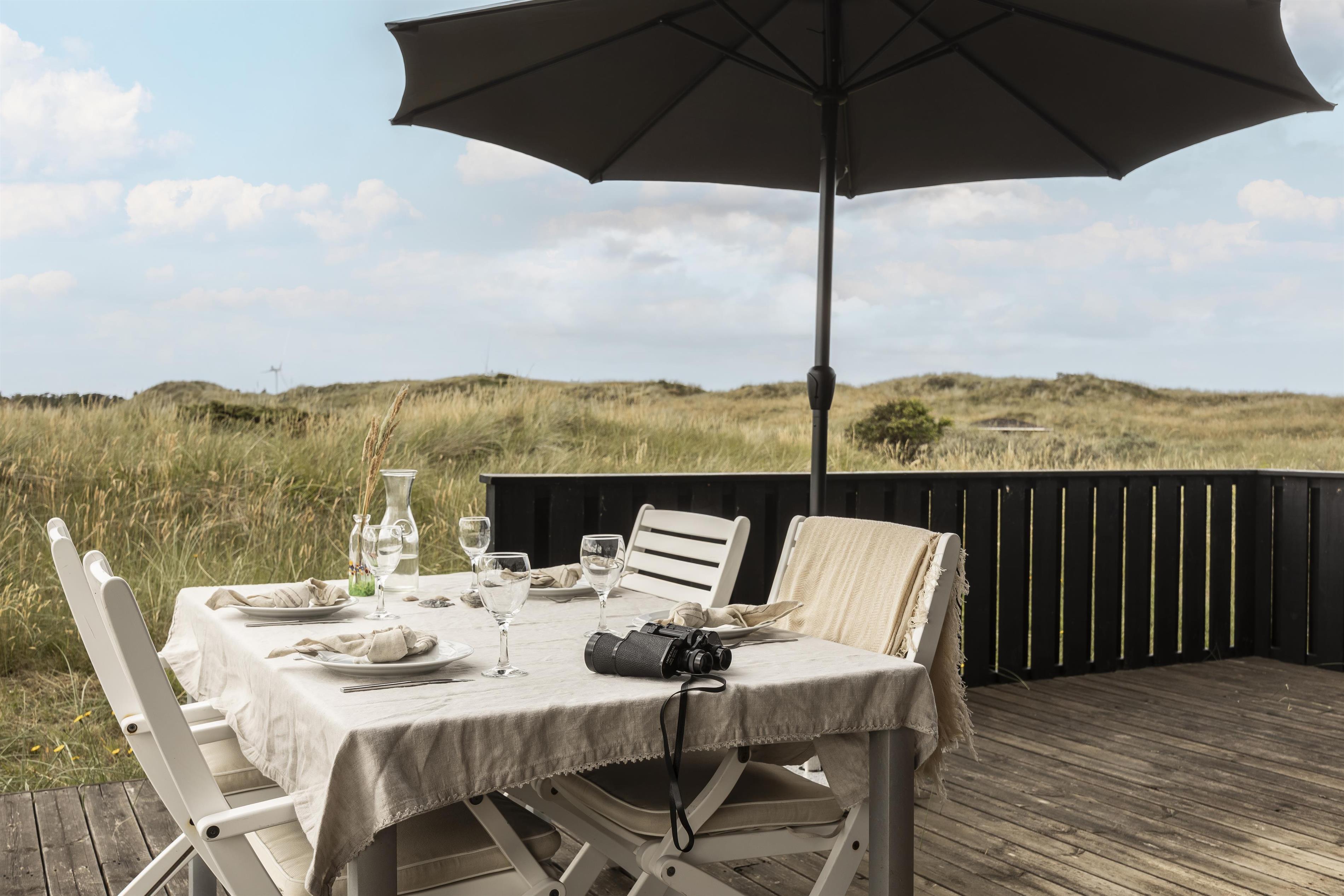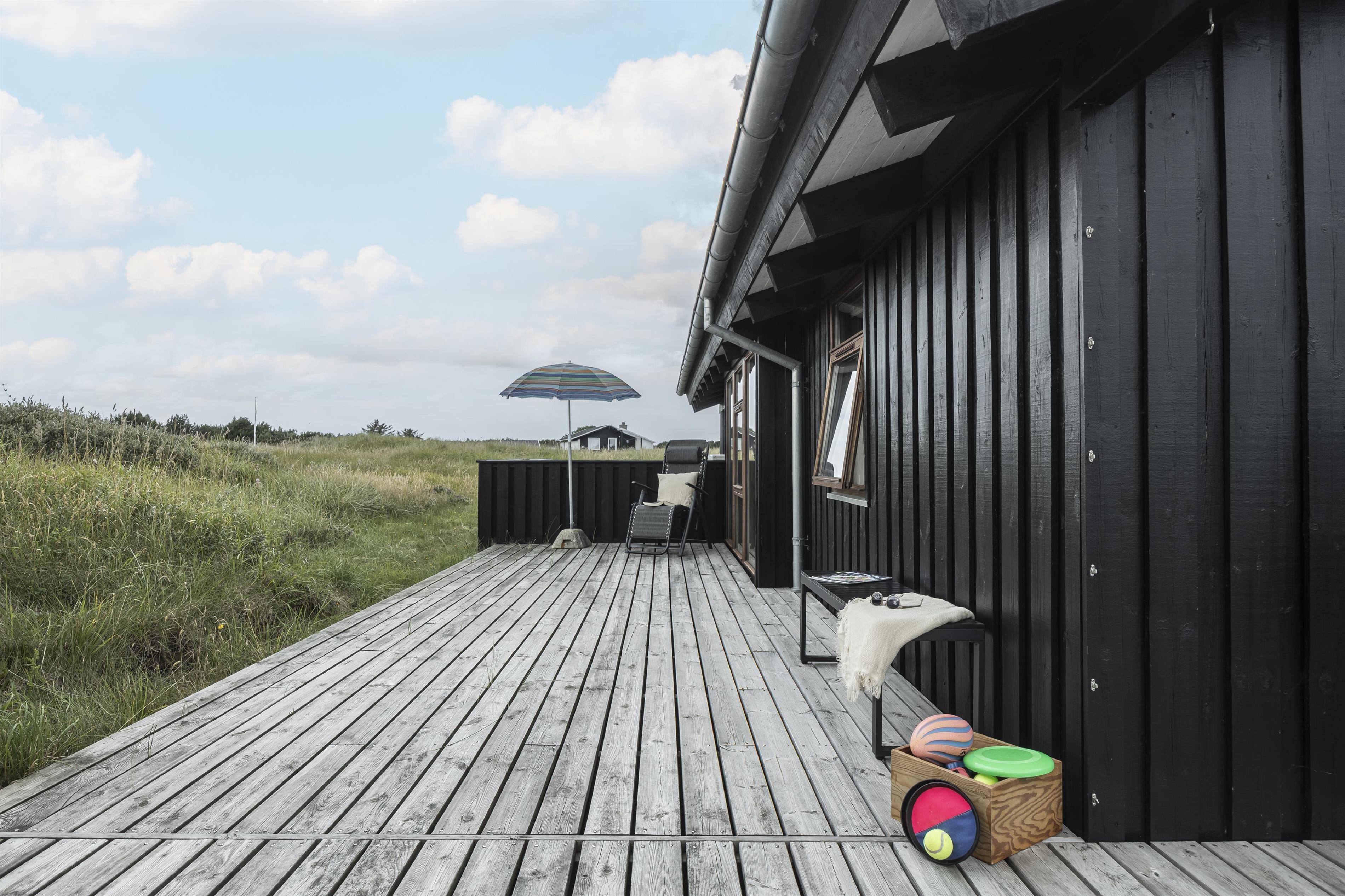Die Außenanlagen dieses Ferienhauses stehen dem Innenbereich in nichts nach. Es erwarten Sie herrliche Terrassen auf beiden Seiten des Hauses, sodass Sie stets ein sonniges oder windgeschütztes Plätzchen finden – oder einfach entspannte Momente mit einem Buch und einer Tasse Kaffee genießen können. Die überdachte Terrasse bietet zusätzlichen Komfort bei jedem Wetter und erlaubt Ihnen ungestörte Stunden mit Blick auf die Dünen. Mit nur 125 Metern zum Strand hören Sie das Rauschen des Meeres und können abendliche Spaziergänge zu den Dünen unternehmen, um den Sonnenuntergang über der Nordsee zu erleben.