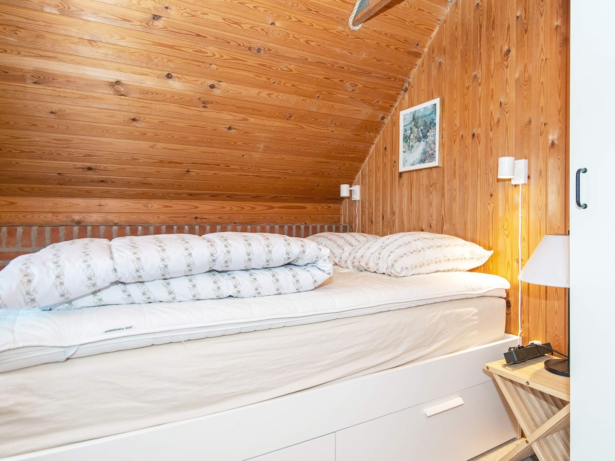Neben dem Badezimmer mit Sauna und angenehmer Fußbodenheizung gibt es zwei Schlafzimmer im Haus: eines mit Doppelbett, das zweite mit zwei Einzelbetten. Darüber hinaus stehen oben auf dem Hems unter der Dachschräge zwei weitere Schlafplätze bereit.