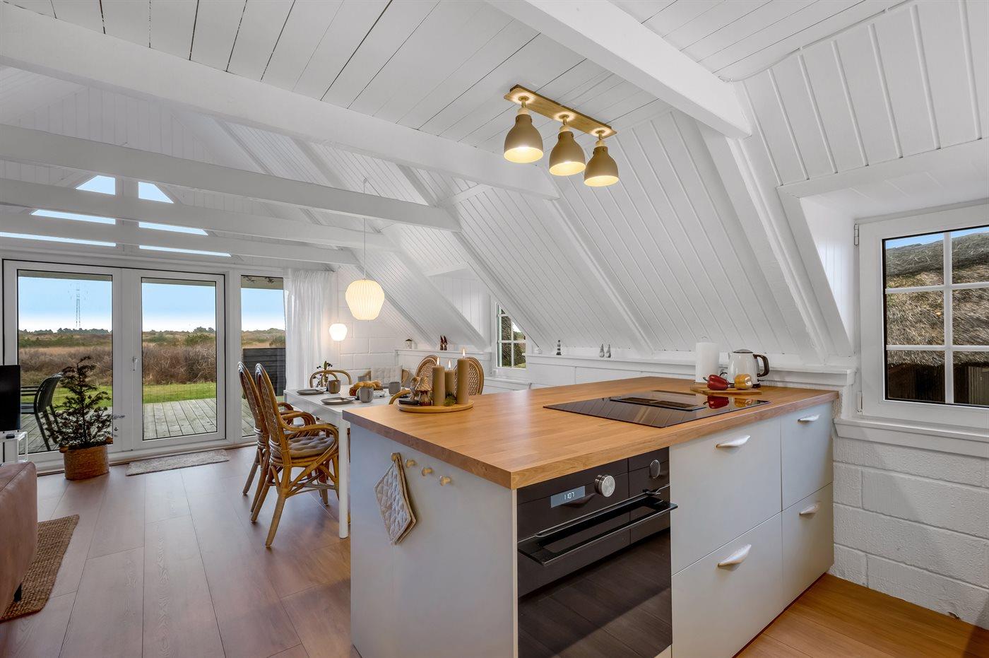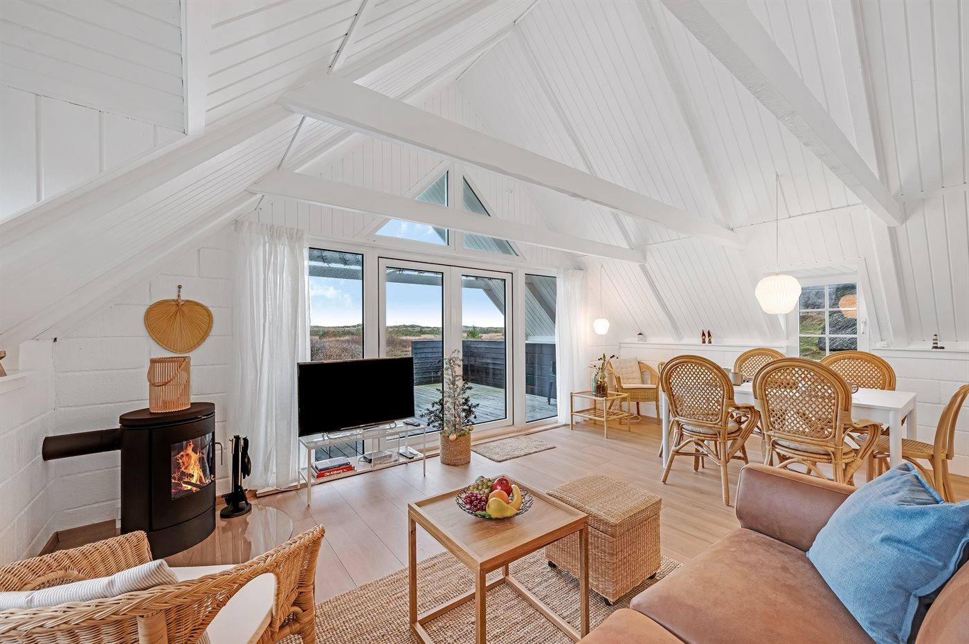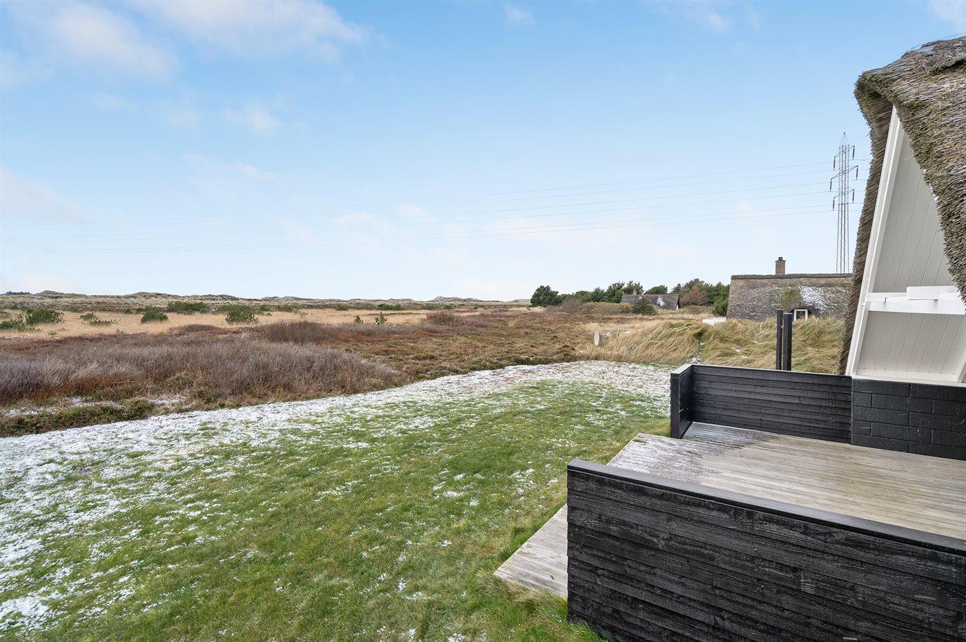 Ein schönes, reetgedecktes Ferienhaus, das im Herbst 2025 renoviert wird, liegt in ruhiger Gegend. Die teilweise überdachte Terrasse bietet eine fantastische Aussicht auf das große Naturschutzgebiet Richtung Leuchtturm von Lyngvig.