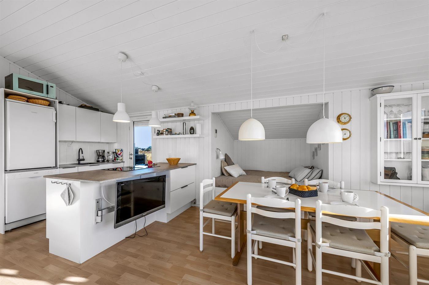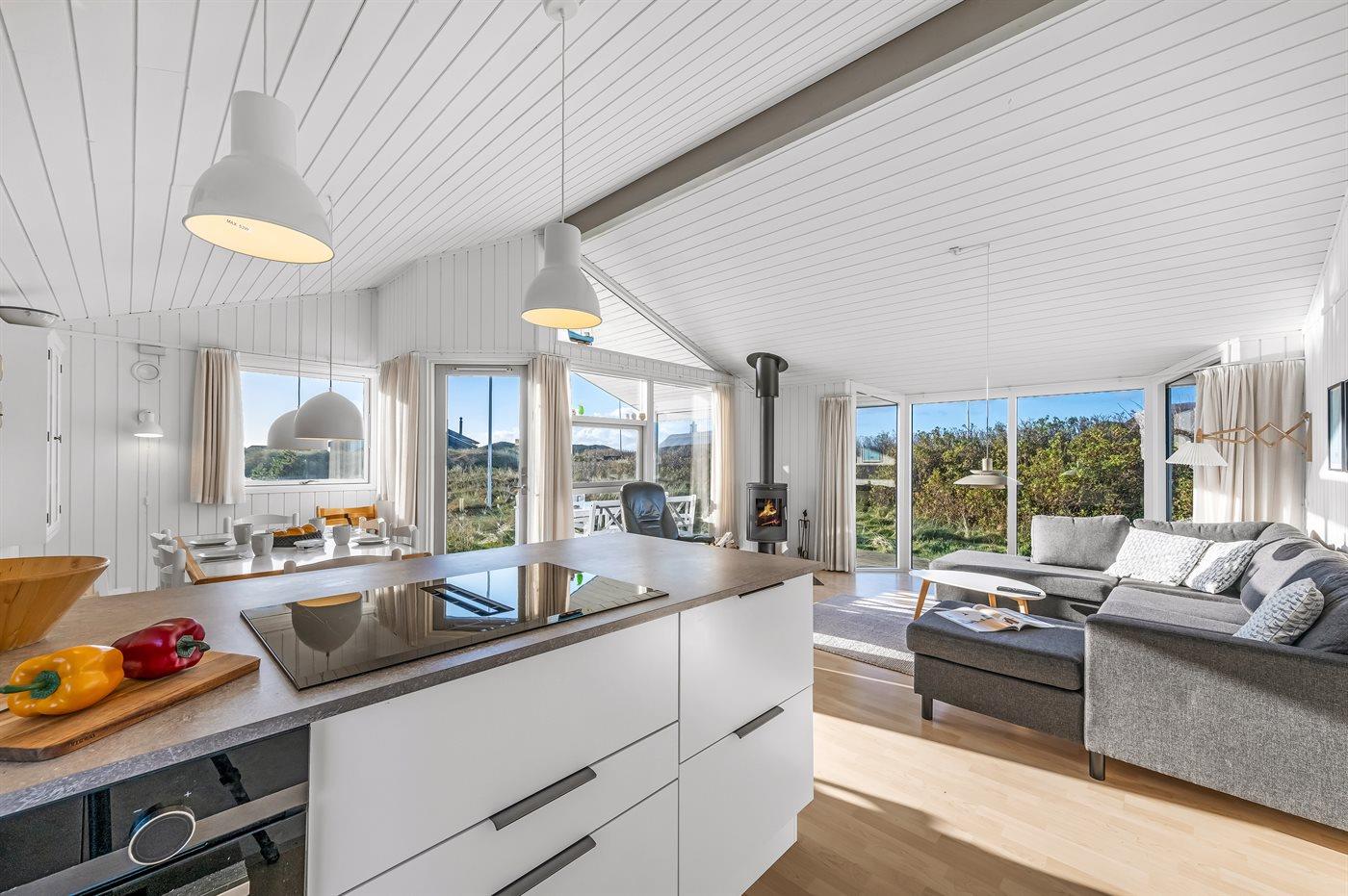 Die Ferienunterkunft liegt auf einem 2004 m² großen Naturgrundstück. Die Entfernung zum Meer beträgt 200 m. Die Entfernung zum Fjord beträgt 1500 m. Die nächste Einkaufsmöglichkeit liegt 1000 m entfernt. In einem Abstand von 5000 m gibt es einen Golfplatz. Es steht ein 50 m² Terrassenareal zur Verfügung. Außerdem gibt es 8 m² überdachte Terrasse. Geräteraum. Außendusche. Parkplatz auf dem Grundstück.
