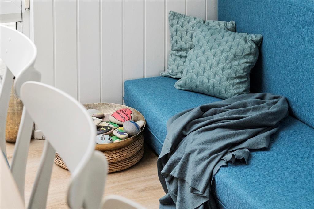 Das Ferienhaus bietet eine klassische, gemütliche Atmosphäre, die mit einer modernen Einrichtung Hand in Hand geht. Im offen gestalteten Wohnbereich genießen Sie eine wunderbar helle und luftige Atmosphäre, während die Wärmepumpe für eine angenehme Temperatur sorgt und der Holzofen die Abende gemütlich macht. Die Küche ist mit einem Geschirrspüler und anderen wünschenswerten Geräten ausgestattet. Zudem gibt es viel Platz zum gemeinsamen Kochen. Die Mahlzeiten können Sie bequem am Esstisch einnehmen. Im Wohnzimmer ist eine Sofalandschaft mit einem Fernseher, Chromecast und einer gemütlichen Leseecke mit einem Schlafsofa vorhanden. In den drei Schlafzimmern können sechs Personen schlafen. Außerdem gibt es ein helles Badezimmer mit Dusche und eine angrenzende Waschküche mit Waschbecken.