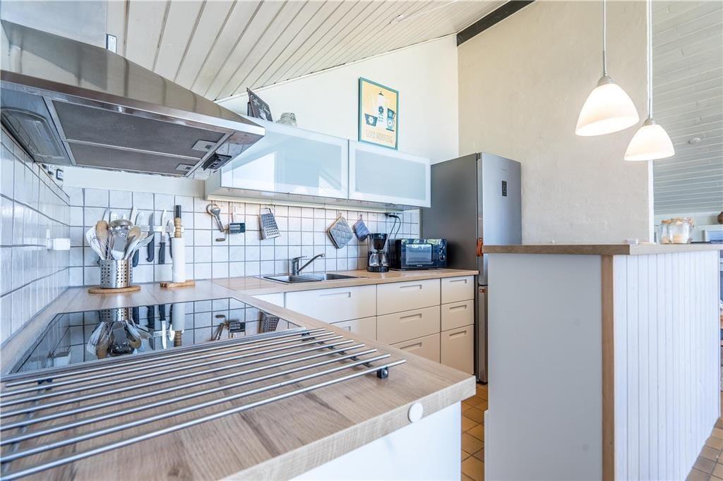 Mit Terrassen nach Osten und Westen könnt ihr die Sonne von morgens bis abends genießen. Auf der Ostterrasse beginnt der Tag perfekt mit einer Tasse Kaffee in den ersten Sonnenstrahlen, und der südliche Teil eignet sich ideal für ein sonniges Mittagessen. Auf der Westterrasse könnt ihr das Abendessen in der späten Sonne servieren – und dabei den Sonnenuntergang in vollen Zügen genießen. Vom großen Panoramafenster im Wohnzimmer wie auch von der Westterrasse eröffnet sich euch zudem ein herrlicher Blick auf die Dünen am Meer – ein Anblick, der den Urlaubsmoment besonders macht, wenn die Sonne am Horizont versinkt. Auf dem gemütlichen Naturgrundstück findet ihr rund ums Haus jederzeit ein windgeschütztes Plätzchen.