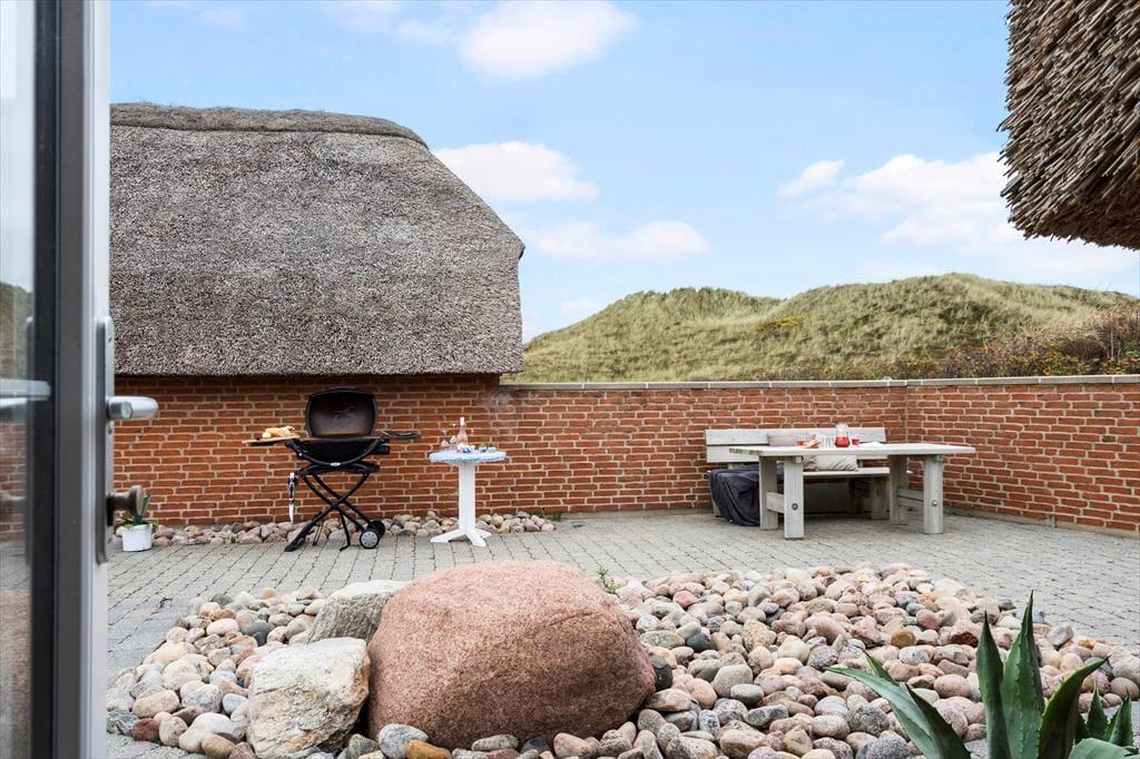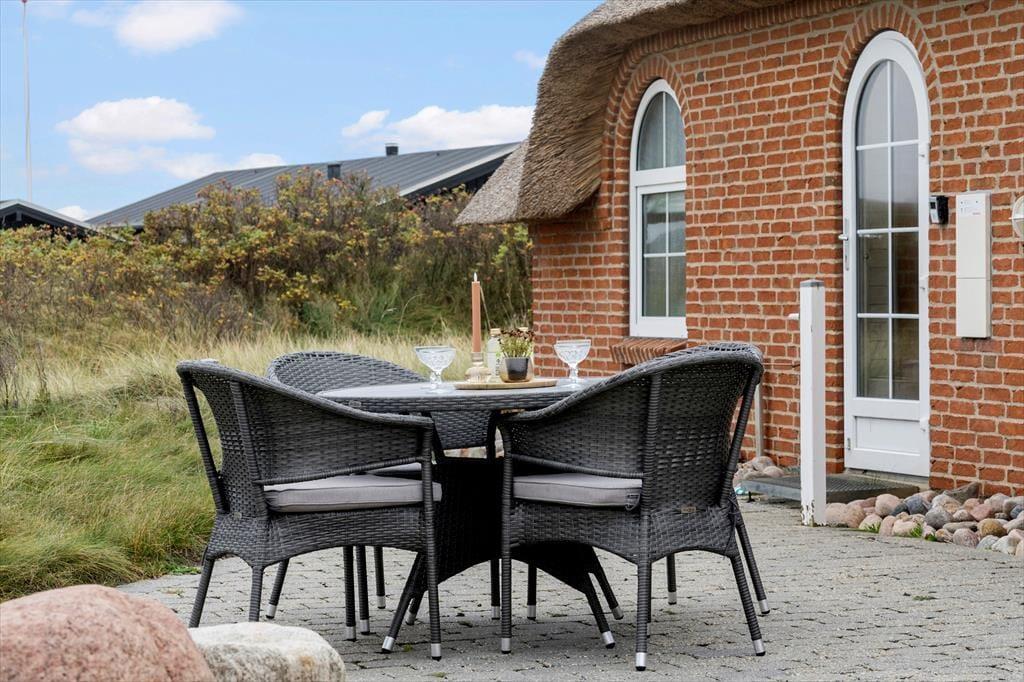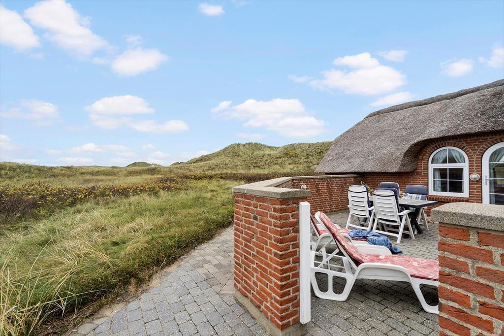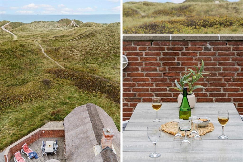 Wenn die Sonne von Himmel lacht, ist es Zeit, die vielen schönen Terrassen rund um das Ferienhaus zu nutzen. Hier gibt es Platz von Sonnenauf- bis zum Sonnenuntergang und die vielen gemütlichen Windschutz Ecken ermöglichen es, zu jeder Tageszeit ein geschütztes Plätzchen zu finden. Durch die private Lage könnt ihr euren Aufenthalt im Freien in völliger Ruhe genießen – ohne Störungen durch Verkehr oder Andere. Rund um das Haus findet ihr mehreres an Terrassenmöbeln, in denen ihr entspannen, die frische Meeresluft genießen und den wunderschönen Blick auf die Dünen unter die Haut kommen lassen könnt. Das hügelige Grundstück bietet eine natürliche Abschirmung – hier seid ihr wirklich ungestört.