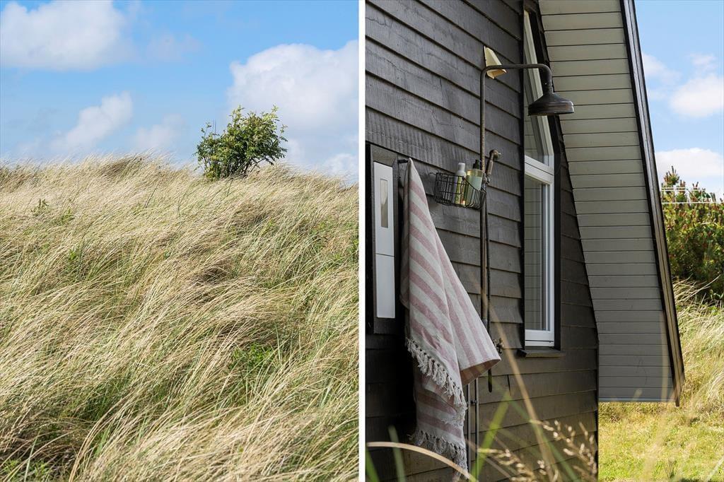 Das Ferienhaus liegt auf einem vollständig geschlossenen Naturgrundstück – ideal, wenn du mit kleinen Kindern oder deinem Vierbeiner reist. Die offene Terrasse ist ein echtes Highlight: Hier kannst du morgens mit einem erquickenden Kaffee in den Tag starten, mittags in der Sonne ein gutes Buch lesen und abends bei einem Glas Wein den Grill anwerfen. Auch die Außendusche ist ein schöner Luxus. Sand und Salzwasser können nach einem Strandbesuch schnell und praktisch abspült werden oder wie wär’s früh zum Aufwachen mit einem erfrischenden Energiebad unter freiem Himmel? Der gepflegten Areale rund ums Haus laden zum Spielen, Faulenzen oder einfach zum Ruhe genießen ein – und wenn der Wind durch die hohen Gräser rauscht und die Vögel wohlgestimmt zwitschern, ist der Alltag absolut auf Abstand gelassen.