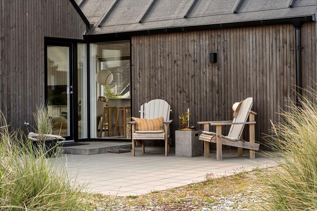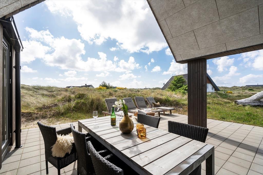Hinter der schönen Holzfassade sind die Räume hell und einladend. Hier ist reichlich Platz, um Freunde oder Familie mit in den Urlaub einzuladen. Wen auch immer Sie als Gesellschaft bevorzugen, Sie können sich auf herrliche Tage freuen - einfach entspannen und das Leben genießen. Der Holzofen neben dem Sofa im Wohnraum ist perfekt für kühle Tage. Die offene, gut ausgestattete Küche bietet sich an, hier die leckersten Lieblingsgerichte zuzubereiten, vom einfachen Nudelgericht zu Menüs für Fortgeschrittene. Ebenfalls vom Essbereich hat man einen schönen Blick auf die Dünen und den Himmel mit seinen vorbeigleitenden Wolken - wenn man nicht gerade in einem der drei Schlafzimmern Siebenschläferschlaf schläft oder sich in der Sauna entspannt.