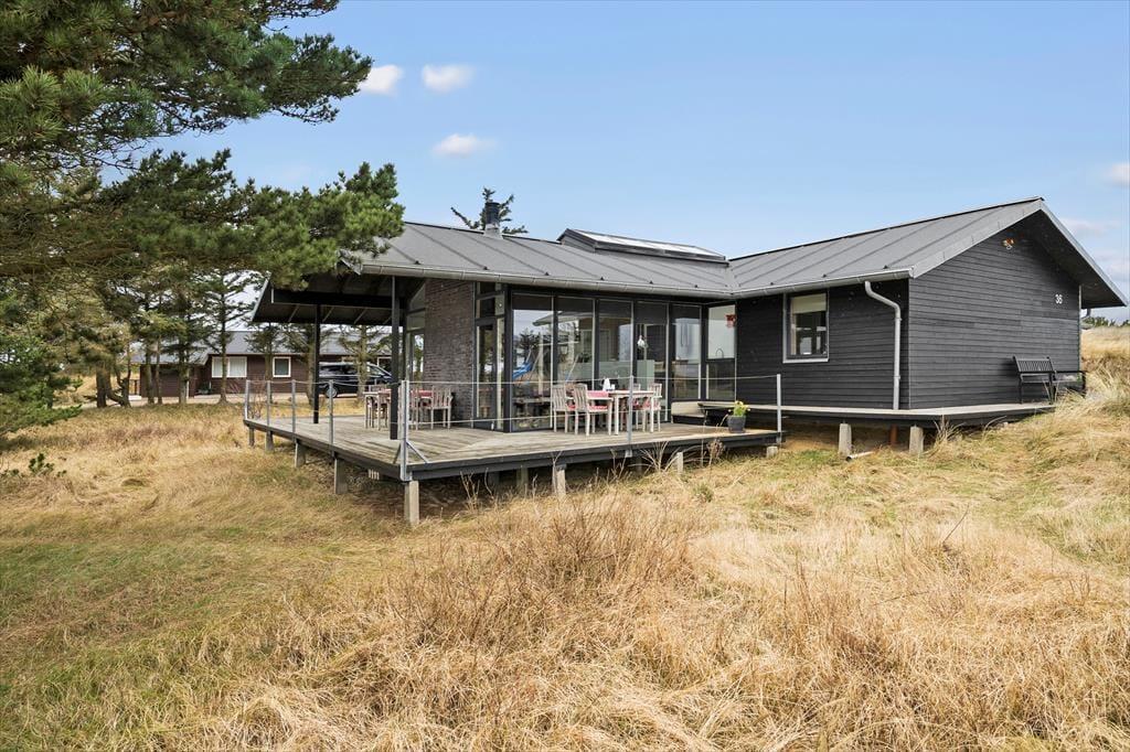 Beim Klintsvinget handelt es sich um eine kleine Sackgasse, in der nur Ihre nächsten Nachbarn verkehren. Von Ihrem Naturgrundstück führt ein kleiner Pfad in die offene Landschaft Klegods. Nach einen schönen Spaziergang erreichen Sie den Strand, an dem Sie nach Herzenslust baden und wunderschöne Sonnenuntergänge erleben können. Ihre Urlaubstage verbringen Sie beispielsweise beim Angeln und Surfen, mit Radtouren und mit Vogelbeobachtungen in der attraktiven Landschaft Holmsland Klits. In nördlicher Richtung freut sich der beliebte Badeort Søndervig auf Ihren Besuch. Ein wenig weiter südlich erwartet Sie der interessante Fischereihafenort Hvide Sande, der mit guten Fischräuchereien und Fischgeschäften, tollen Restaurants und einer Wakeboard- und Wasserskianlage zu überzeugen weiß.