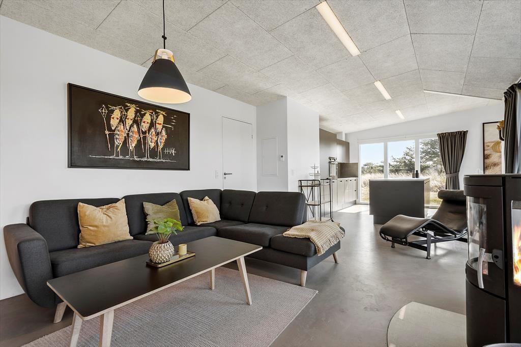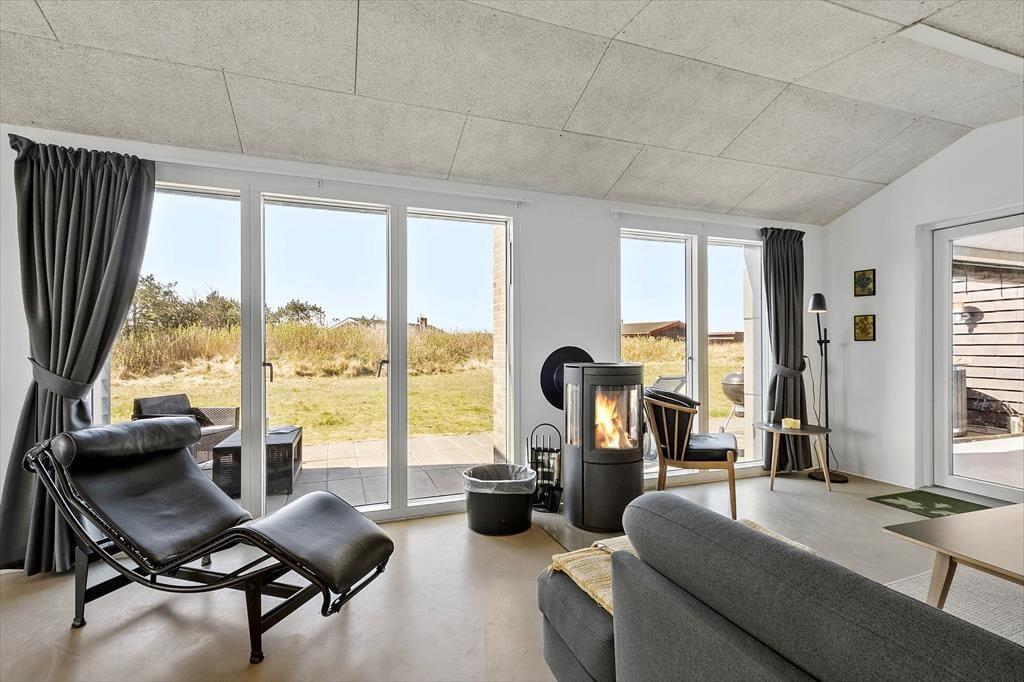 In diesem modernen Ferienhaus vereinen sich stilvoller Komfort und klassische Ferienhausgemütlichkeit. Es gibt zwei separaten Bereichen, beide beinhalten Schlafzimmer und Bäder. Im Haupthaus findet ihr einen großen Wohnbereich, in dem Küche, Essbereich und Wohnzimmer in einer offenen Raumgestaltung ineinander übergehen. Die großen Fenster lassen das Tageslicht hereinströmen und bieten euch eine fantastische Aussicht auf die naturschöne Umgebung. Hier erwacht ihr langsam zum Zwitschern der Vögel und mit dem Duft von frisch gebrauten Kaffee kann euer Ferientag beginnen. An den Abenden ist’s gemütlich, sich auf dem Sofa vor dem Kamin zu versammeln und die wohlige Wärme zu genießen, während die Flammen hinter der Glasscheibe tanzen. Im Nebenbau befinden sich zwei weitere Schlafzimmer sowie ein Badezimmer mit Zugang zur Sauna – perfekt um sich nach einem langen Tag an der frischen Meeresluft wieder richtig schön durchwärmen zu lassen.