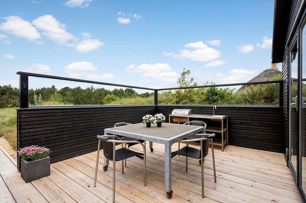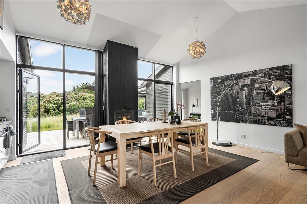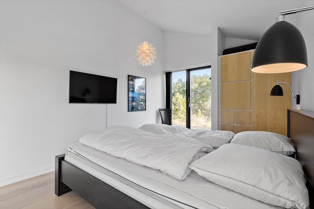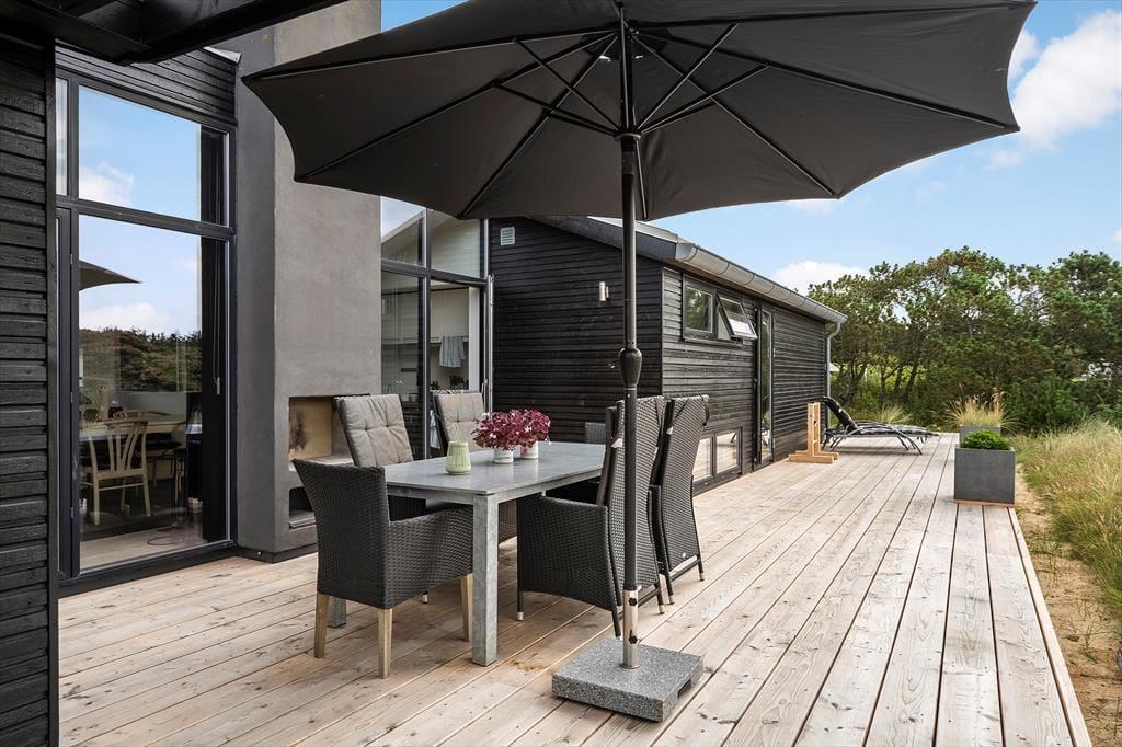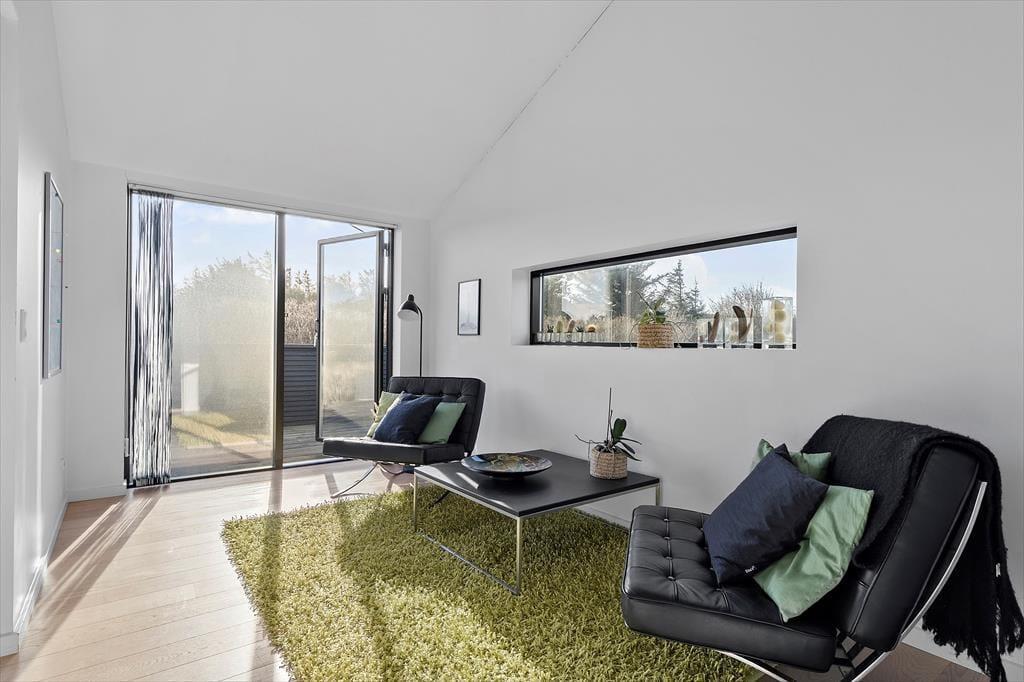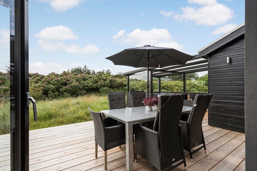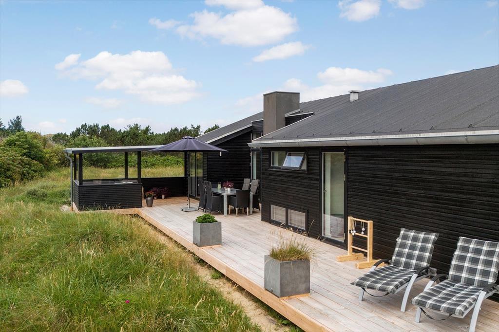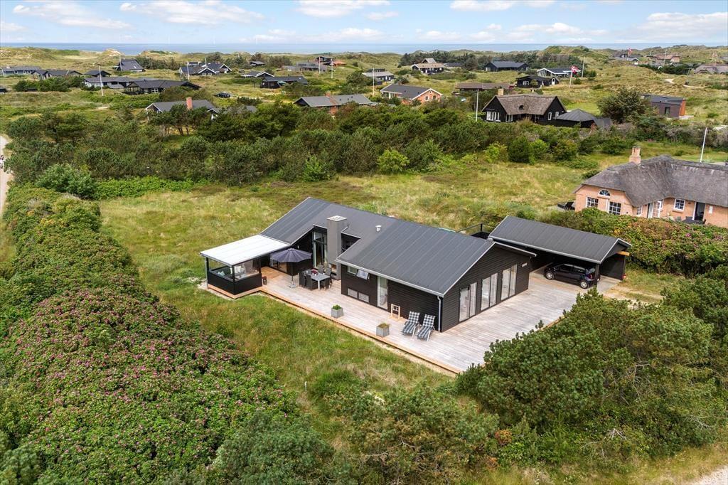 Das große Naturgrundstück trennen lediglich 600 Meter vom Klegod Strand, sodass nichts gegen gleich mehrere tägliche Bäder in den wogenden Wellen spricht. Falls sich das Wetter nicht zum Baden eignet, unternehmen Sie ausgedehnte Strandspaziergänge oder erkunden die attraktiven Dünenheidegebiete. Angler dürfen sich auf einen nur einen Kilometer entfernten Put & Take-See freuen. Ihre Einkäufe erledigen Sie im etwas nördlich gelegenen Badeort Søndervig, in dem Sie außerdem auf Aktivitätsangebote, interessante Geschäfte und schöne Lokalitäten treffen. Alternativ besuchen Sie den südlich gelegenen, interessanten Fischereihafenort Hvide Sande, der ebenfalls mit Supermärkten, Restaurants und Geschäften überzeugt und nach einer wirklich schönen Fahrt durch die Küstenlandschaft erreicht ist.