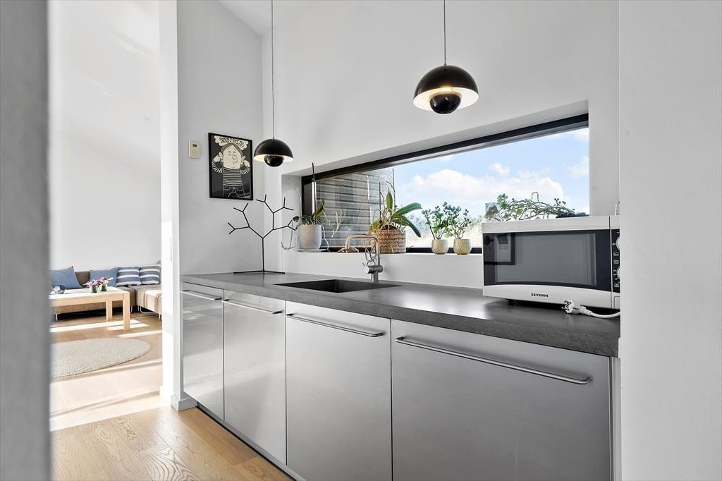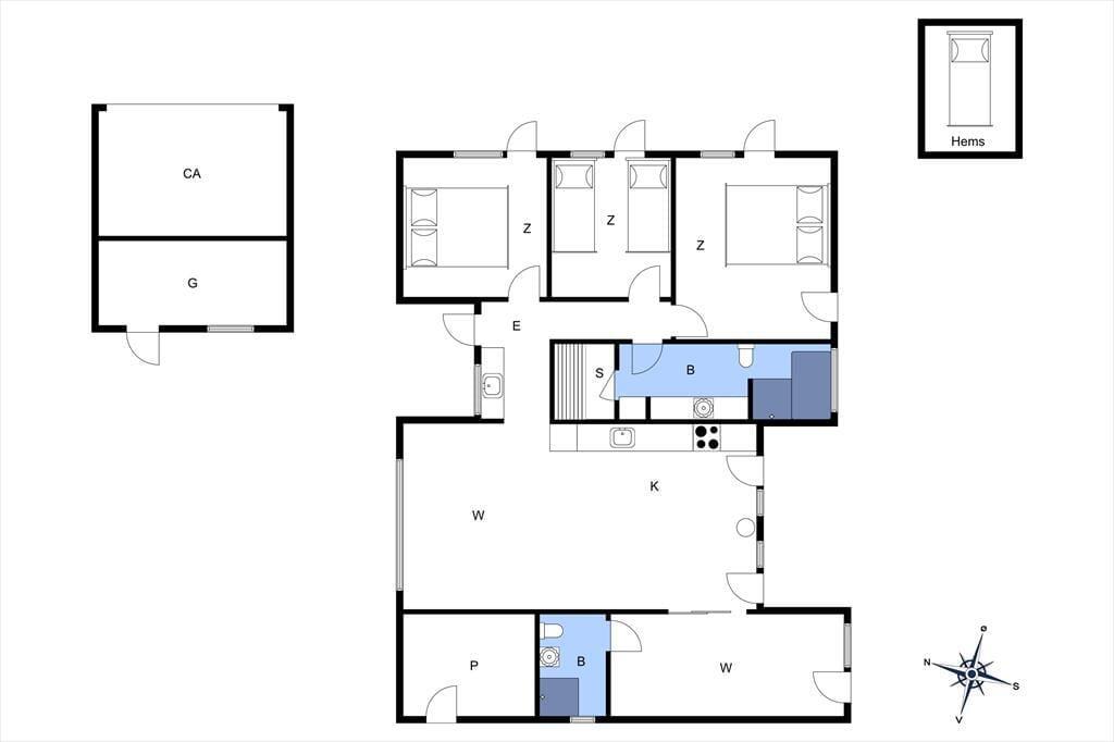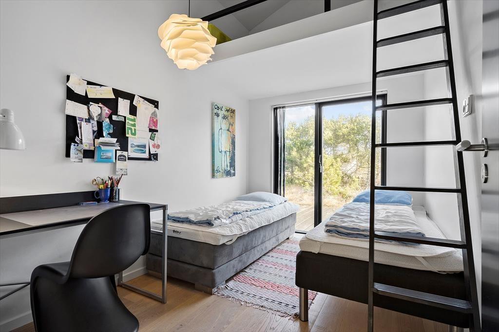 Beim Bau des 119 m² großen Ferienhauses im Jahr 2007 standen die Verwendung qualitativ hochwertiger Materialien und die Ausgestaltung mit diversen attraktiven Details im Mittelpunkt. So wurden die Räume beispielsweise mit zahlreichen Terrassentüren versehen, wodurch die Außenareale wie eine natürliche Erweiterung der Wohnfläche wirken. Das größere der beiden Badezimmer lädt mit einer Badewanne und einer Sauna zu erholsamen Stunden voller Wellnessflair ein. Die drei Schlafzimmer sind nebeneinander platziert. Eines der Schlafzimmer verfügt über einen Zugang zum Hängeboden, auf dem Ihre Kinder gern spielen, lesen und kuscheln werden. Der große Aufenthaltsbereich mit hohen Decken bildet das Herzstück des Mietobjektes. In diesem Raum werden Sie gemeinsam viel Zeit beim Essen, beim Spielen und während gemütlicher Filmabende auf dem Sofa verbringen. Die tolle Küche mit Edelstahlfronten und einer composit tischplatte fügt sich offen in den Aufenthaltsbereich ein. Für Wärme und Ferienhausatmosphäre sorgt ein eingebauter Kaminofen.