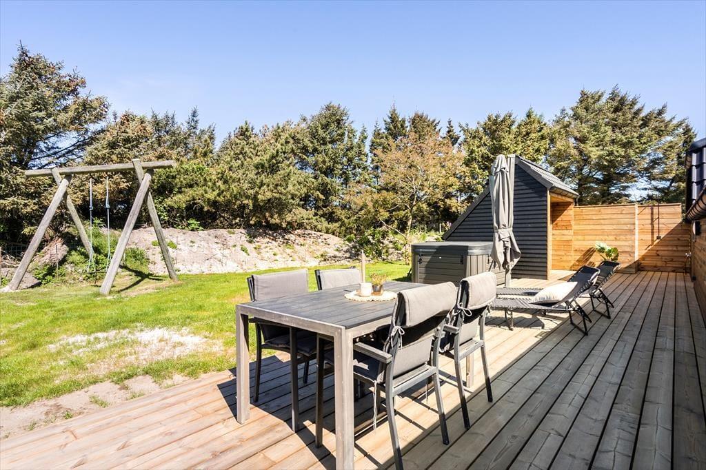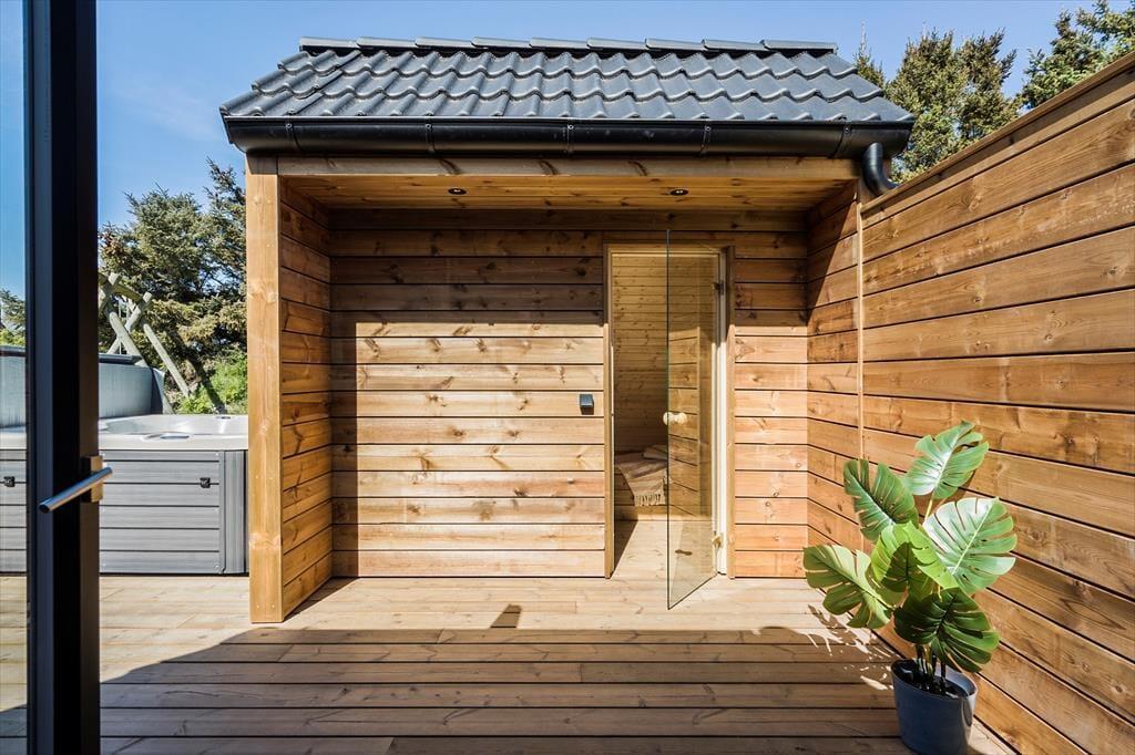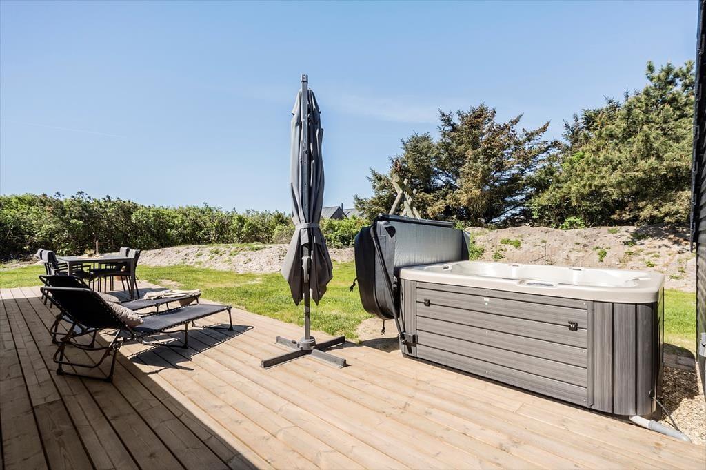 Auch im Freien können Sie und Ihre Liebsten Ihr Feriendomizil optimal genießen. Vom Wohnzimmer aus gelangen Sie direkt auf eine überdachte Terrasse, die in eine große und offene Terrassenlandschaft übergeht. Mit anderen Worten: Egal ob in der Sonne oder im Schatten, man findet leicht den richtigen Sitzplatz. Auch ein heißes Bad kann auf dem Programm stehen, denn auf der Westseite des Hauses gibt es einen herrlichen Outdoor-Whirlpool.Direkt daneben befindet sich eine schöne Sauna, tolle Einrichtung, um hier draußen eine ganze Wellness-Session zu halten – wenn man mal nicht unbedingt in die Nordsee springen möchten.