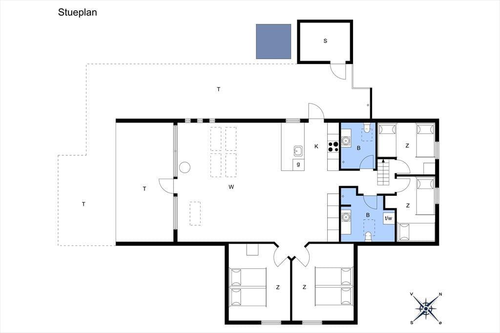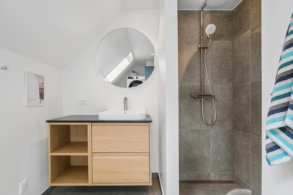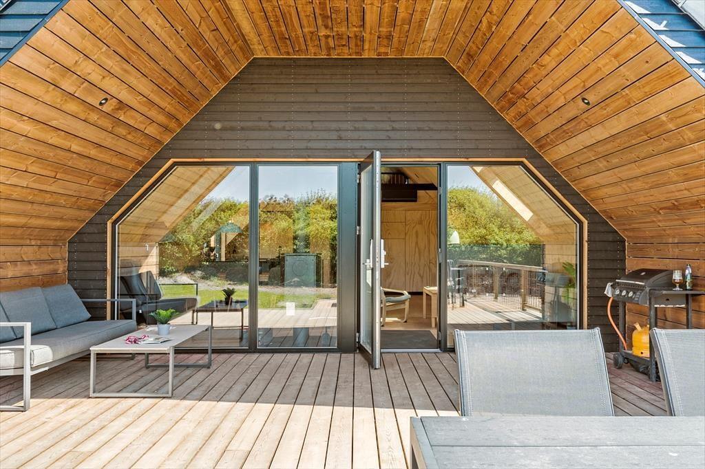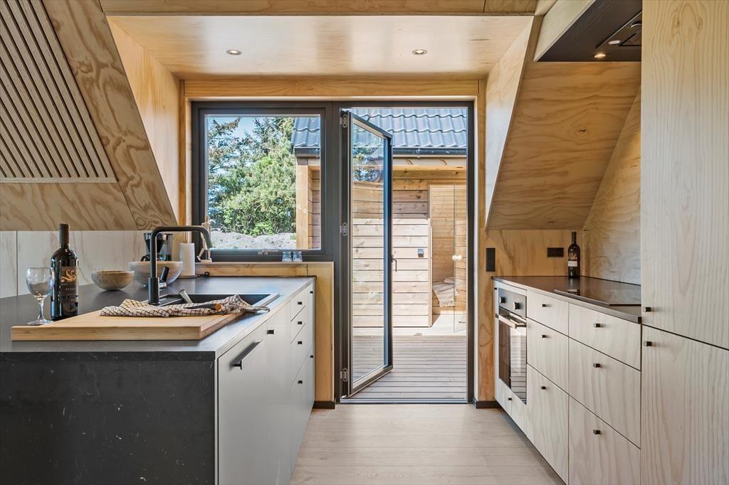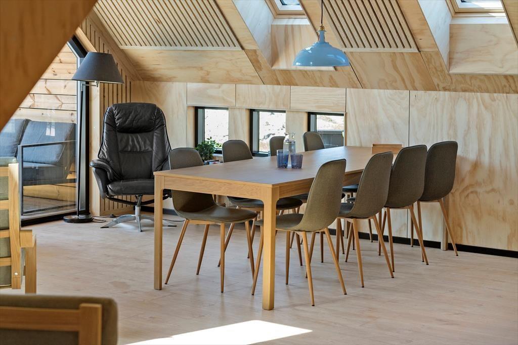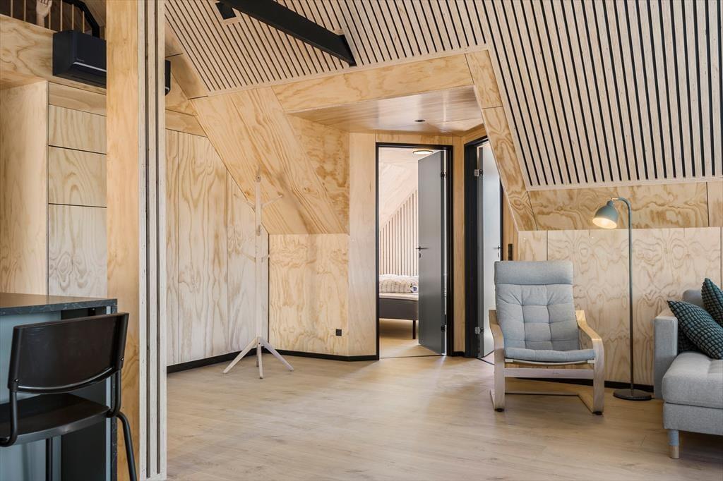 Tatsächlich gab es am Opstrupsvej 44 einst ein Sommerhaus, das gerade wieder aufgebaut wird. In diesem Zusammenhang wird auch die Quadratmeterzahl erweitert, so dass Sie 120 m² zur Verfügung haben, um Ihr Urlaubsleben entfalten zu können. Dank der Planlösung mit vier Schlafräumen und zwei Badezimmern können Sie problemlos sieben weitere einladen. Insgesamt soll das Haus für acht Personen gedacht sein. Alle Räume wirken hell, frisch und freundlich, und das gilt natürlich auch für den Wohnbereich, in dem Küche und Wohnzimmer vereint sind. Der Raum hat offene Galerie und die schrägen Oberlichtfenster lassen sowohl die Sonne als auch die Sterne des Abendhimmels hinein – auch die Esstischanrichtung, die Sofaecke und der „Hems“ laden zum Entspannen und gemütlich geselligem Beisammensein ein.