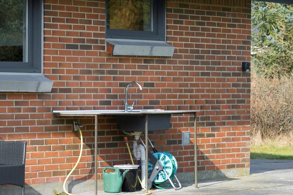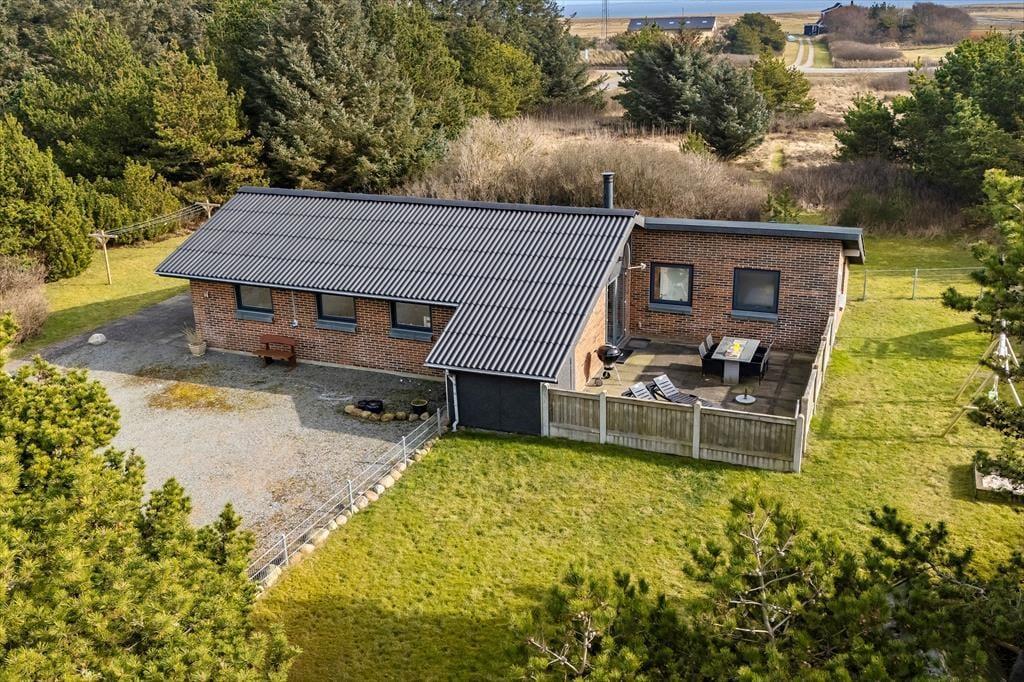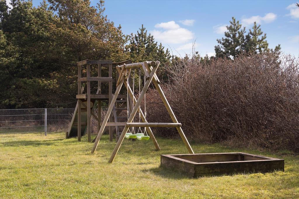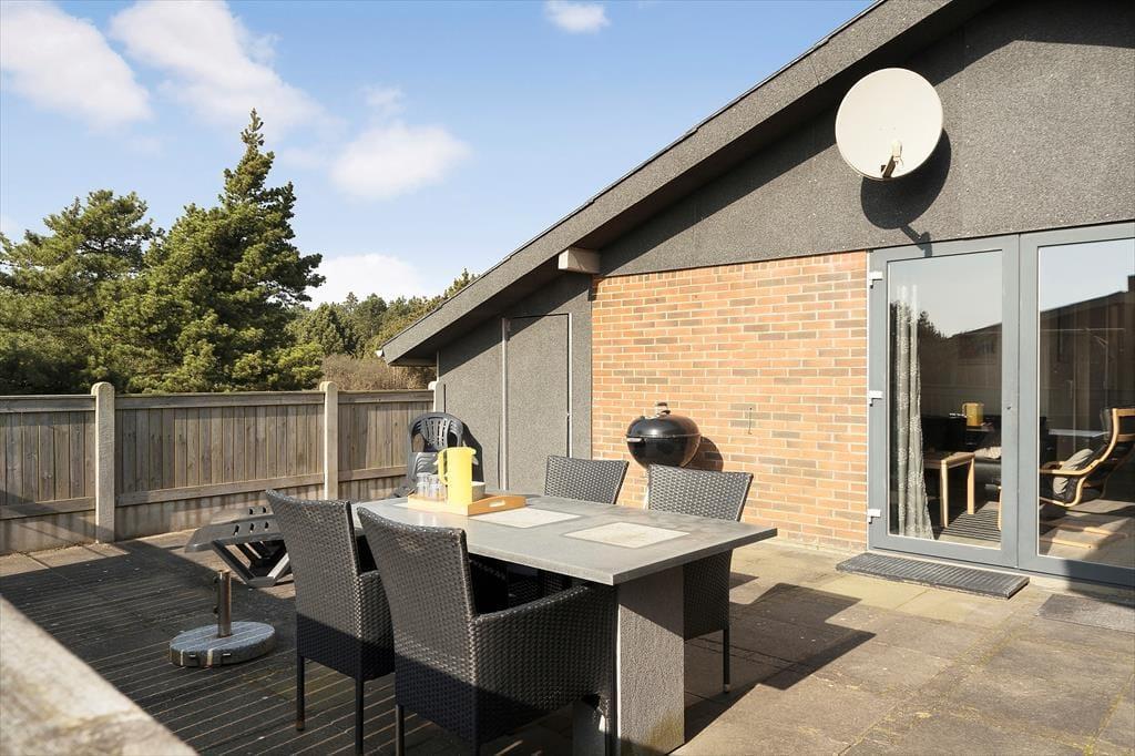 Auf der nach Osten ausgerichteten Terrasse können Sie Ihren Morgenkaffee bei Sonnenaufgang genießen. Die zweite Terrasse ist nach Südwesten ausgerichtet und der ideale Ort, um in der Sonne zu Mittag oder zu Abend zu essen. Die Terrasse ist ebenso wie ein Teil des Gartens eingezäunt, so dass kleine Kinder oder der Hund problemlos frei herumlaufen können. Im Garten gibt es Spielgeräte und östlich ist das Grundstück als Naturgrundstück angelegt mit Blick auf die Fjordwiesen und den Ringkøbing Fjord.