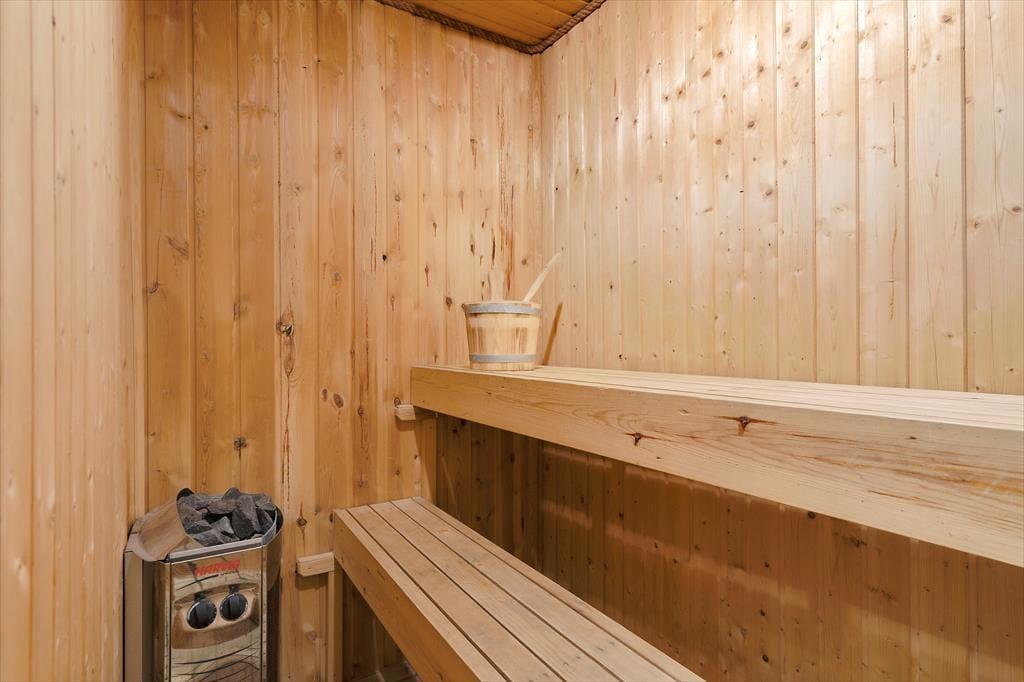 Die 104 m² des Ferienhauses sind in zwei Bereiche aufgeteilt. Der eine ist der Aktivitätsraum, in dem die jüngsten Familienmitglieder spielen und fernsehen können. Außerdem gibt es ein Badezimmer mit Whirlpool und einen Abstellraum mit Gefrierschrank (der von der Terrasse aus zugänglich ist). Der zweite Teil des Hauses verfügt über drei große Schlafzimmer, die insgesamt sechs Personen Platz bieten. An die Eingangshalle schließt sich ein Badezimmer mit Dusche, Fußbodenheizung und Sauna an und schließlich der Wohnbereich, der Küche und Wohnzimmer vereint. Die Küche ist gut ausgestattet mit allen notwendigen Geräten, einschließlich Geschirrspüler und Waschmaschine, um die praktischen Aufgaben während des Urlaubs zu erleichtern. Das Wohnzimmer verfügt über einen Essbereich und eine Sofaecke. TV, Wi-Fi und Stereoanlage sorgen für Unterhaltung, während die Wärmepumpe und der Holzofen für die gewünschte Temperatur sorgen.