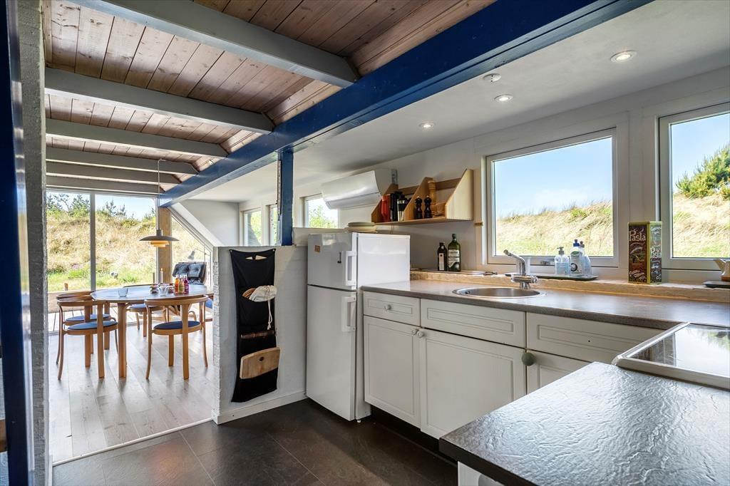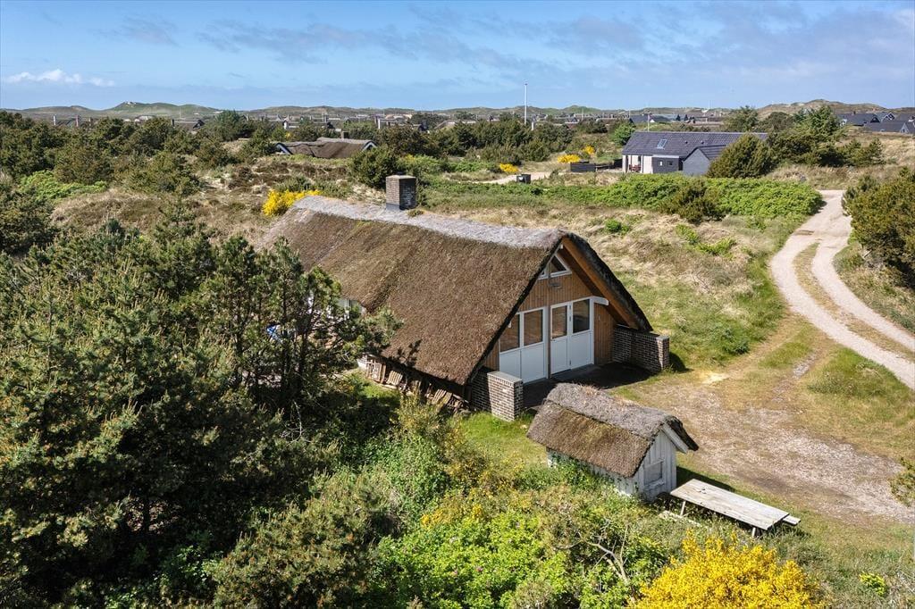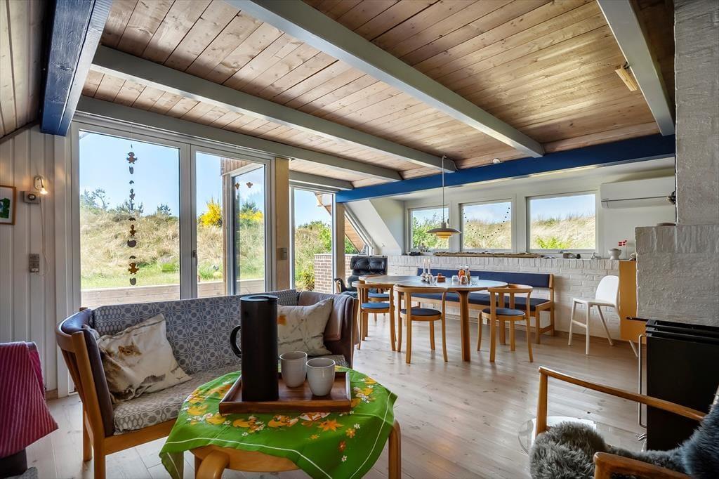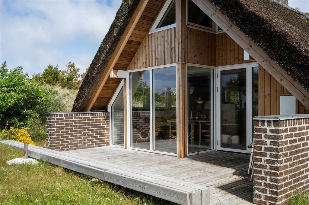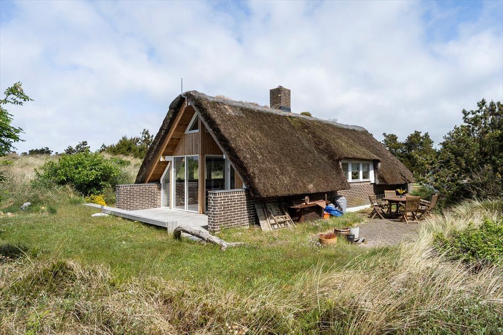 Dieses Reetdachferienhaus verzaubert mit seiner gemütlichen Wohnatmosphäre. Es beinhaltet vier Schlafplätze und eignet sich daher gut für eine kleine Familie. Ein großer, heller Aufenthaltsraum und eine Südterrasse, die beide eine schöne Aussicht auf Strandhafer und Natur bieten, bilden einen schönen Rahmen für entspannte Stunden in der Sonne und für gemütliche Abende vor dem knisternden Kaminofen. Ihre Urlaubsstage krönen Sie mit Radtouren in Klegods Natur, mit langen Strandspaziergängen entlang der Nordsee und mit herrlichen Kite- und Windsurferlebnissen auf dem Ringkøbing Fjord.