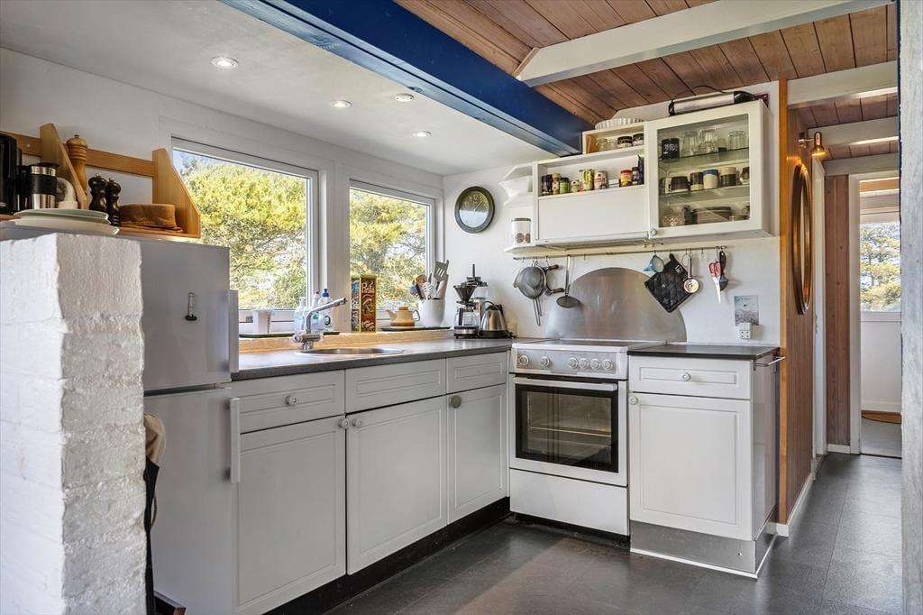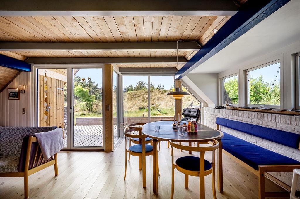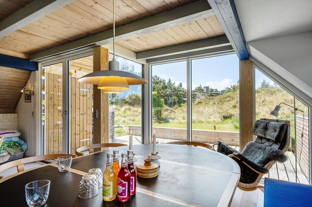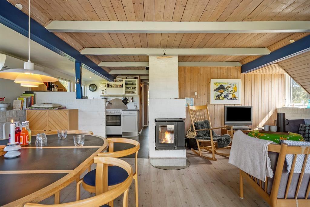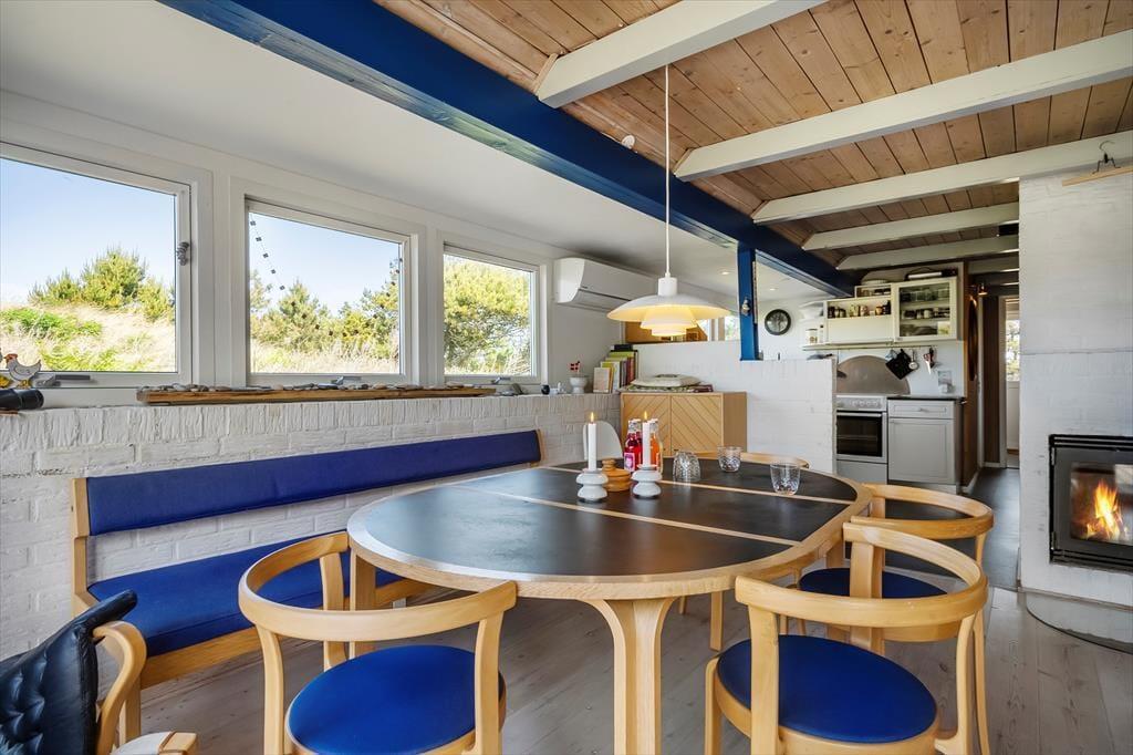 Dieses Reetdachferienhaus verzaubert mit seiner gemütlichen Wohnatmosphäre. Es beinhaltet vier Schlafplätze und eignet sich daher gut für eine kleine Familie. Ein großer, heller Aufenthaltsraum und eine Südterrasse, die beide eine schöne Aussicht auf Strandhafer und Natur bieten, bilden einen schönen Rahmen für entspannte Stunden in der Sonne und für gemütliche Abende vor dem knisternden Kaminofen. Ihre Urlaubsstage krönen Sie mit Radtouren in Klegods Natur, mit langen Strandspaziergängen entlang der Nordsee und mit herrlichen Kite- und Windsurferlebnissen auf dem Ringkøbing Fjord.