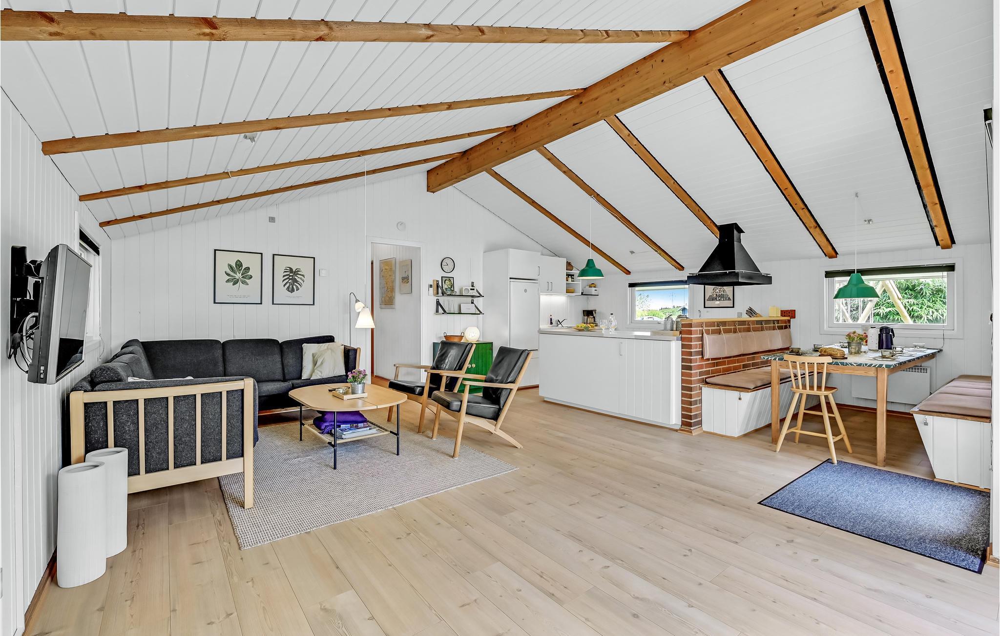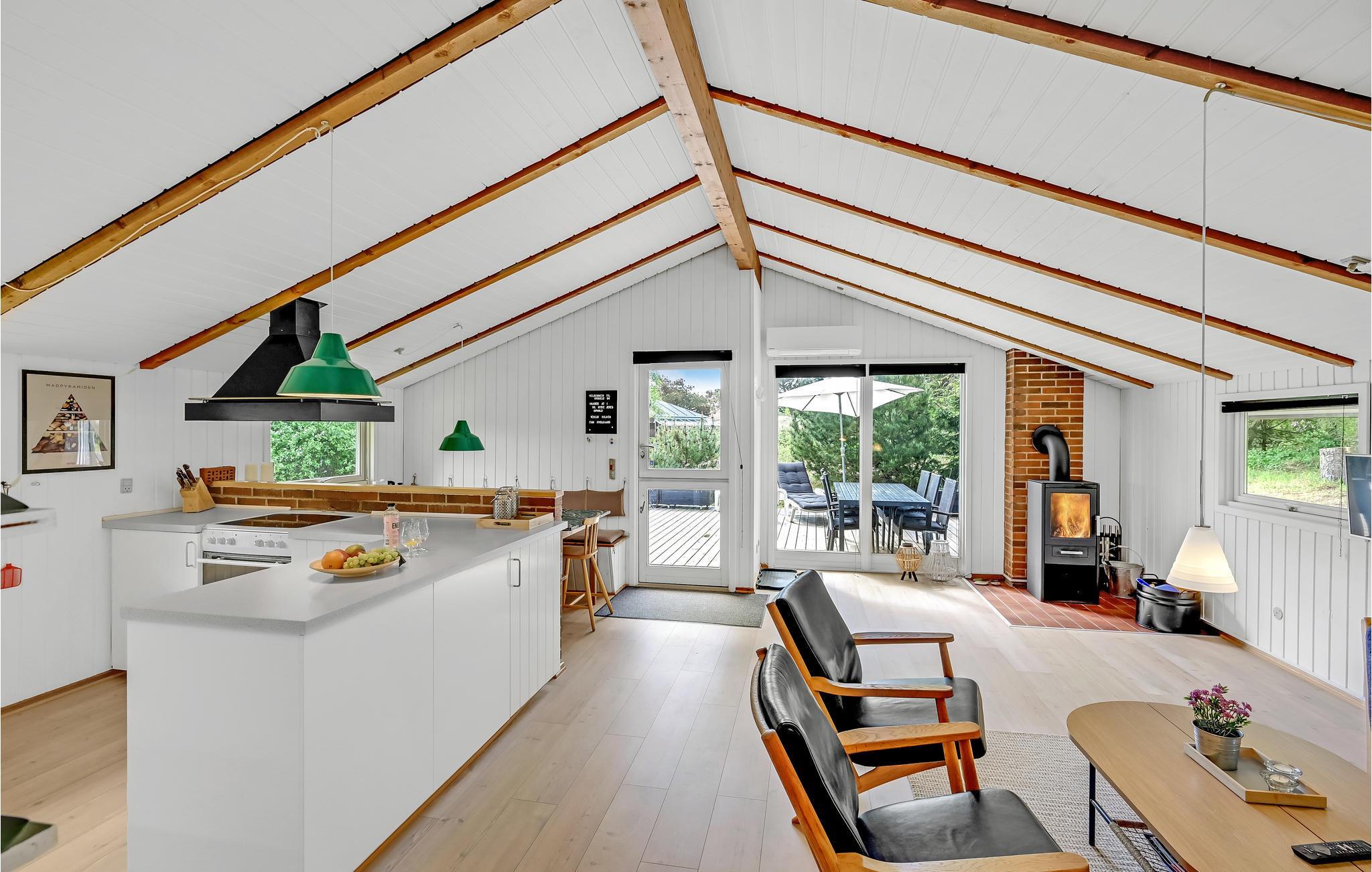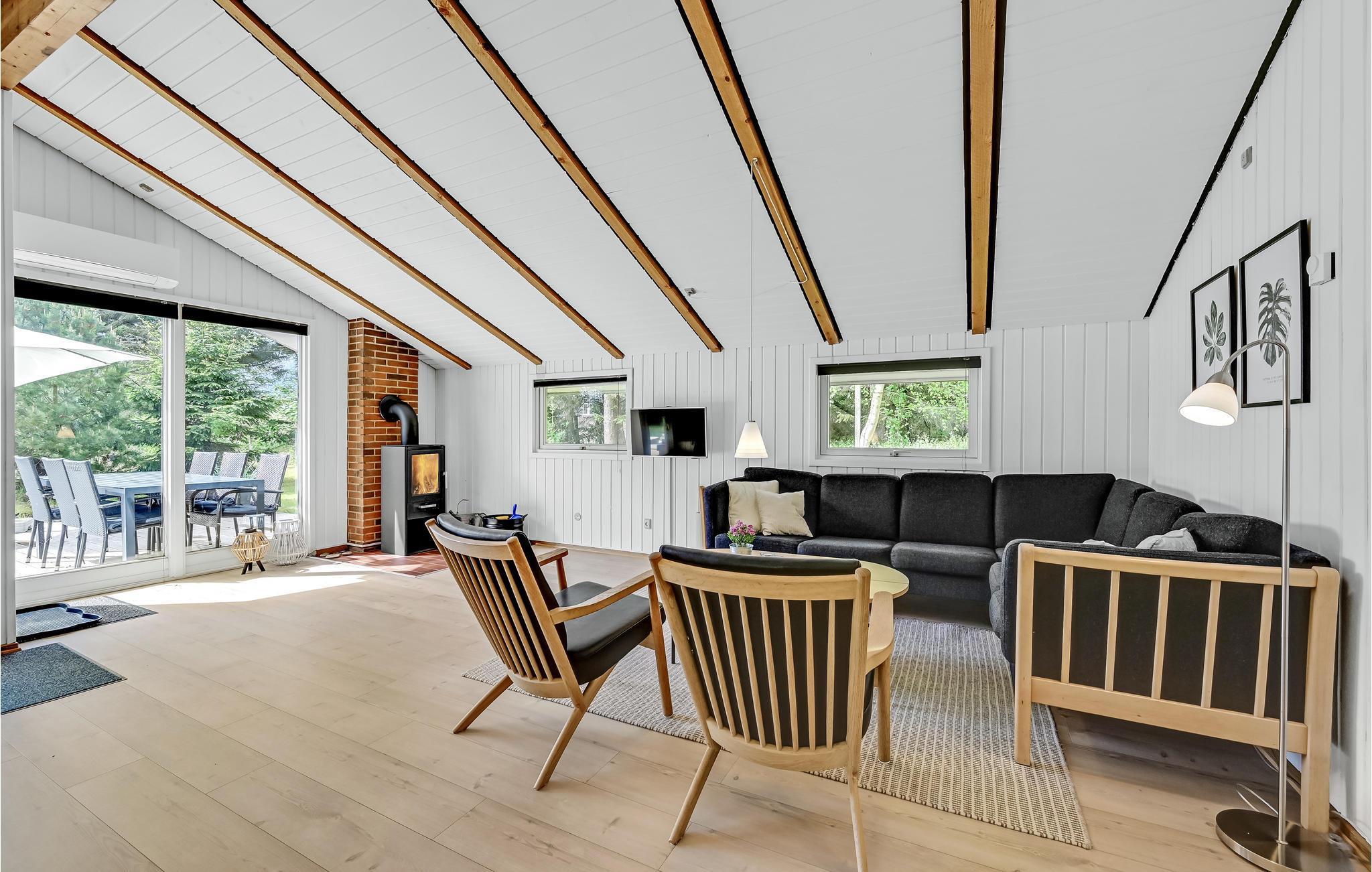Die Holzverkleidungen und hellen Wände, lassen das natürliche Ambiente, wie auch den Innenraum recht sonnig erscheinen. Hier können Sie es sich mit Ihrer Familie für einen Urlaub bequem machen und die Zeit in Dänemark genießen, während Sie auf nichts verzichten müssen, um einen entspannten Urlaub zu haben. Im Freien können Sie sich je nach Behagen in ein schattiges oder sonniges Plätzchen setzen, gemeinsam Frühstücken, grillen oder in der Sonnenliege zurücklehnen und sich von der Sonne wärmen lassen