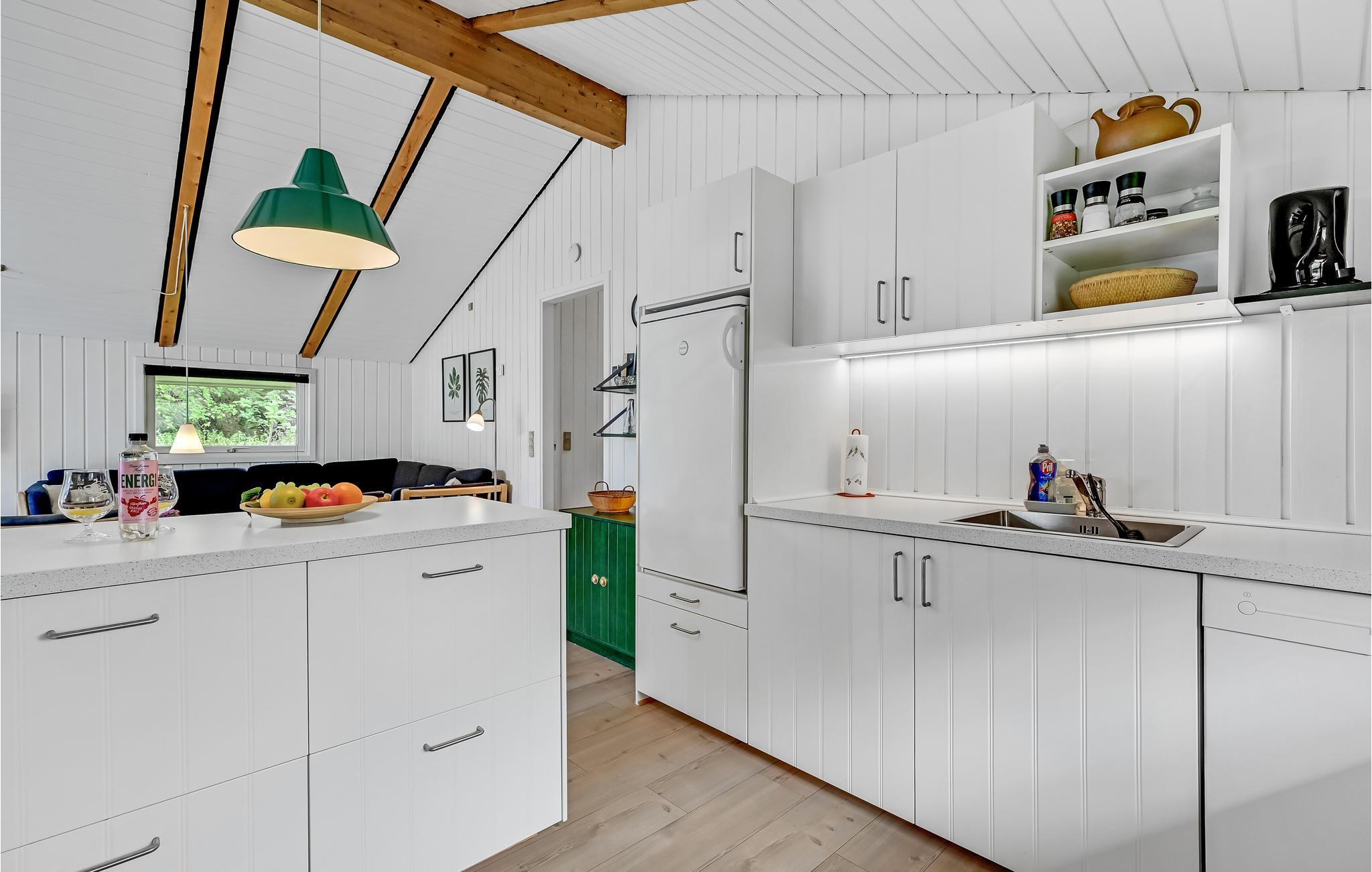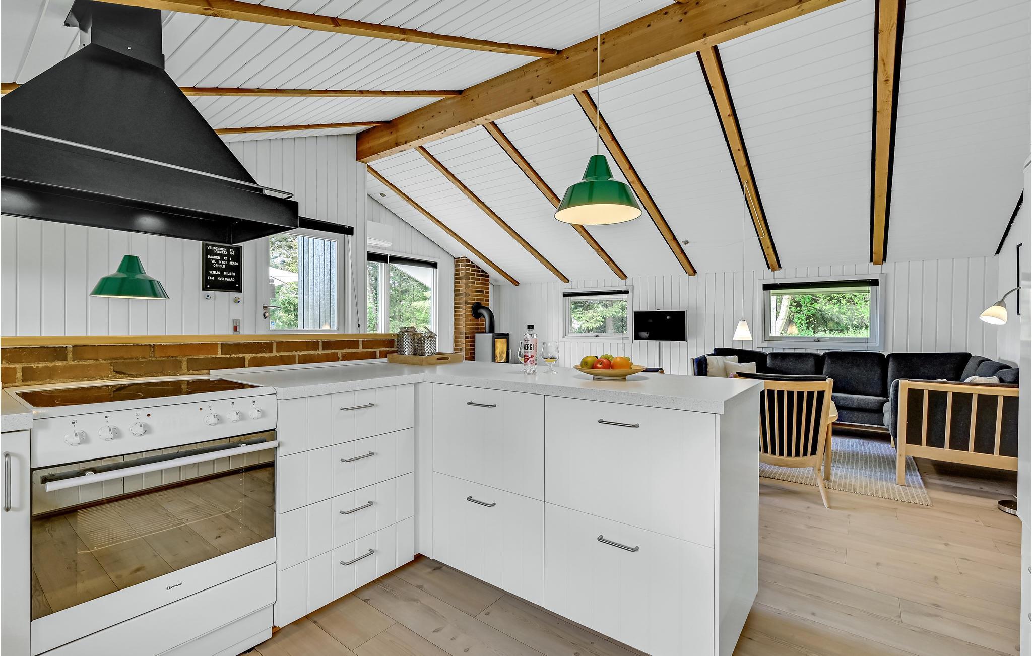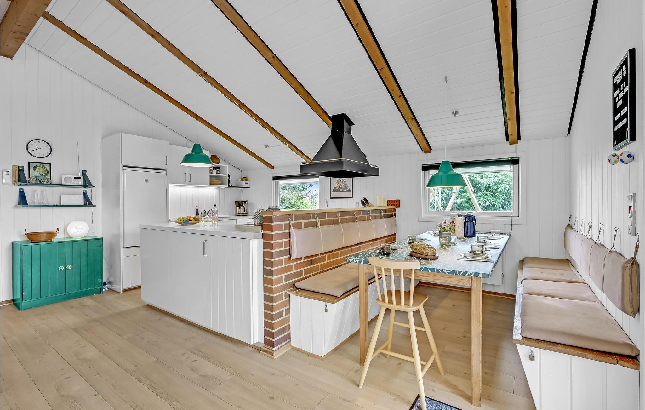Die Holzverkleidungen und hellen Wände, lassen das natürliche Ambiente, wie auch den Innenraum recht sonnig erscheinen. Hier können Sie es sich mit Ihrer Familie für einen Urlaub bequem machen und die Zeit in Dänemark genießen, während Sie auf nichts verzichten müssen, um einen entspannten Urlaub zu haben. Im Freien können Sie sich je nach Behagen in ein schattiges oder sonniges Plätzchen setzen, gemeinsam Frühstücken, grillen oder in der Sonnenliege zurücklehnen und sich von der Sonne wärmen lassen