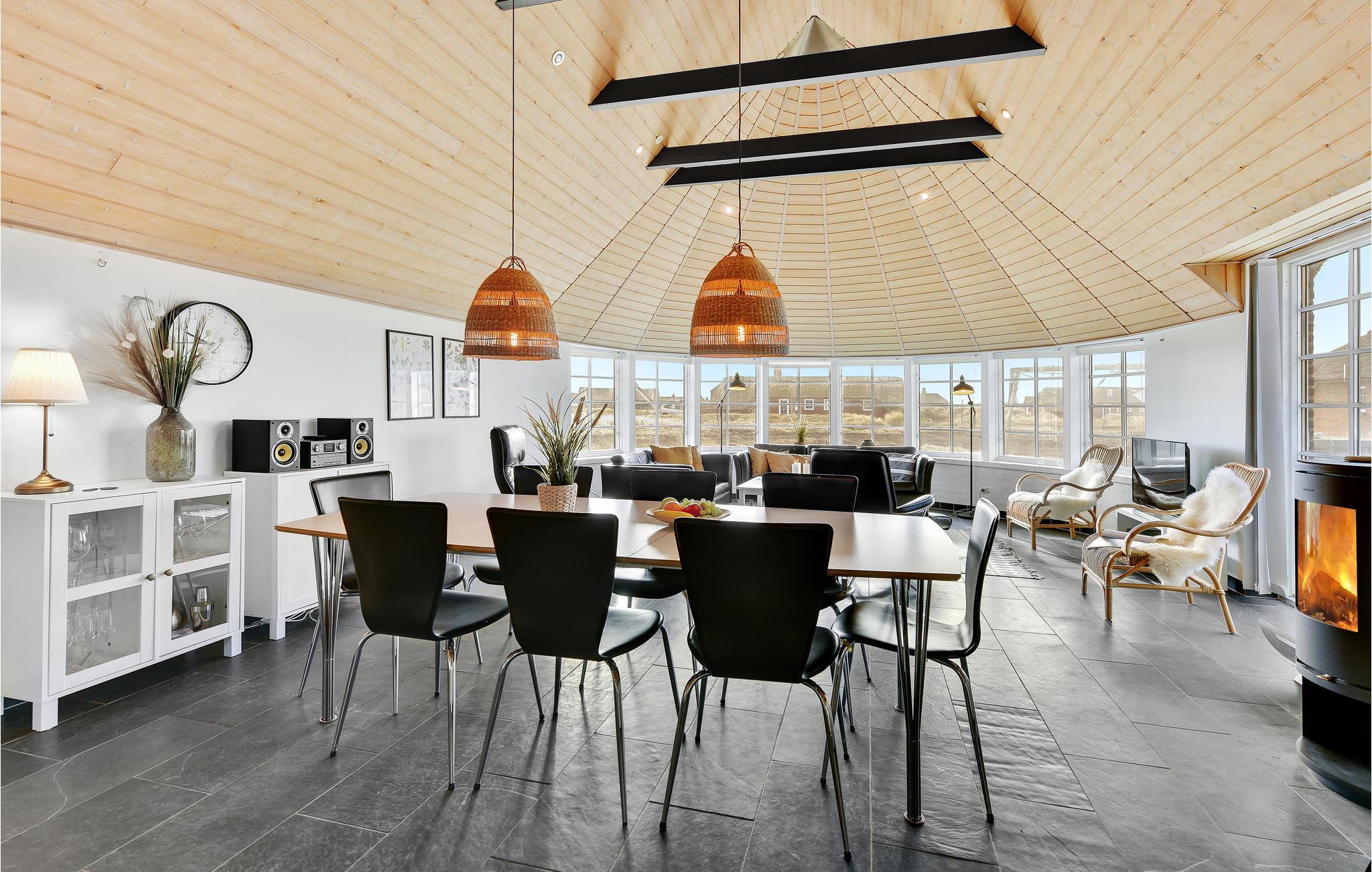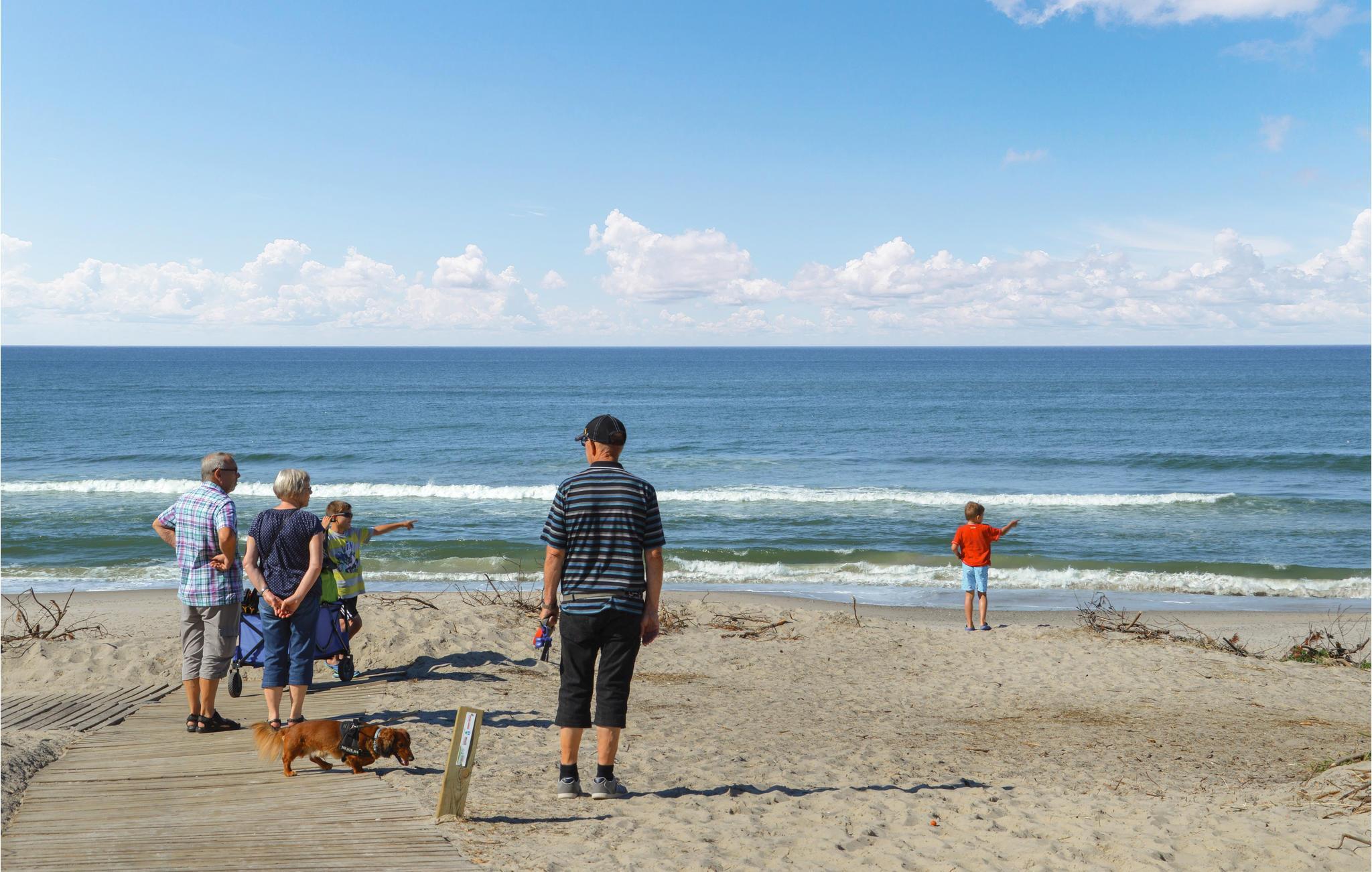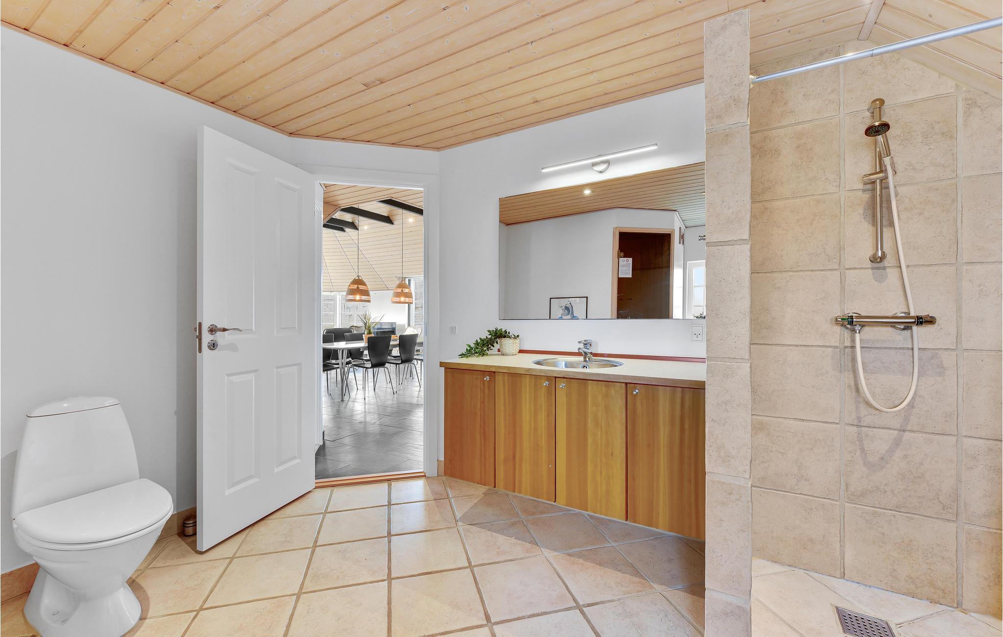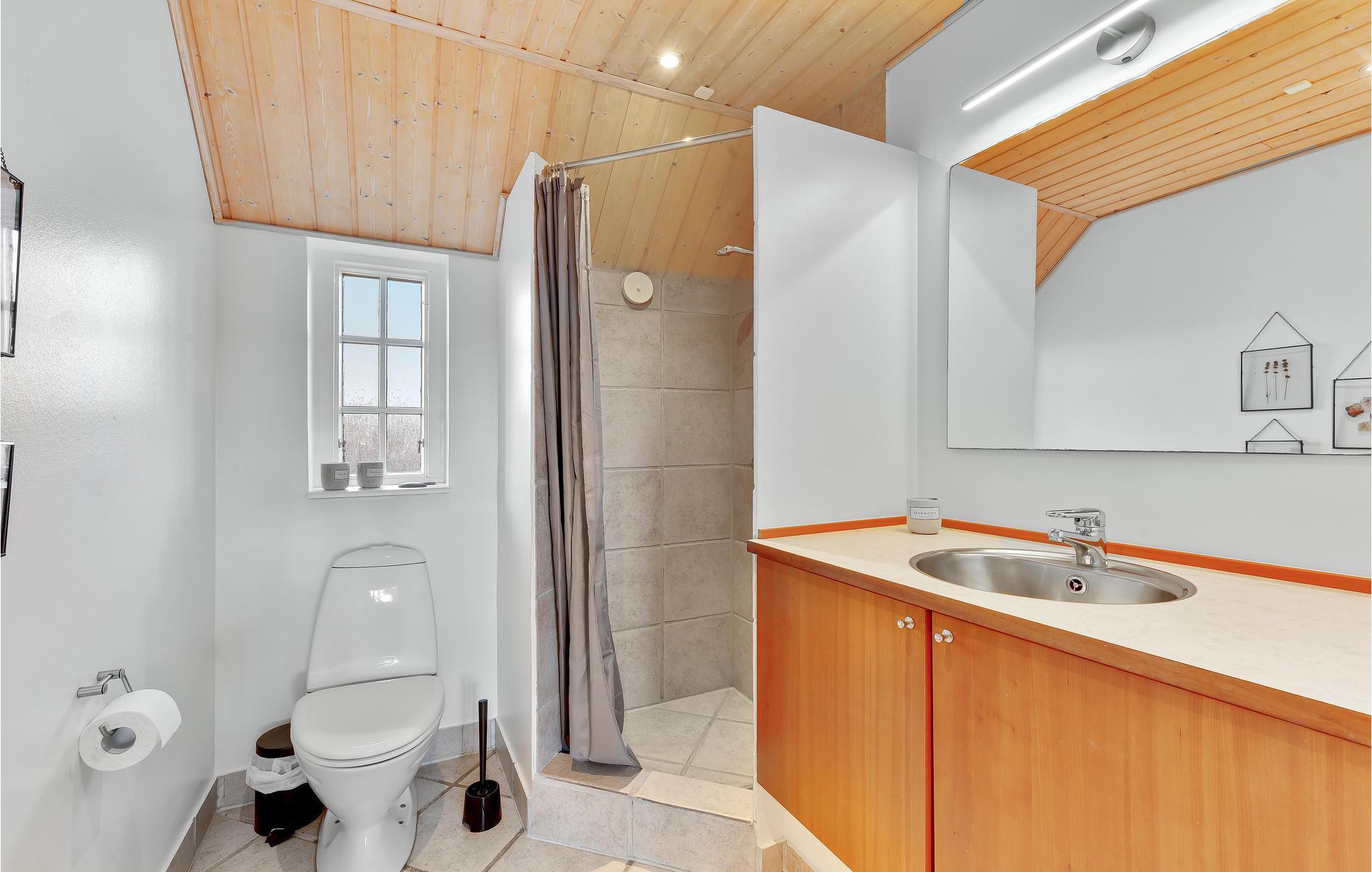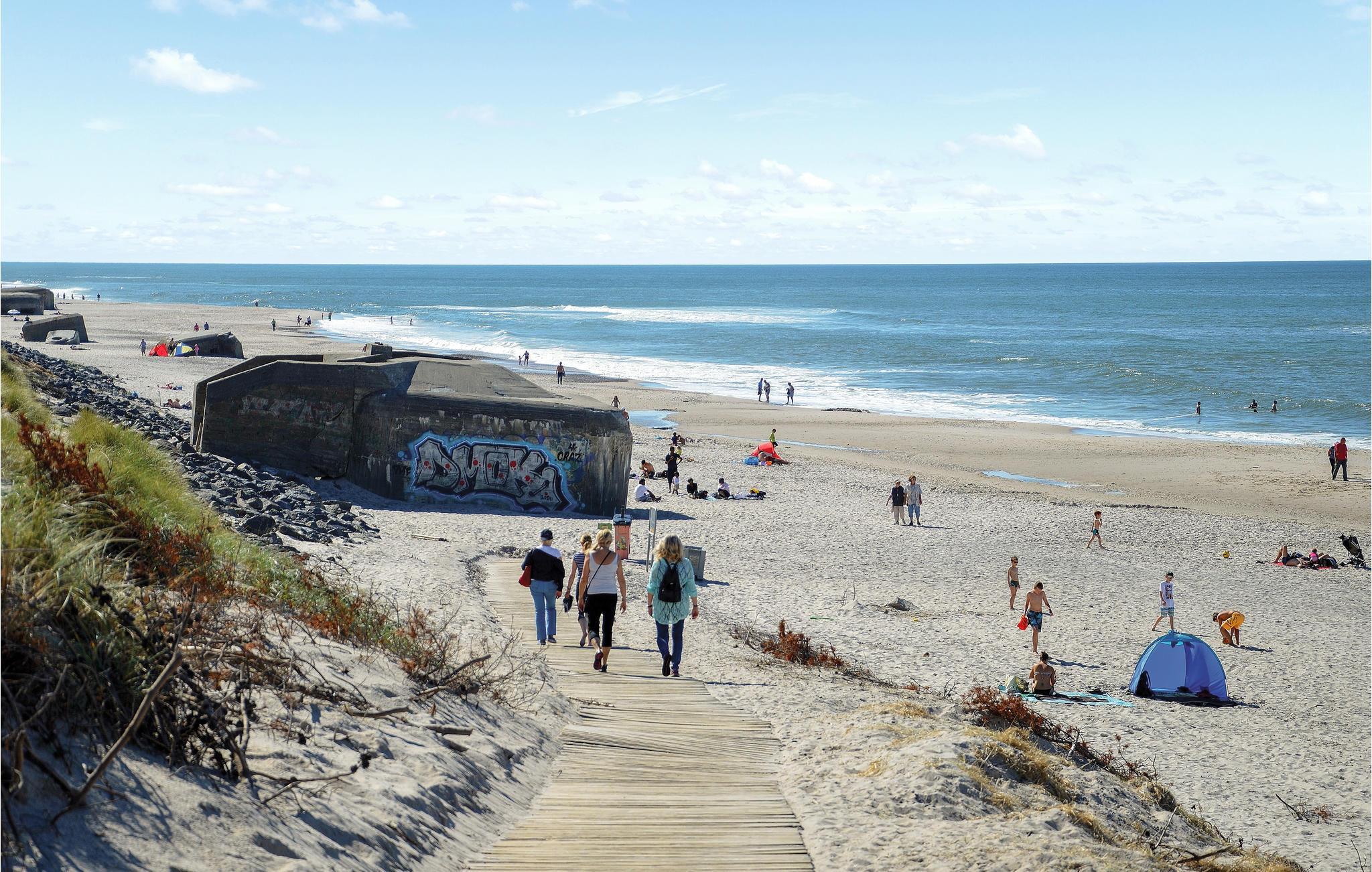 Eine einzigartige Lage genießt dieses Ferienhaus auf dem großen Dünengrundstück, denn es liegt ganz nahe an der Nordsee. Dieses Haus lädt wirklich zu Ferien, egal ob Sie zum Faulenzen oder für einen Aktivurlaub kommen. Von der Terrasse haben Sie eine gute Aussicht, Sie können beim Sonnenuntergang das Abendessen im Freien genießen. In der Umgebung gibt es gute Rad- und Gehwege. Der Fjord ist als Surfgewässer geschätzt. Die raue Natur der Nordsee begeistert zu jeder Jahreszeit. Hier erleben Sie einen grenzenlosen Horizon und eine Vogelwelt, die Sie ins Staunen versetzt. Klegod liegt zwischen dem Fjord und dem Meer, hier ist ein Gebiet, das wie zum Urlaubmachen erschaffen scheint. Im Norden liegt der Ferienort Søndervig und im Süden der Fischerort Hvide Sande, beide Orte liegen nicht weit entfernt. In Søndervig gibt es ein großes Lebensmittelgeschäft, Cafés, Spielplätze und ein kleines Hallenbad. Hvide Sande ist ein wahrer Fischerort und im Sommer lebhaft, besonders im Hafen. Auch hier können Sie gut einkaufen. Es gibt auch ein große Auswahl an Fischgeschäften. Sie können jedoch auch selbst vom Hafenkai angeln. Im ganzen Gebiet gibt es gepflegte Rad- und Fußwege.