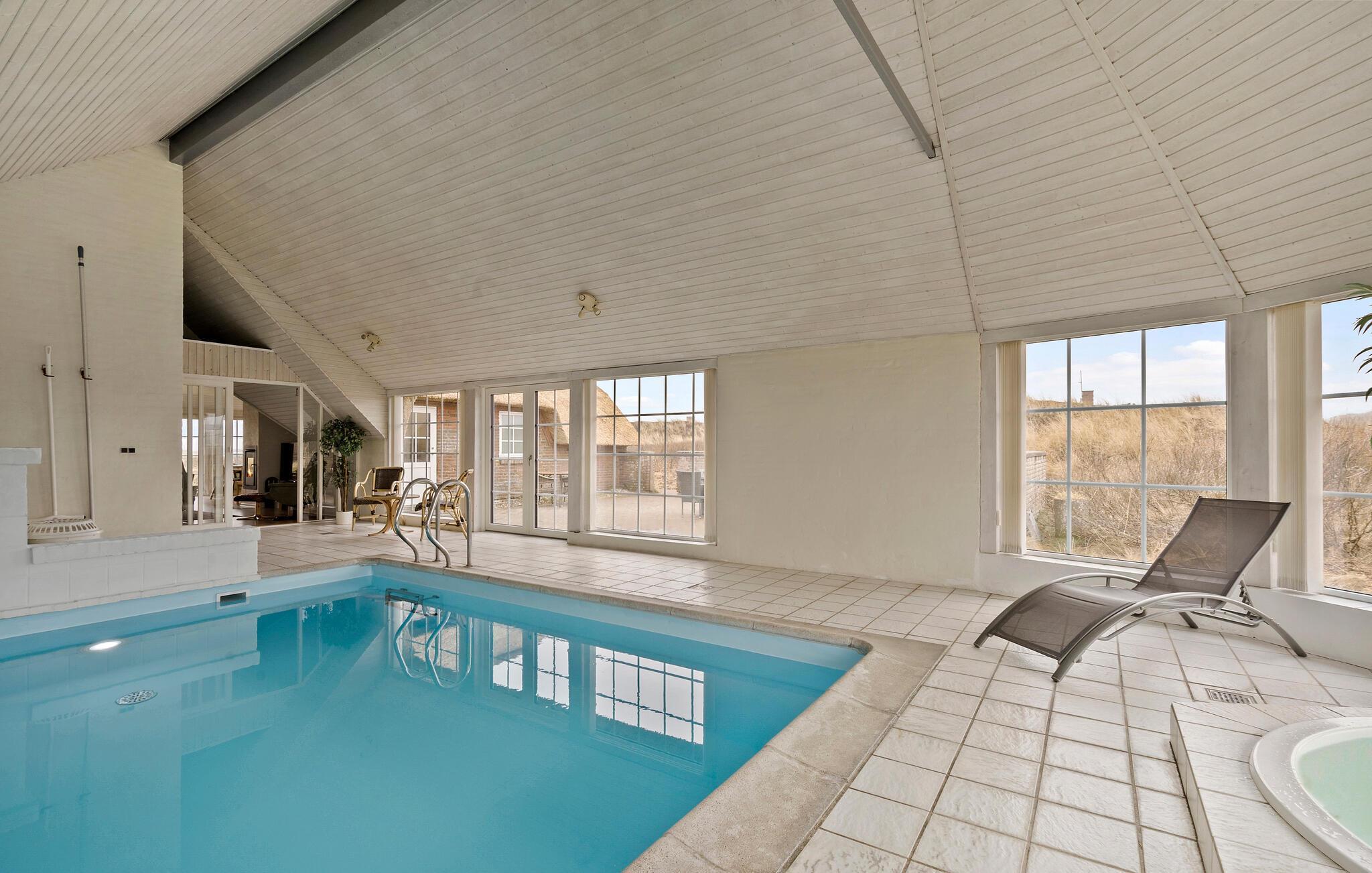 Luxuriöses Ferienhaus mit Pool und Sauna auf großem Dünengrundstück nahe dem Meer.