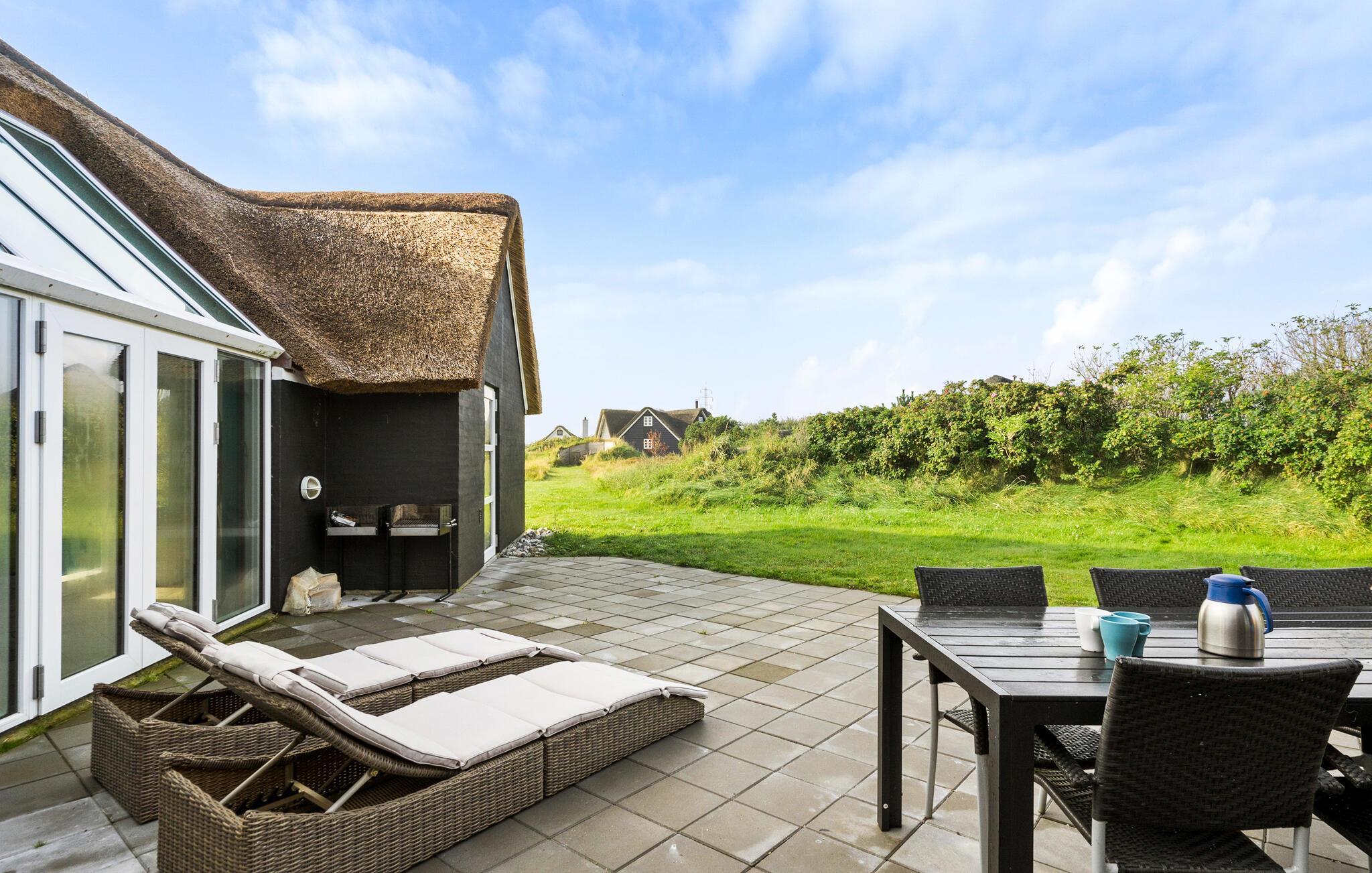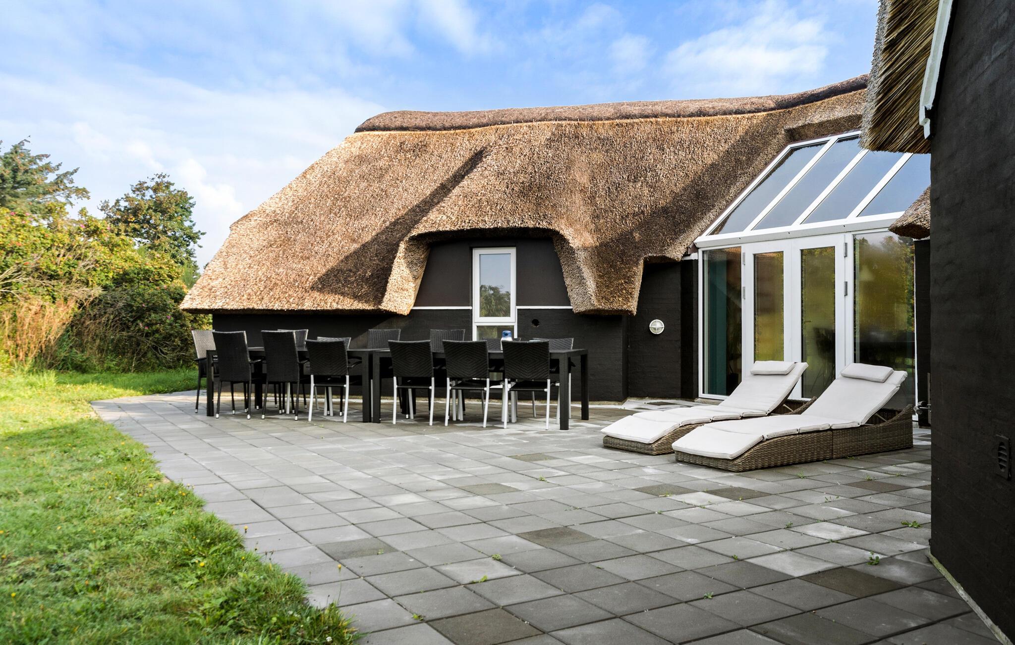 Entspannen Sie in diesem geräumigen Reetdachhaus mit Pool, Sauna und Terrasse nahe Meer und Fjord in Klegod, Dänemark.