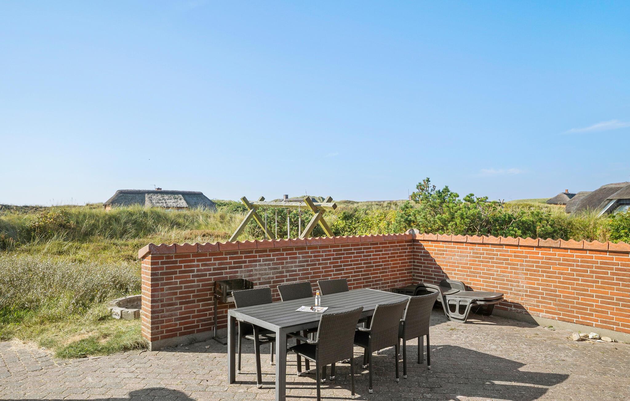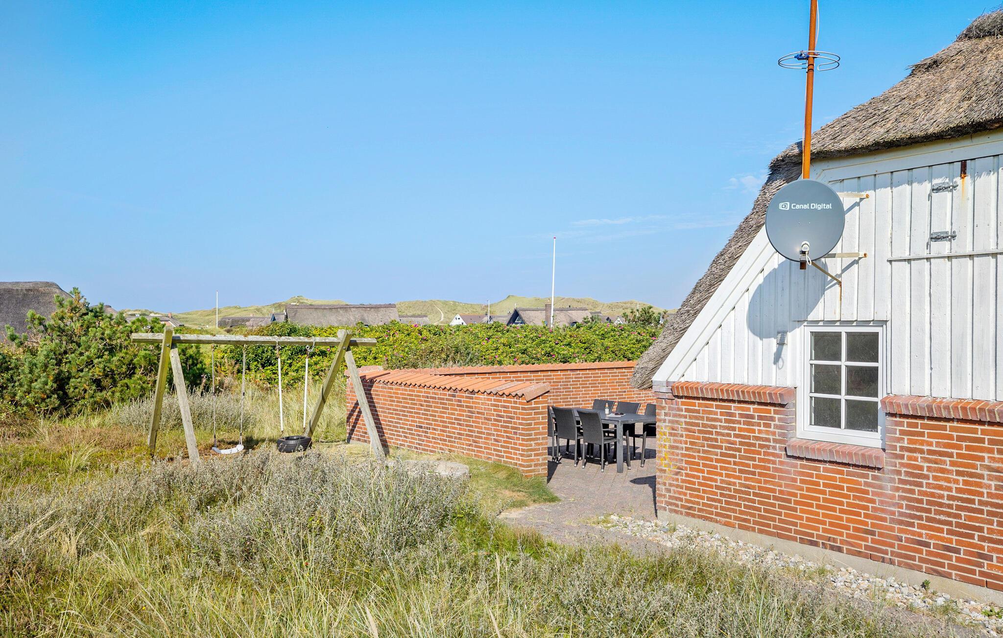 Der Außenbereich ist ein Paradies für Groß und Klein. Während die Kinder im Sandkasten buddeln oder auf den Schaukeln spielen, können die Erwachsenen auf den Sonnenliegen entspannen. Lassen Sie den Tag bei einem Grillabend auf der windgeschützten Terrasse ausklingen und genießen Sie die gesellige Stimmung in der Dünenlandschaft.